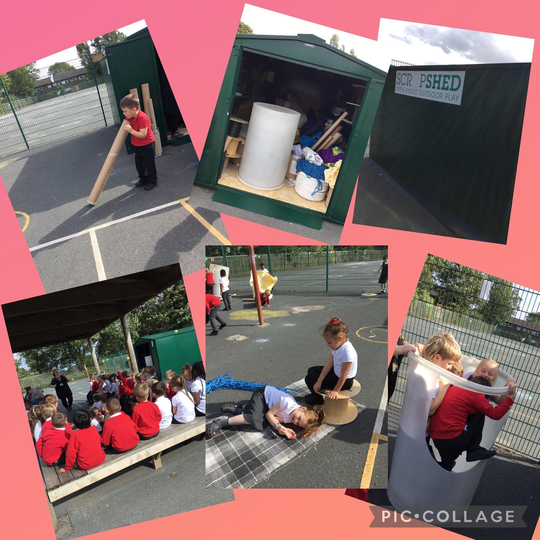 We are lucky to have Scrap Shed in our playground. Using the recycled materials we got creative by building, rolling, imagining and playing around. Can you spot the astronauts in the rocket, the volleyball net, the den and the computer programmer?