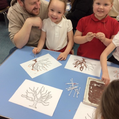 Parents and carers stay and create autumn crafts