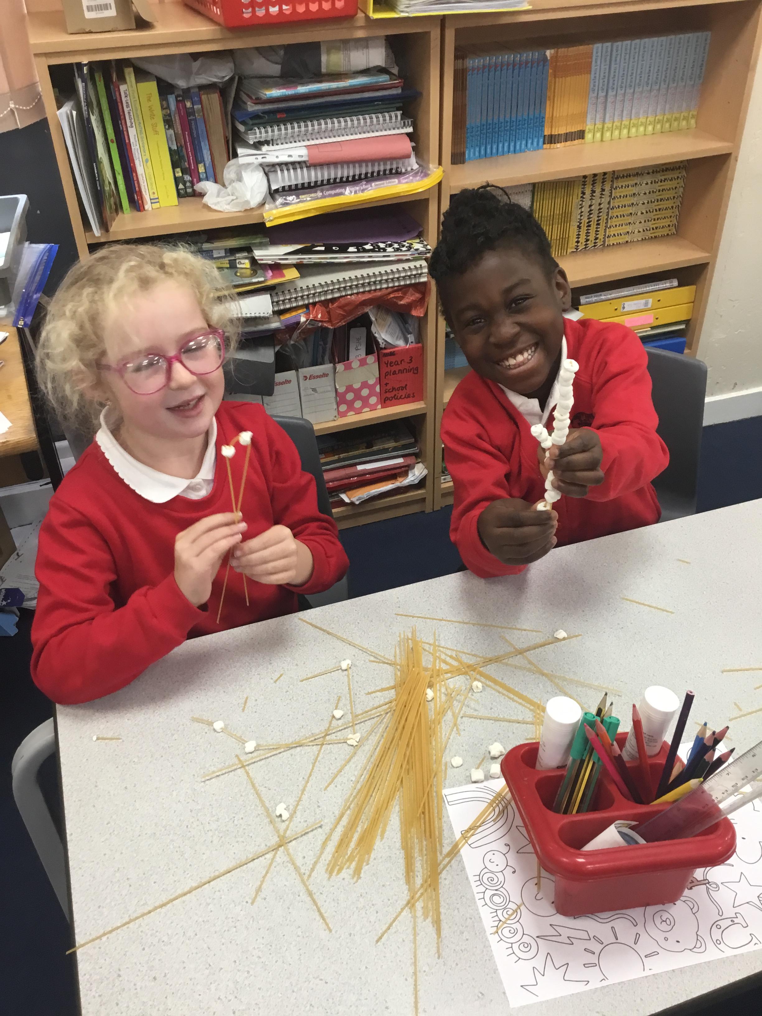 Growth Mindset - In the first week, we used our growth mindset to create a 3D structure using spaghetti and marshmallows.