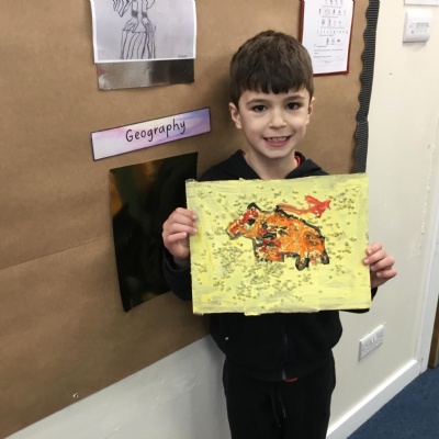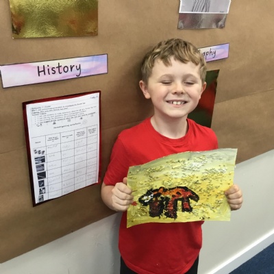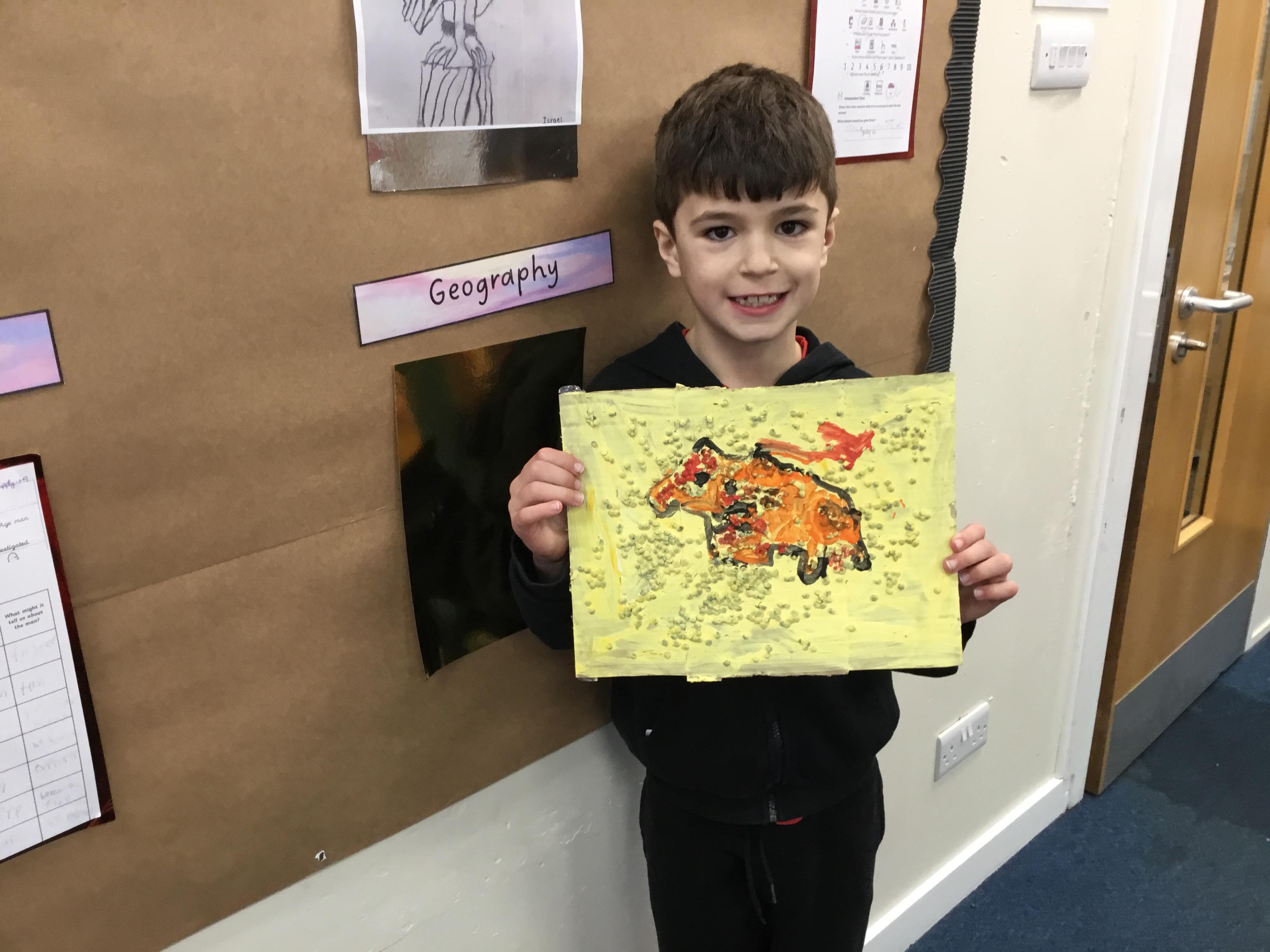 Prehistoric animal cave wall artwork