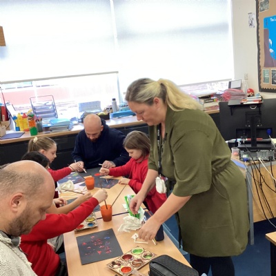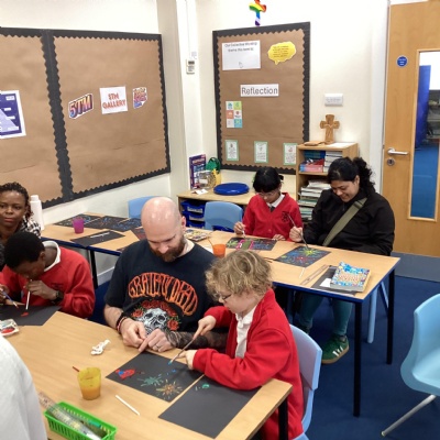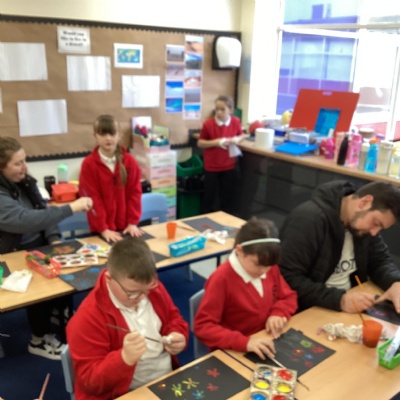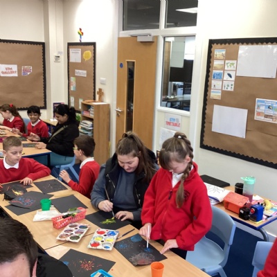 Year 5 enjoyed welcoming their parents/carers into the classroom where they spent time creating Bonfire Night related artwork together.
