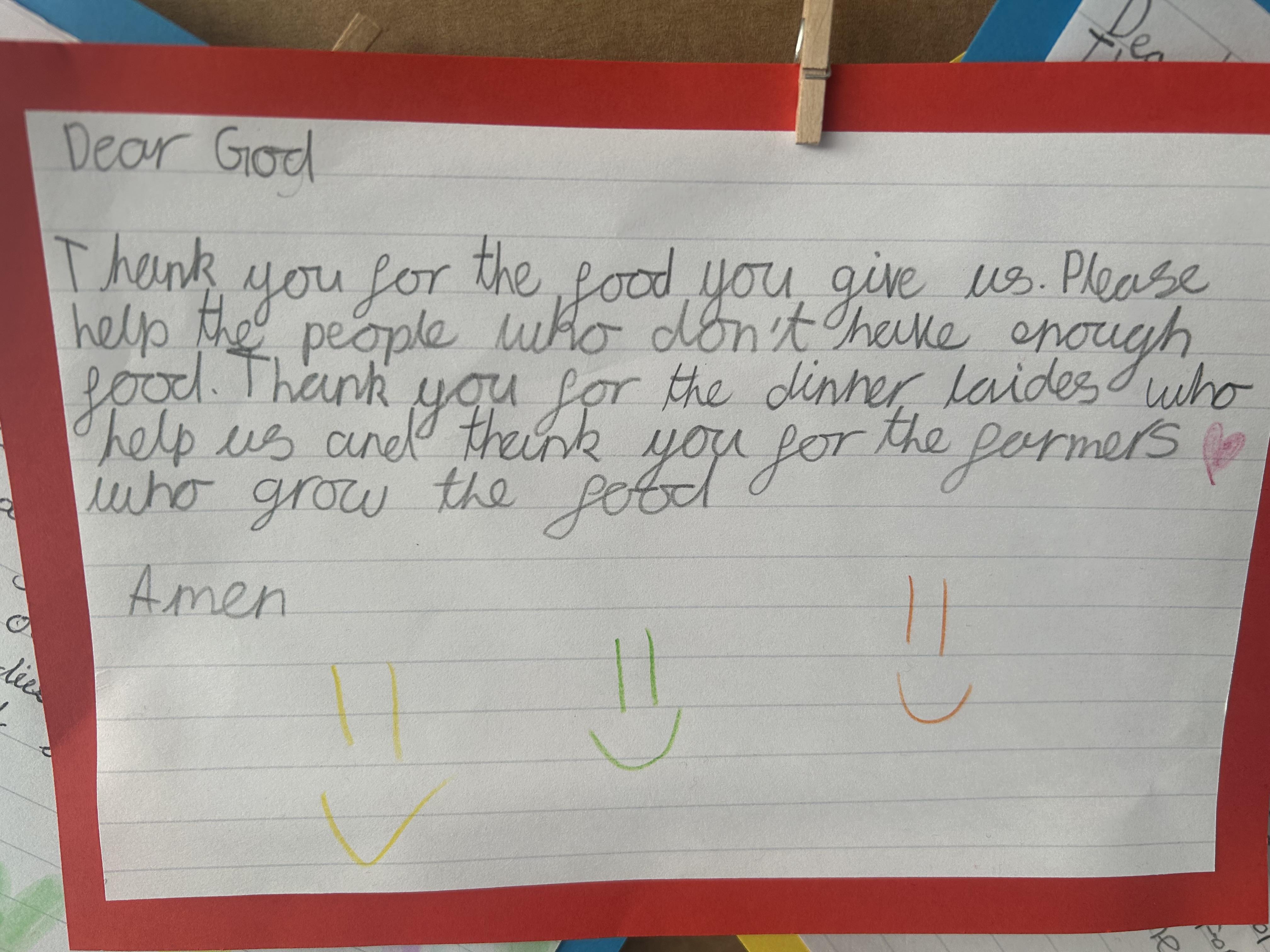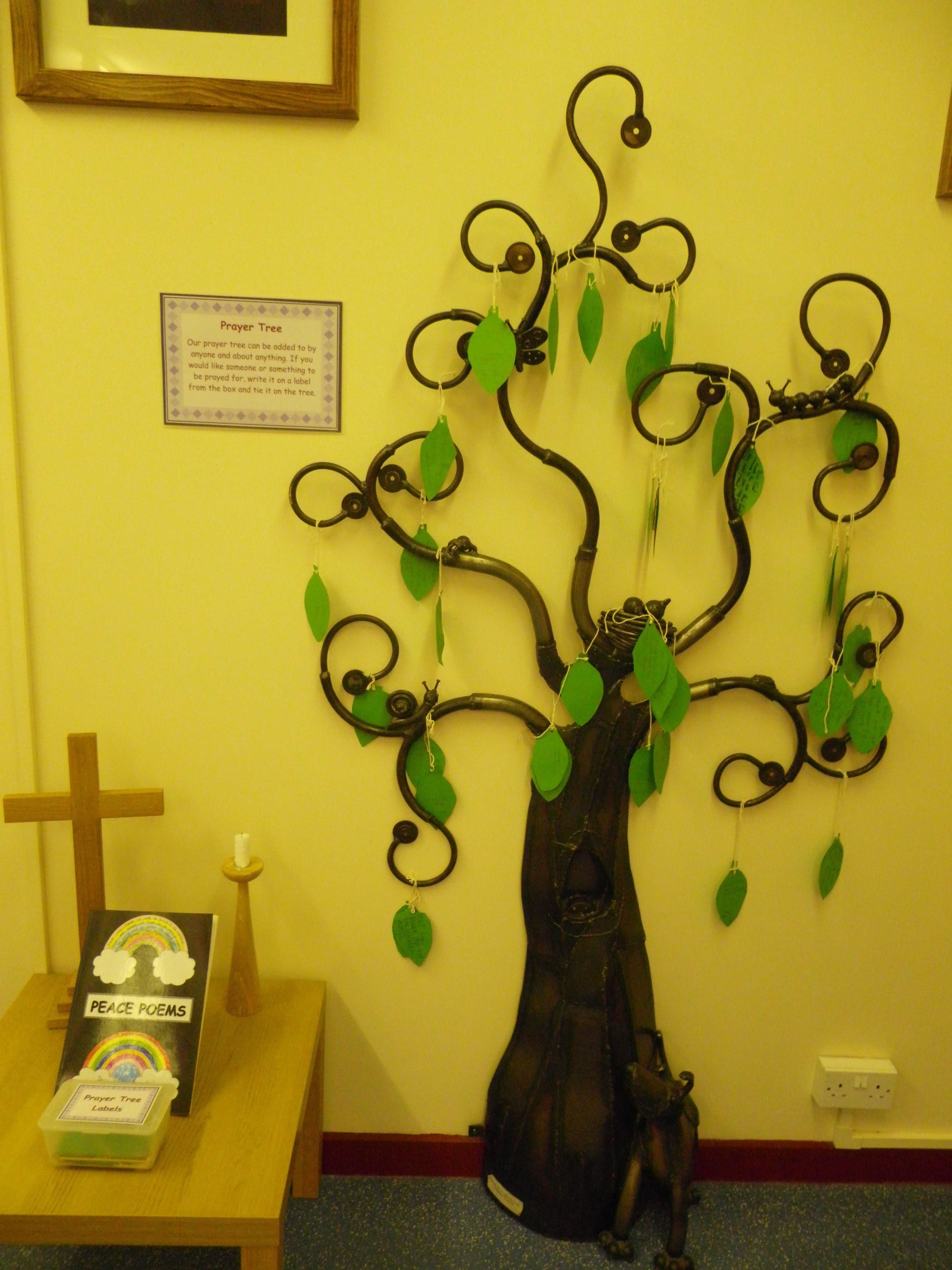 Children are encouraged to understand the significance of prayer and participate in the act of praying. There is a prayer tree in the entrance hall to which the children can add prayers at any time. There are prayer leaves in each classroom and by the tree itself. The prayers are read out during collective worship by children in the collective worship group.
