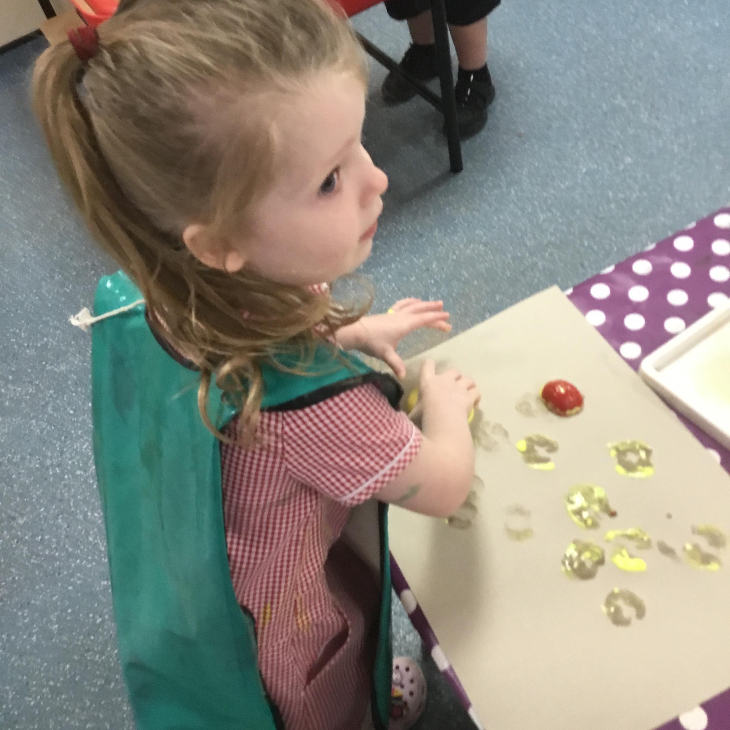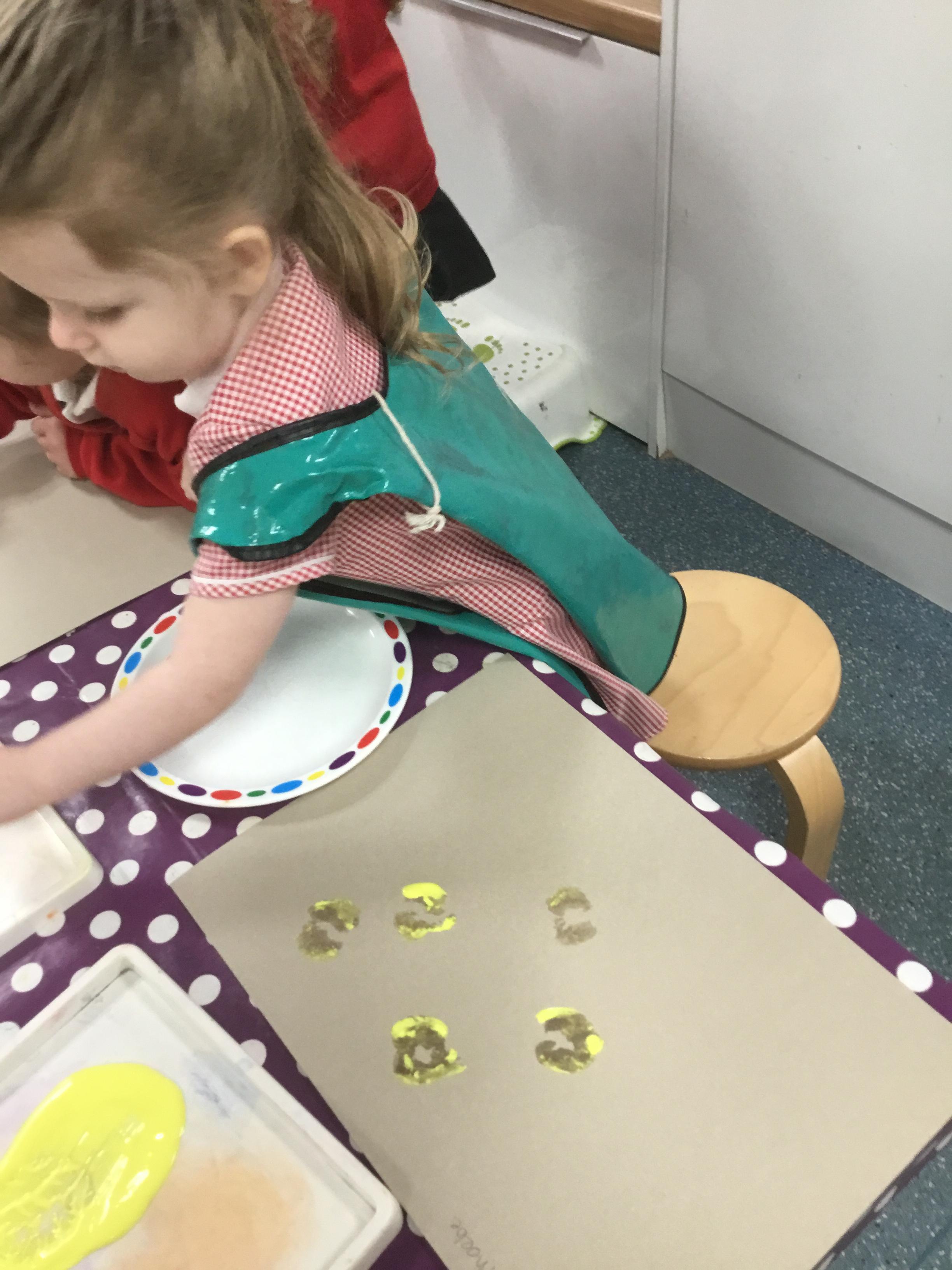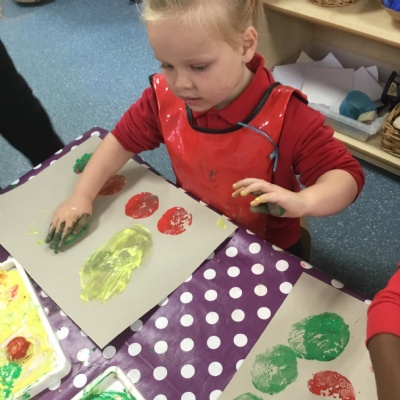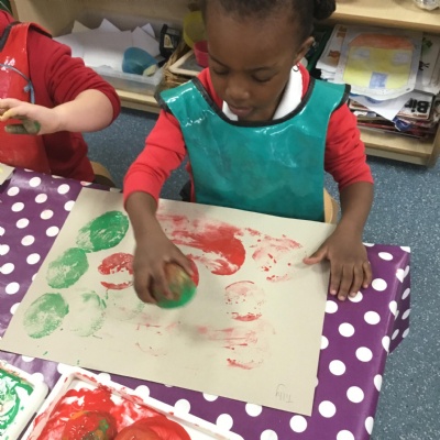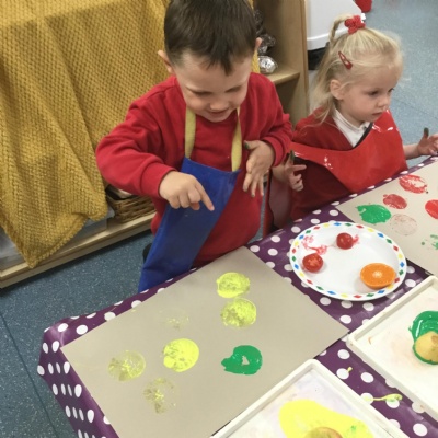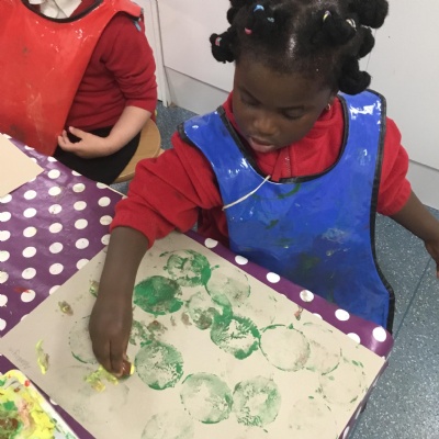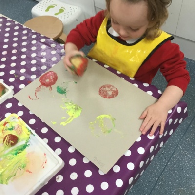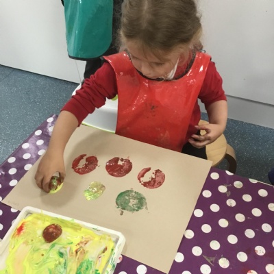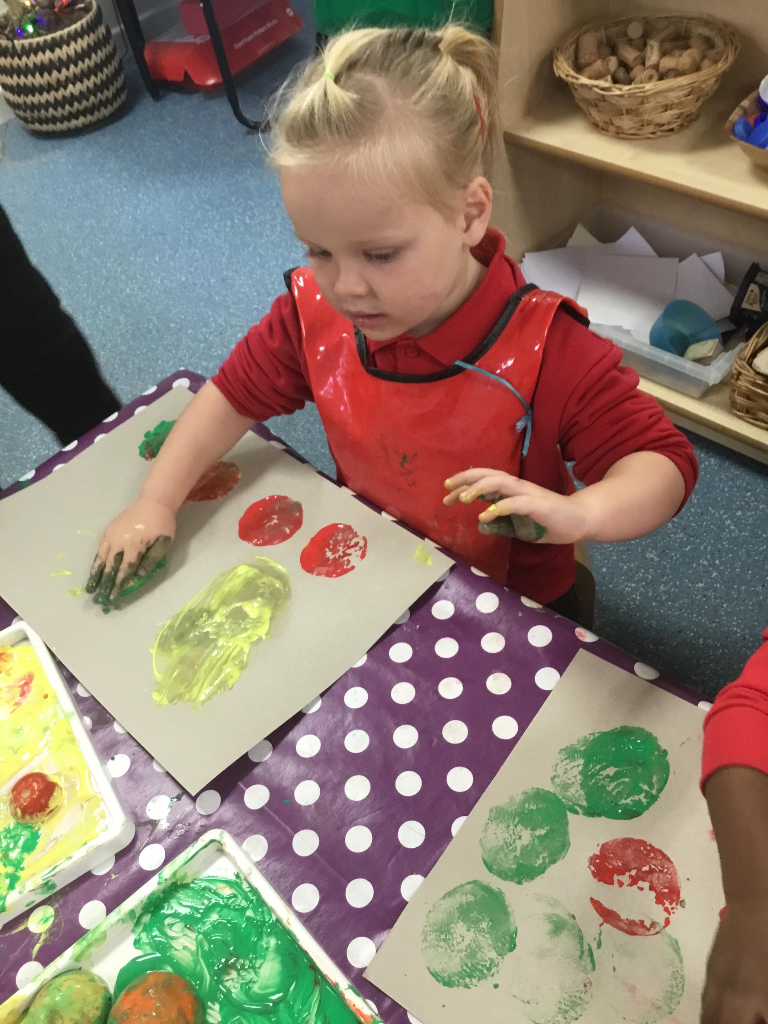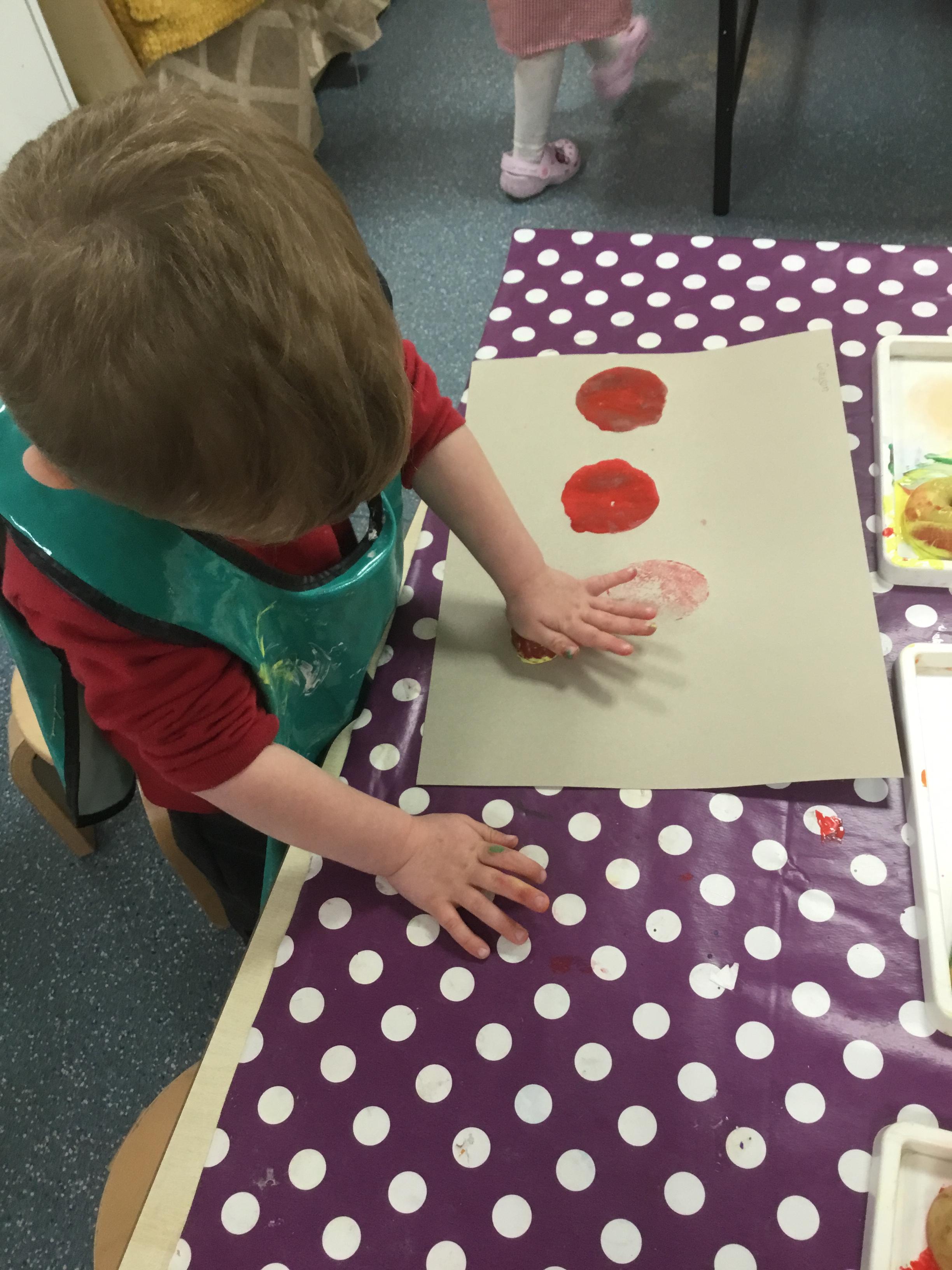 The children have been learning about ‘Harvest’ in Nursery and then they enjoyed printing pictures with some fruits and vegetables.
