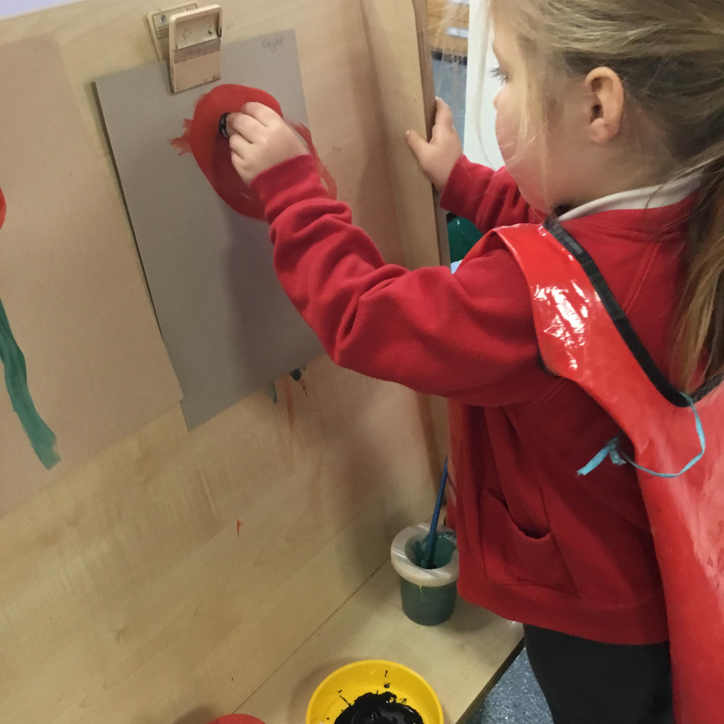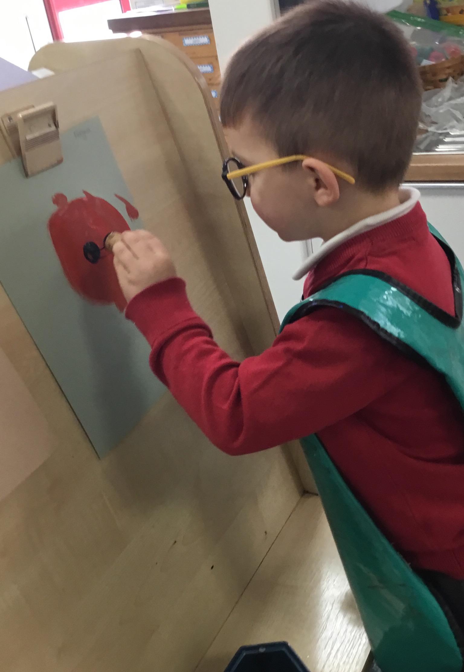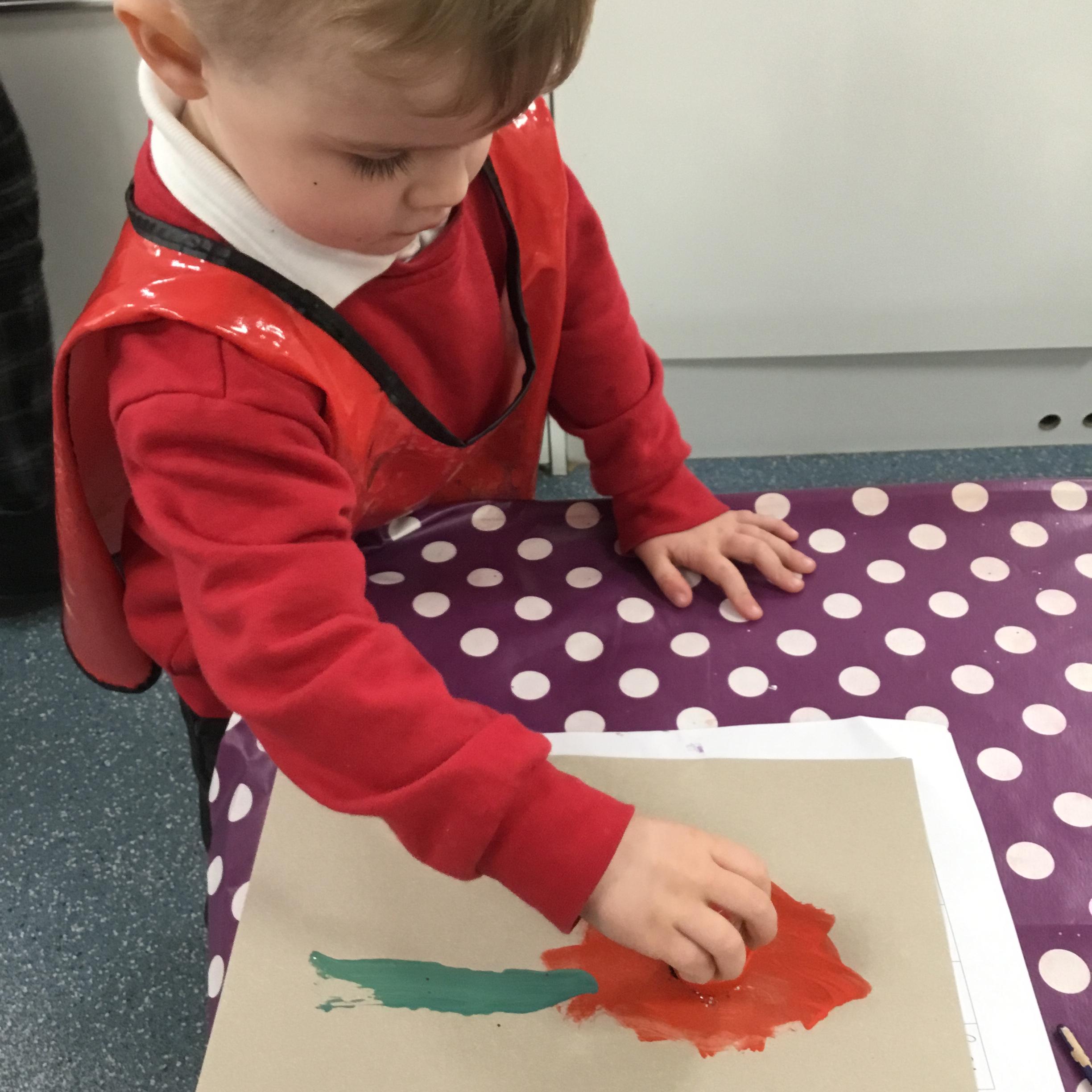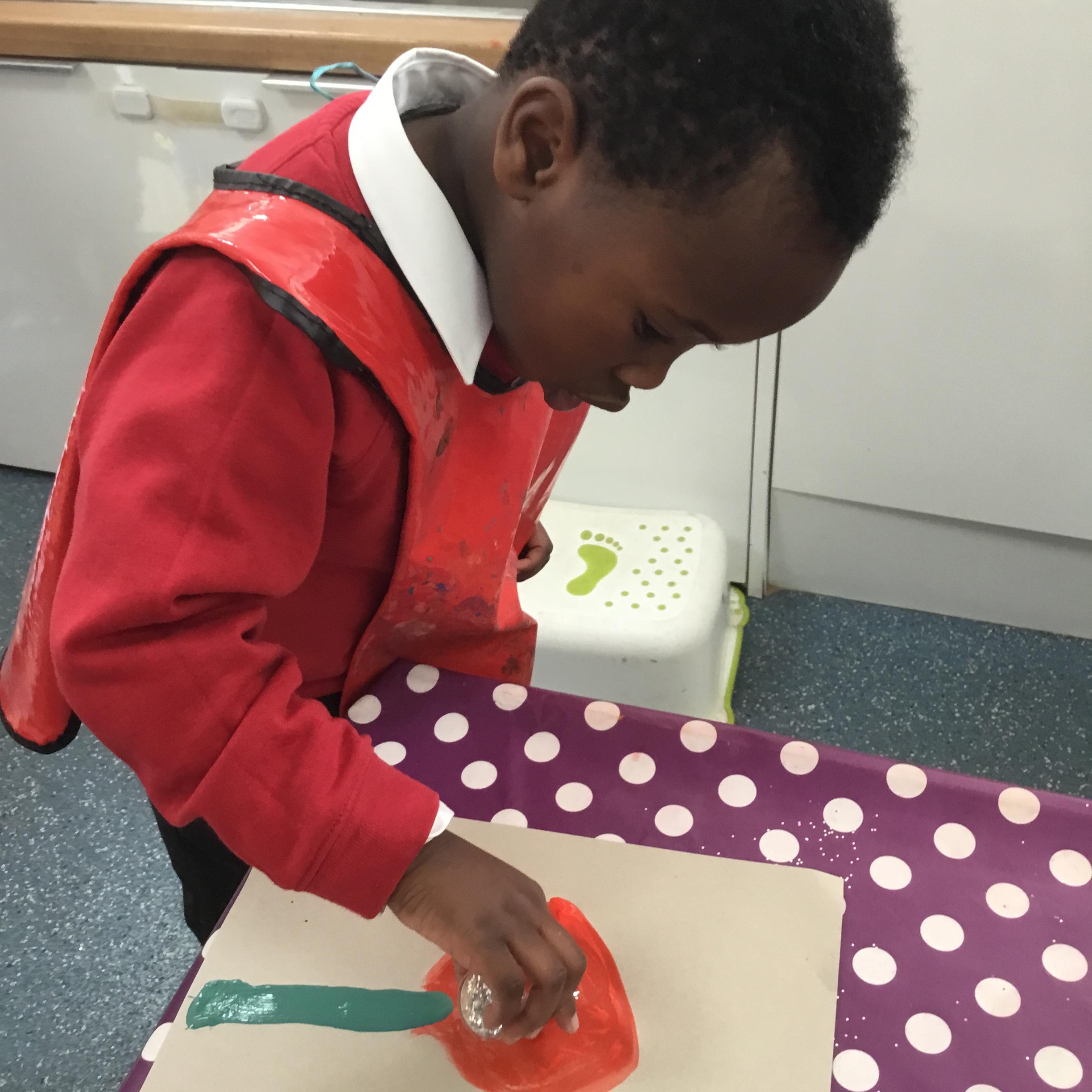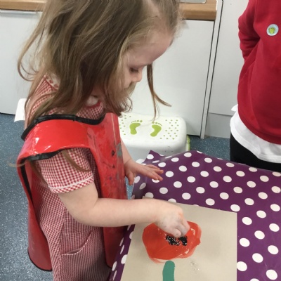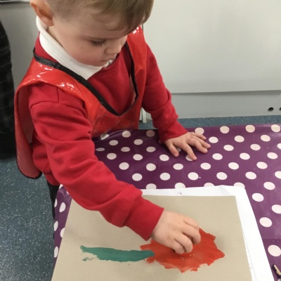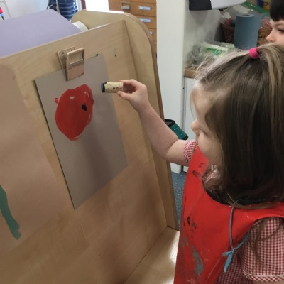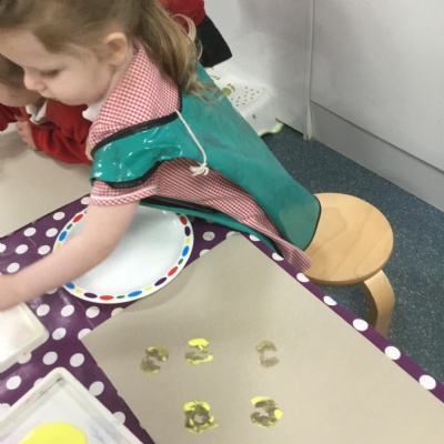 The children have been learning about ‘Harvest’ in Nursery and then they enjoyed printing pictures with some fruits and vegetables.
