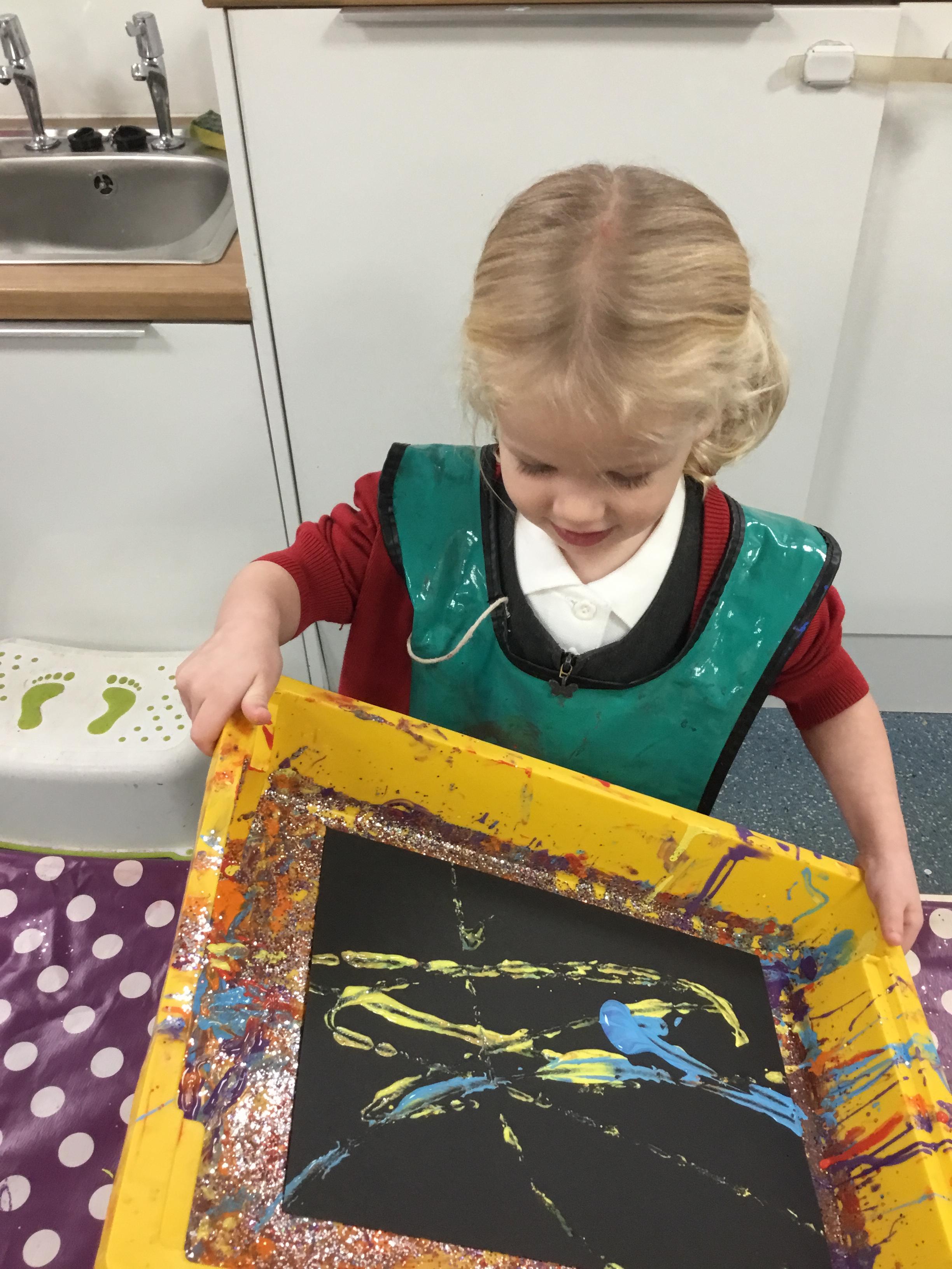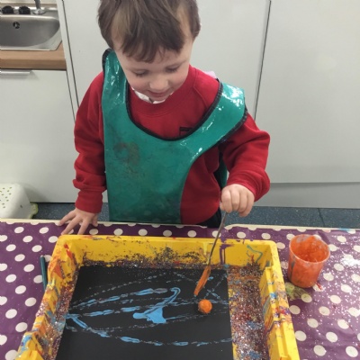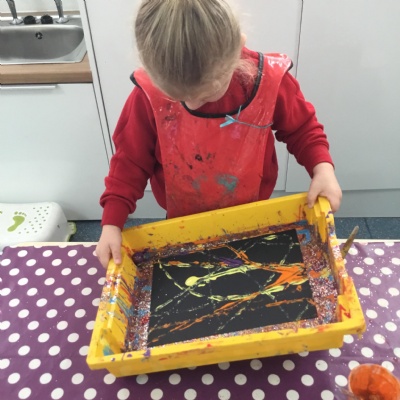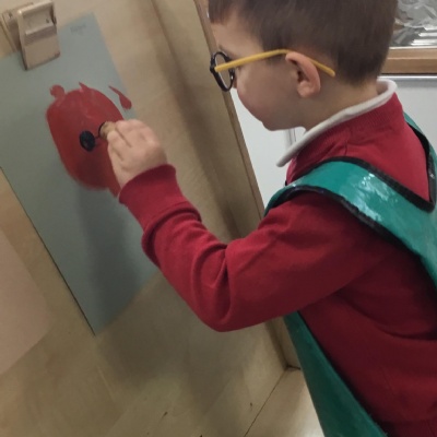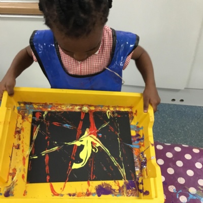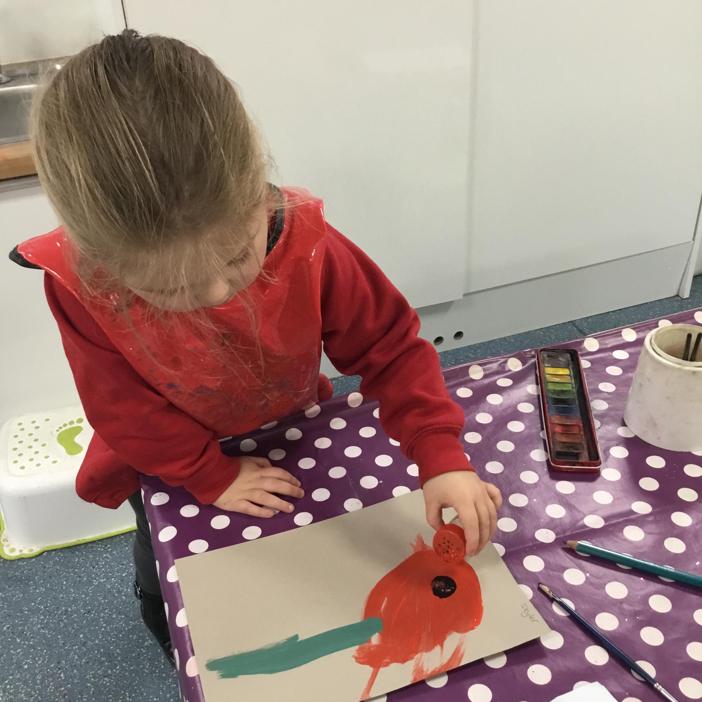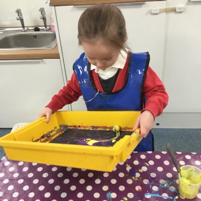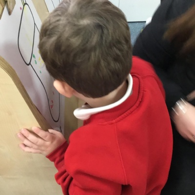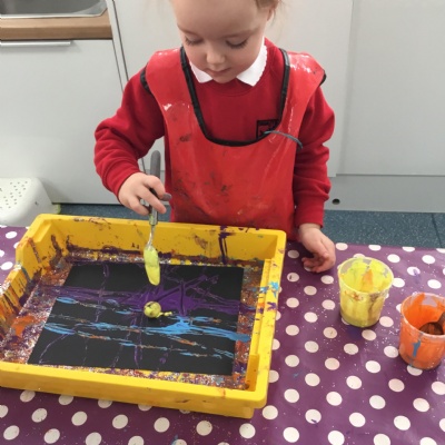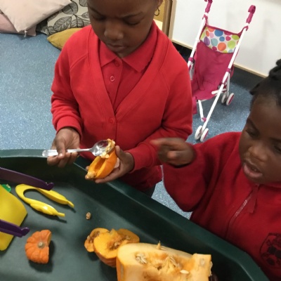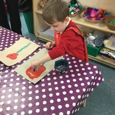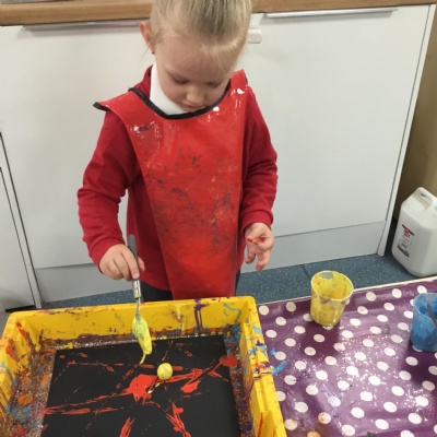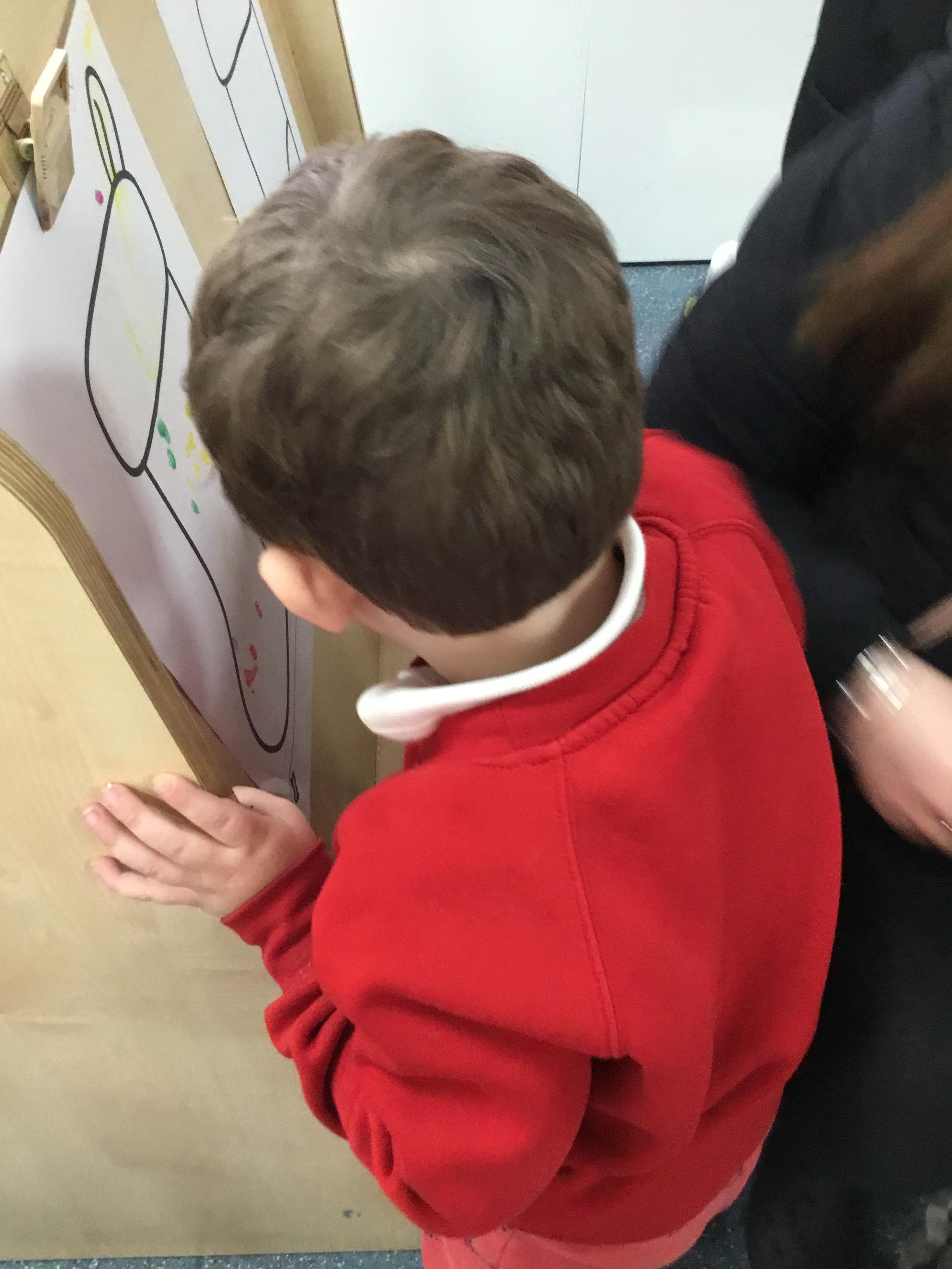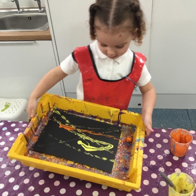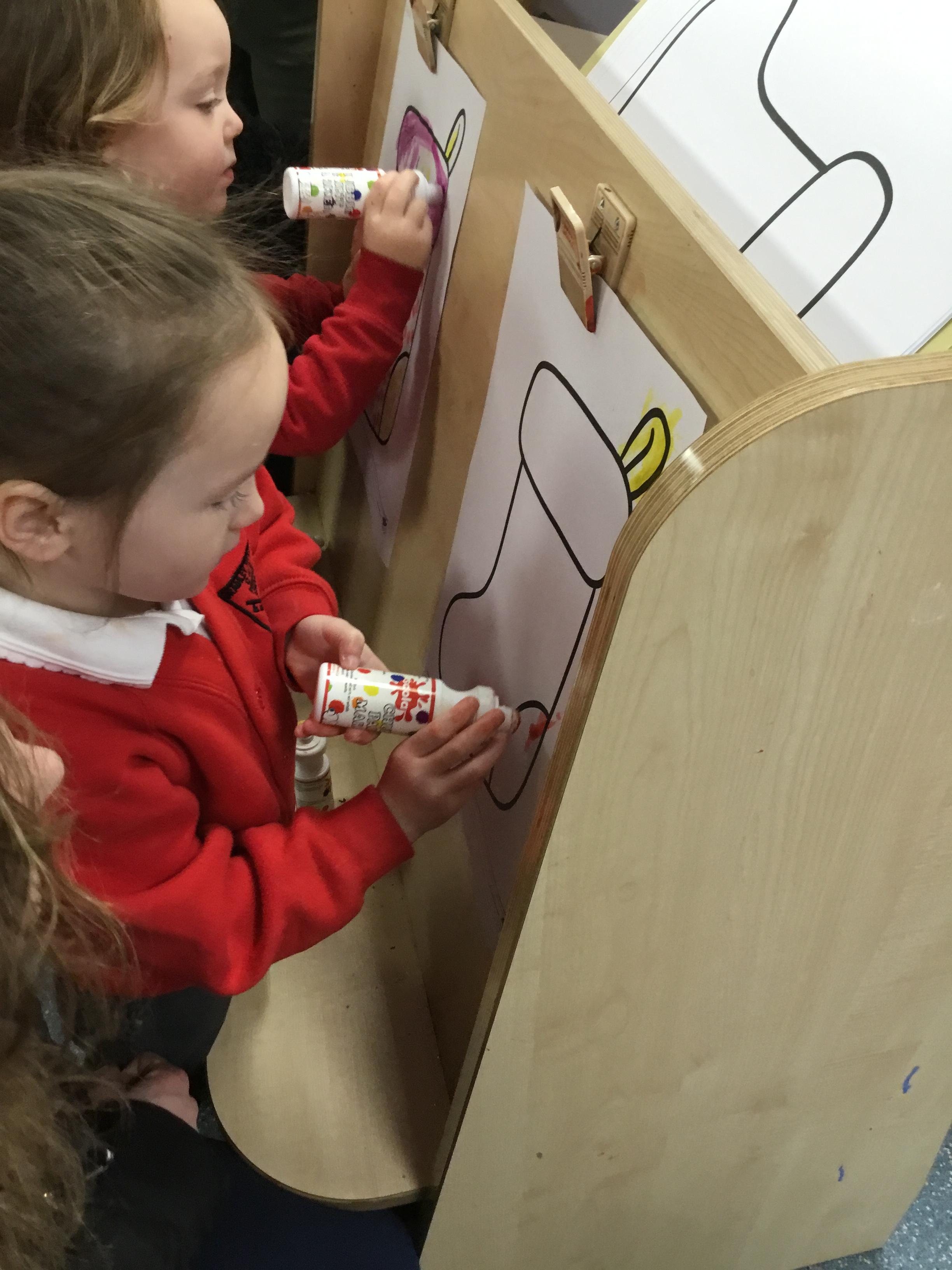 The children have been learning about ‘Harvest’ in Nursery and then they enjoyed printing pictures with some fruits and vegetables.