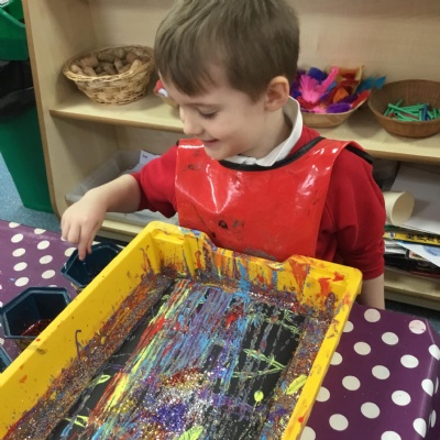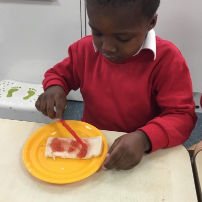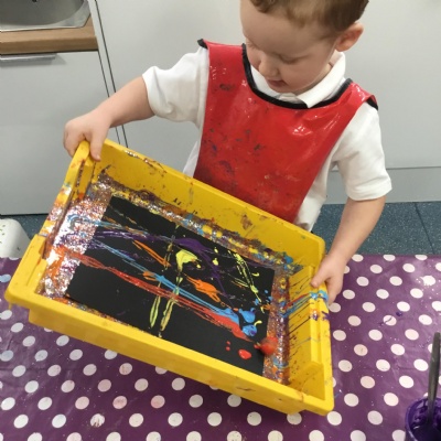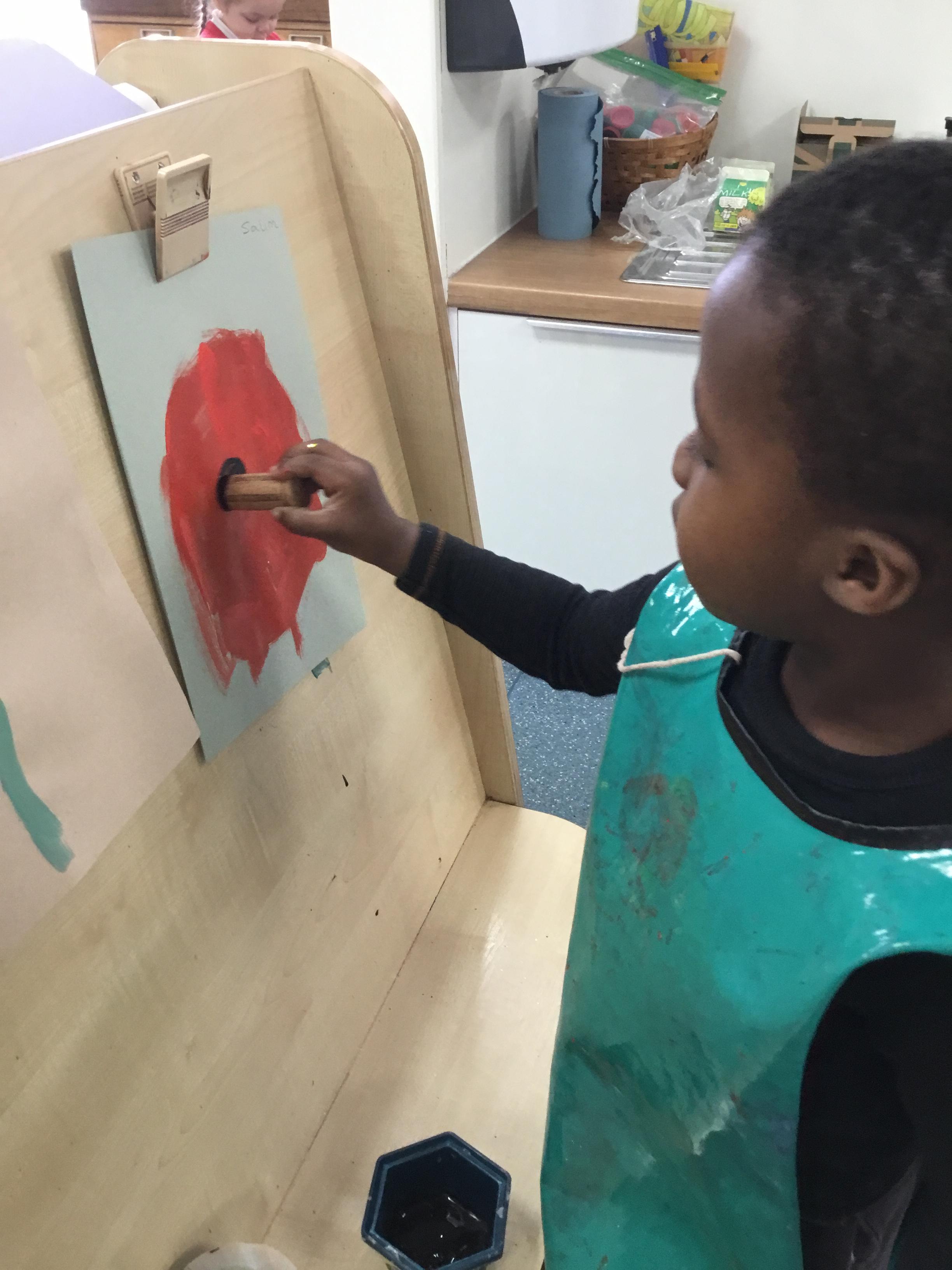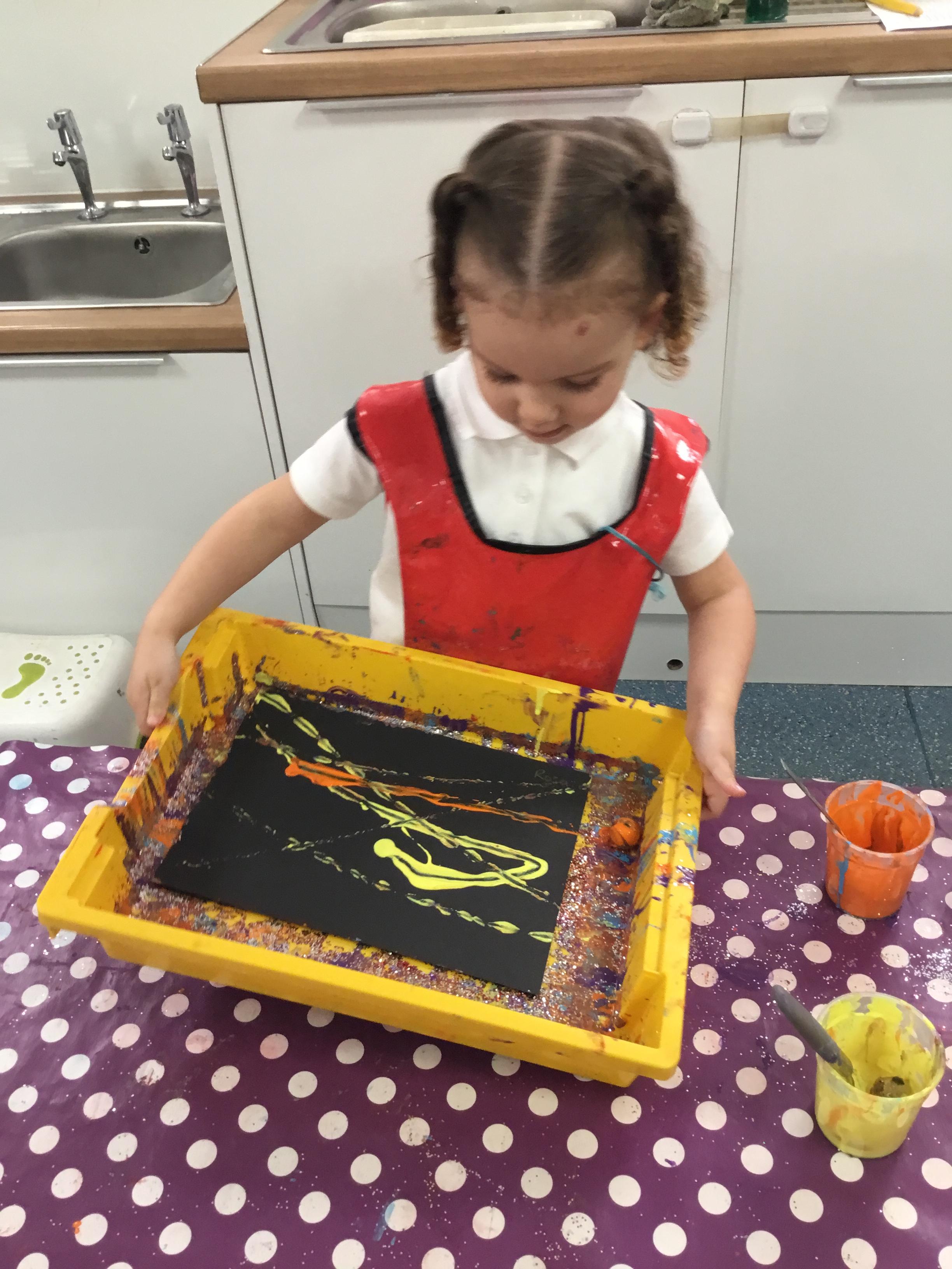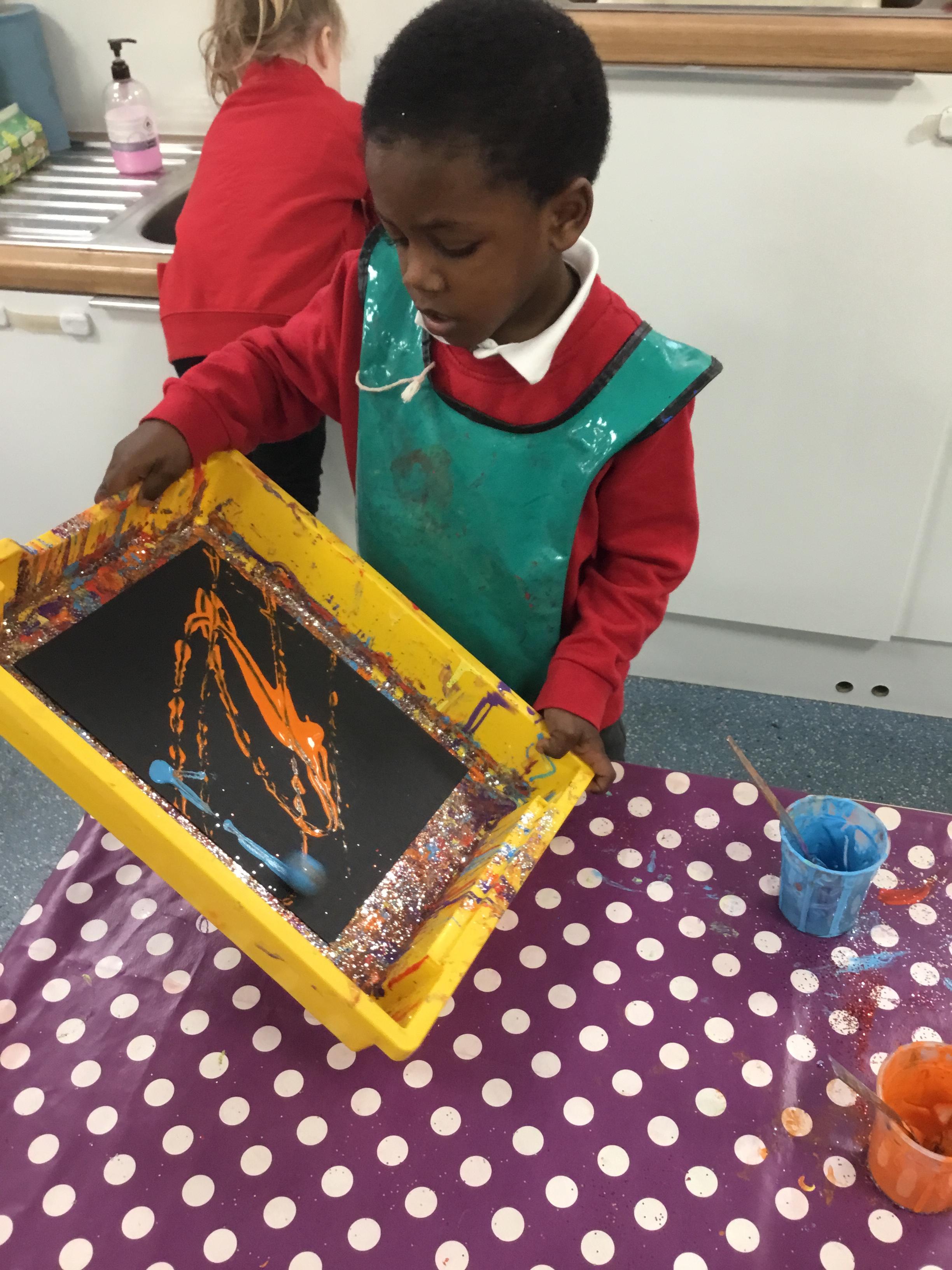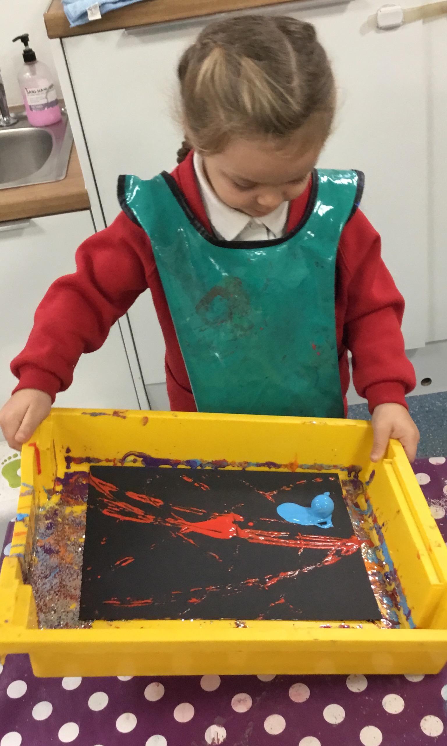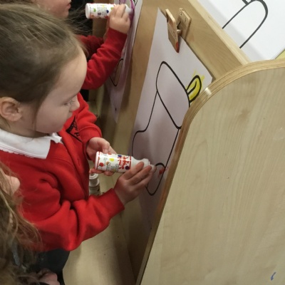 The children have been learning about ‘Harvest’ in Nursery and then they enjoyed printing pictures with some fruits and vegetables.