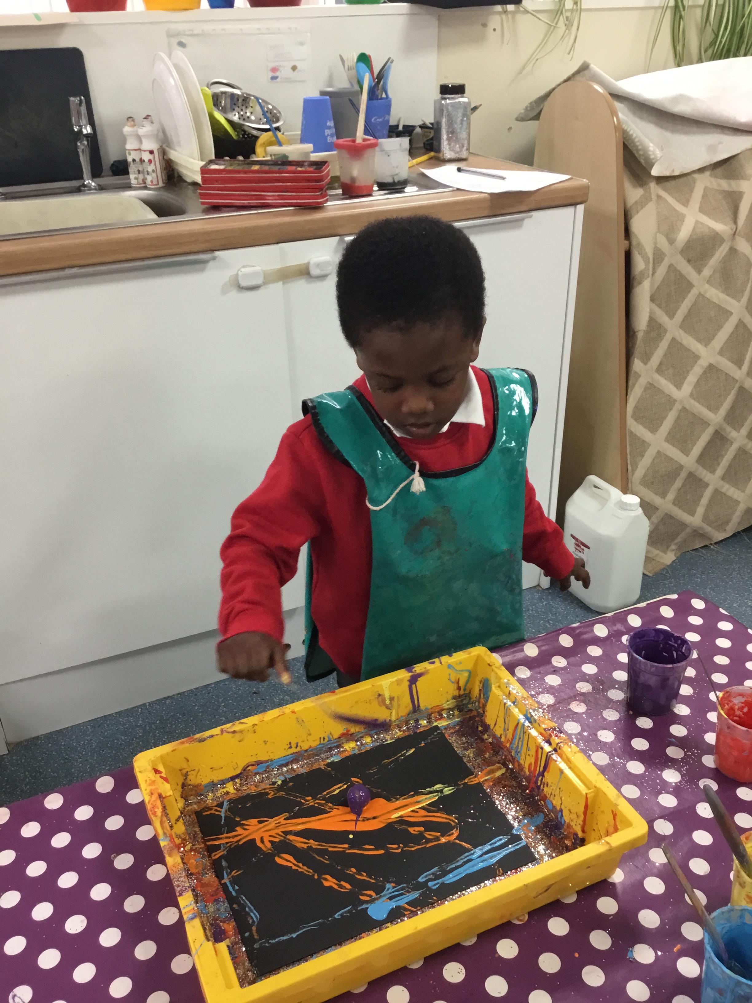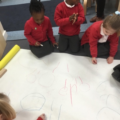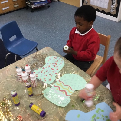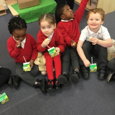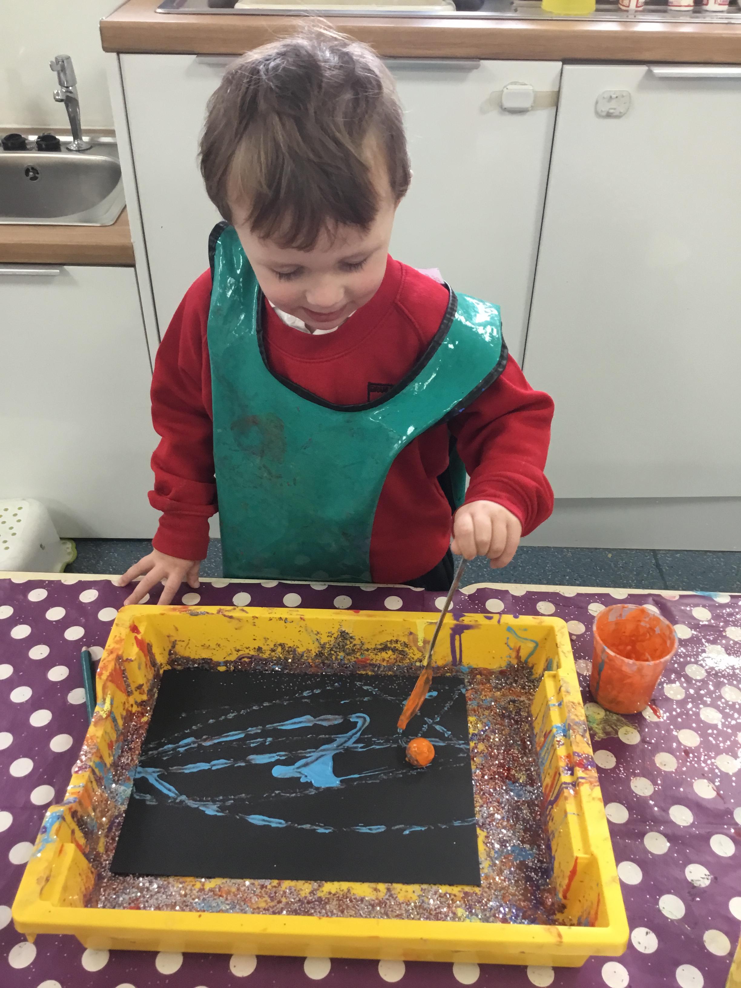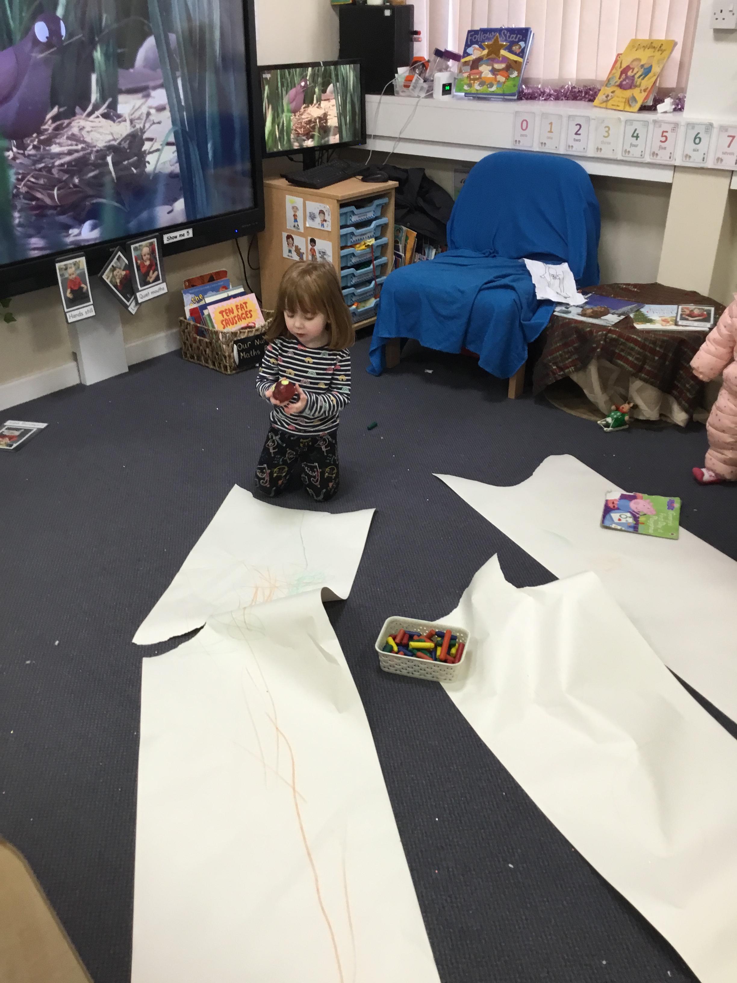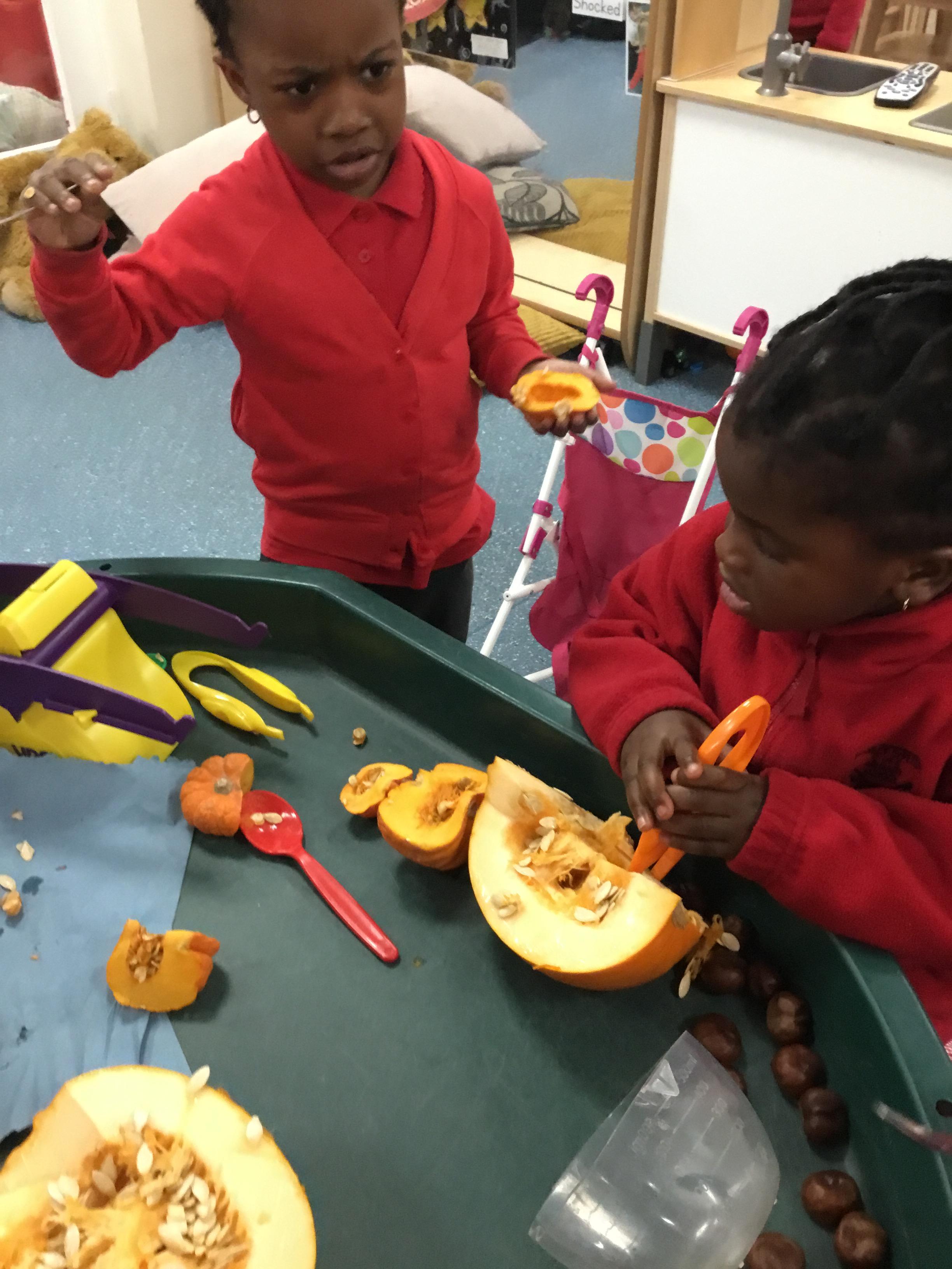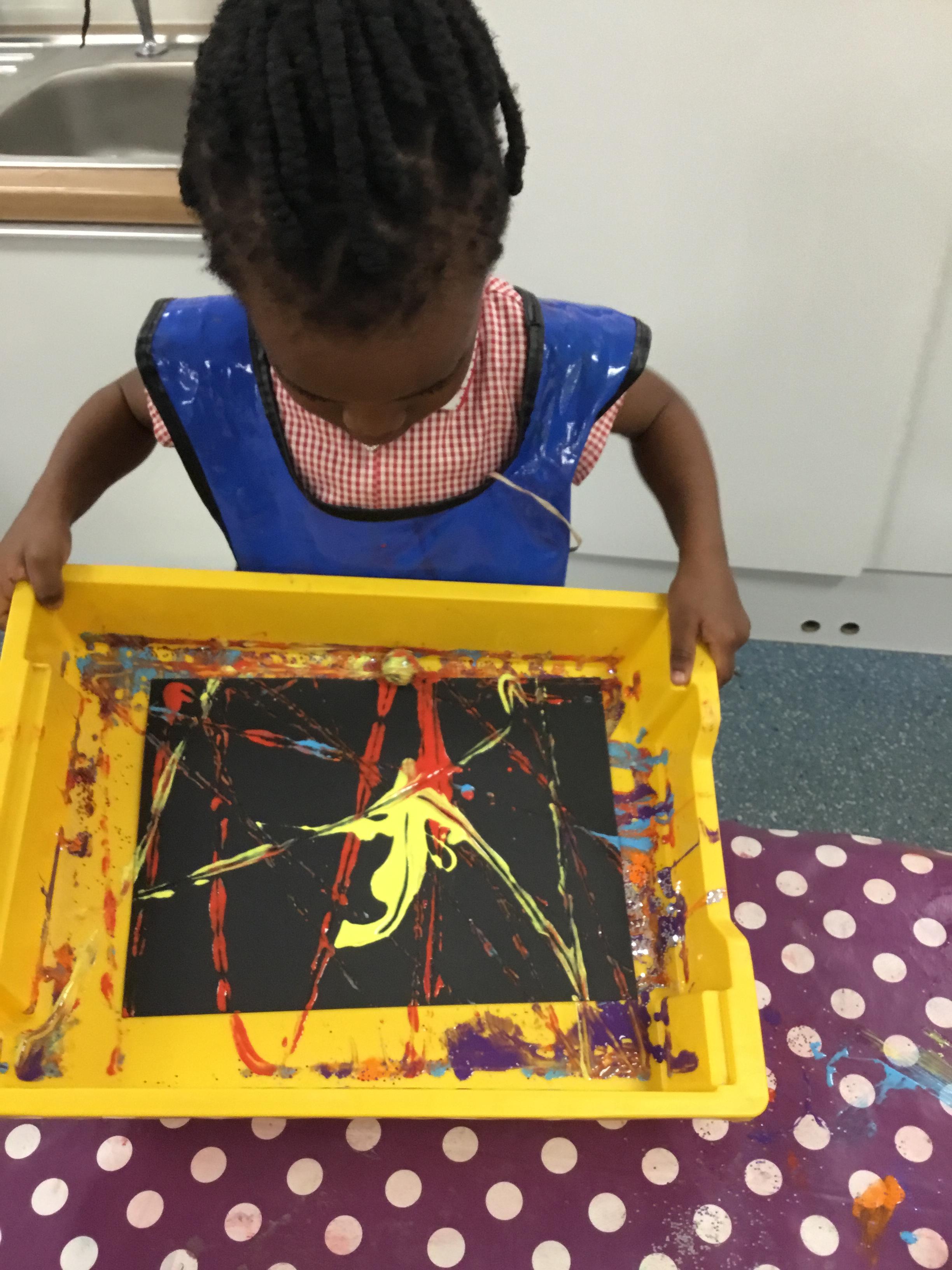 The children have been learning about ‘Harvest’ in Nursery and then they enjoyed printing pictures with some fruits and vegetables.