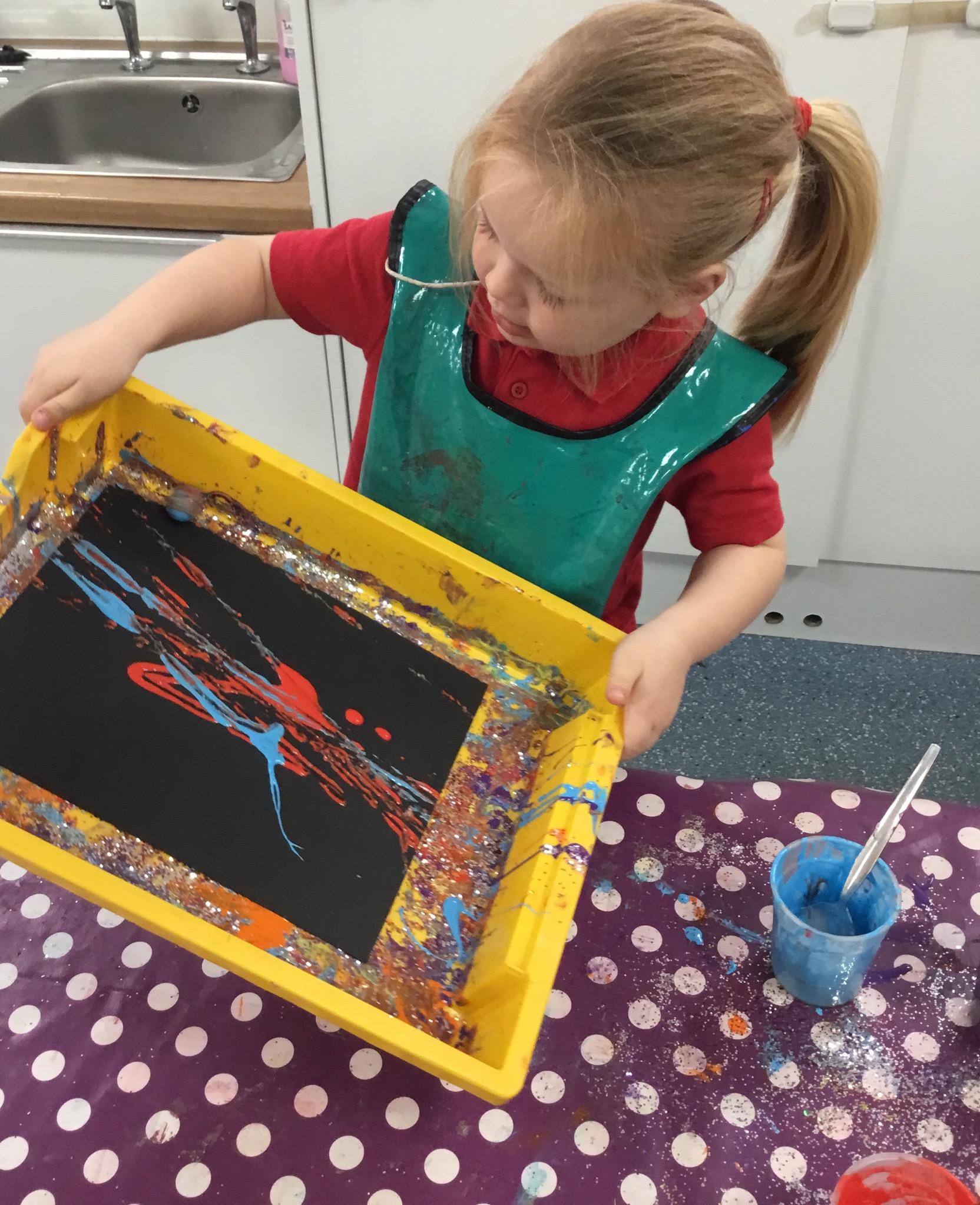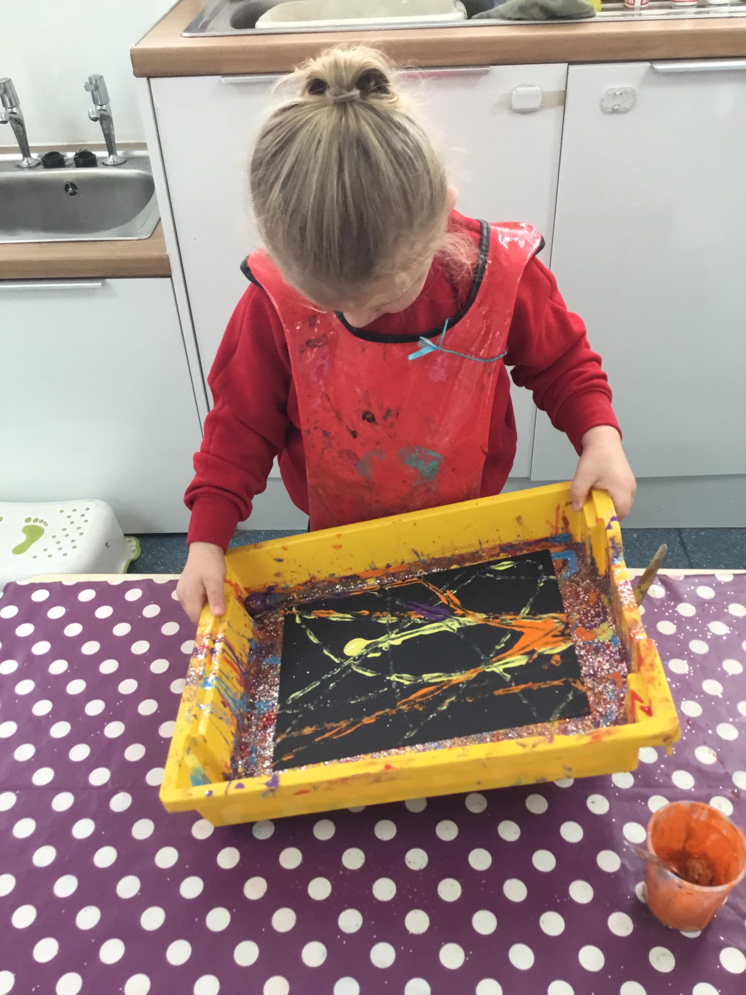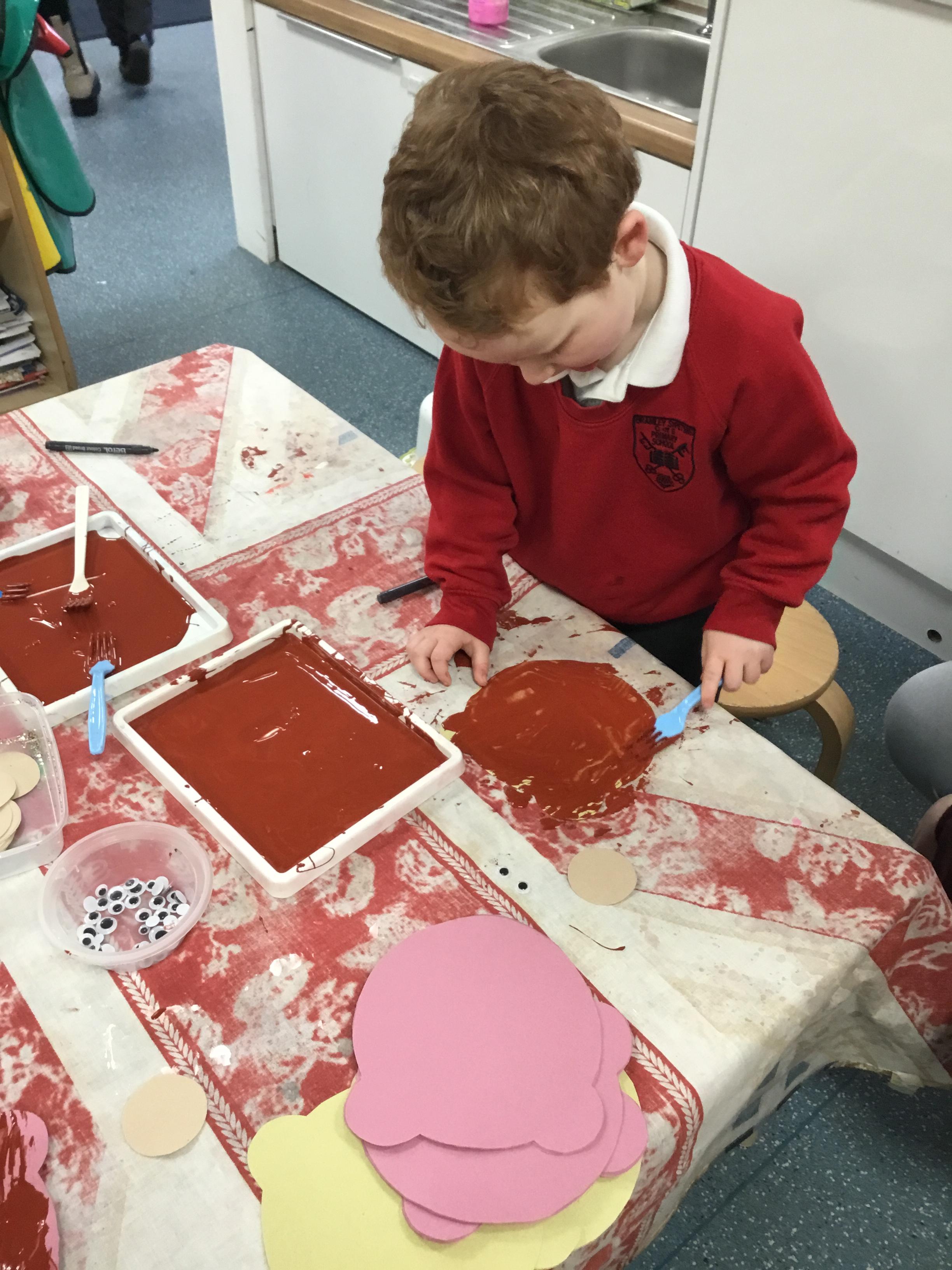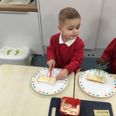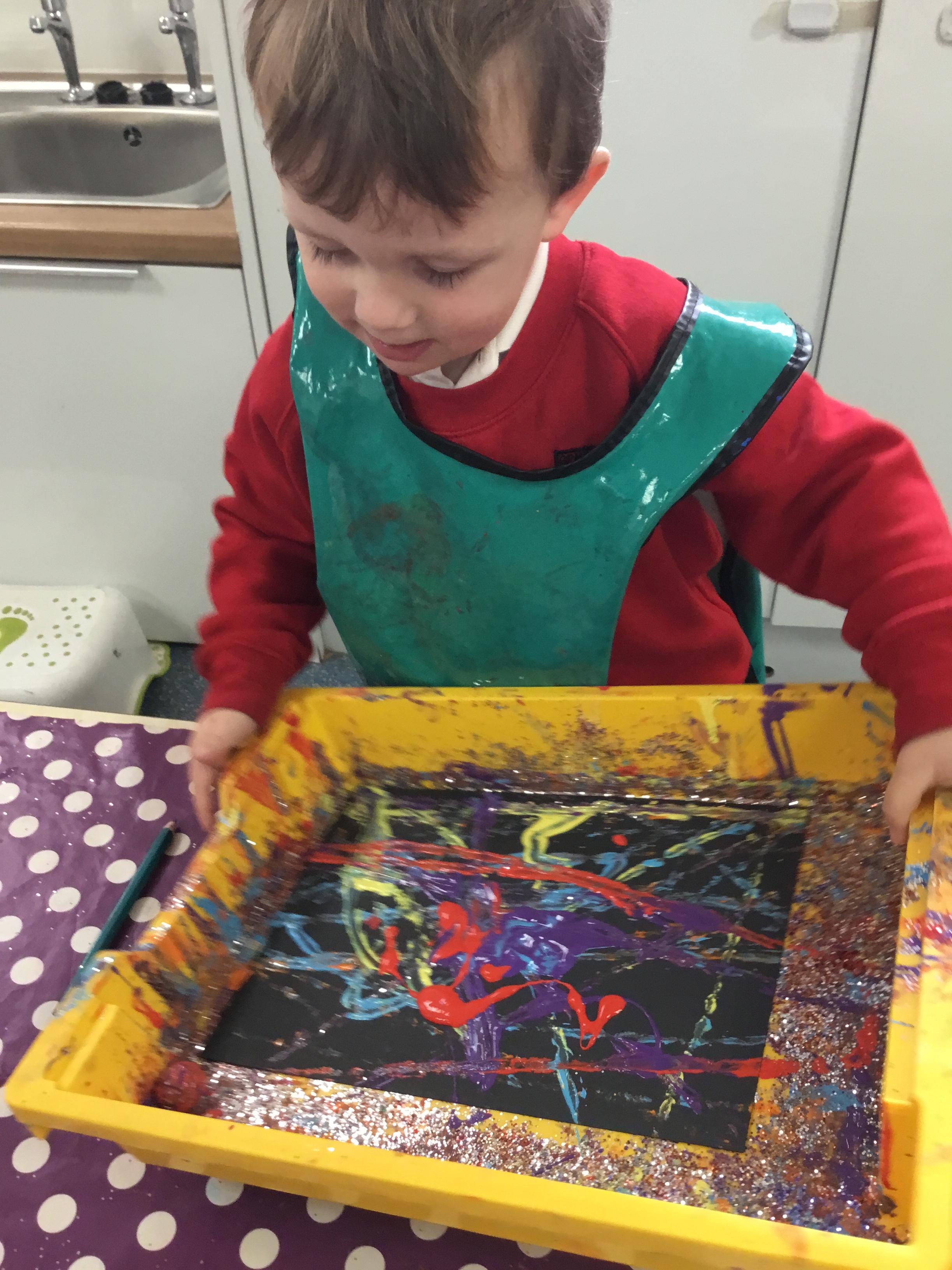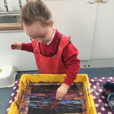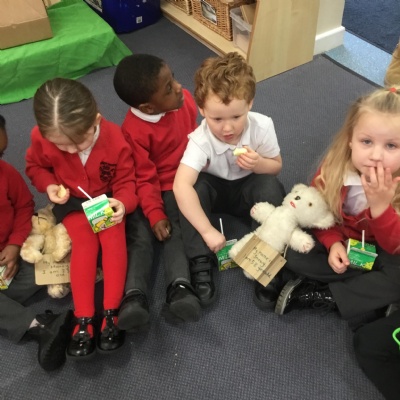 The children have been learning about ‘Harvest’ in Nursery and then they enjoyed printing pictures with some fruits and vegetables.