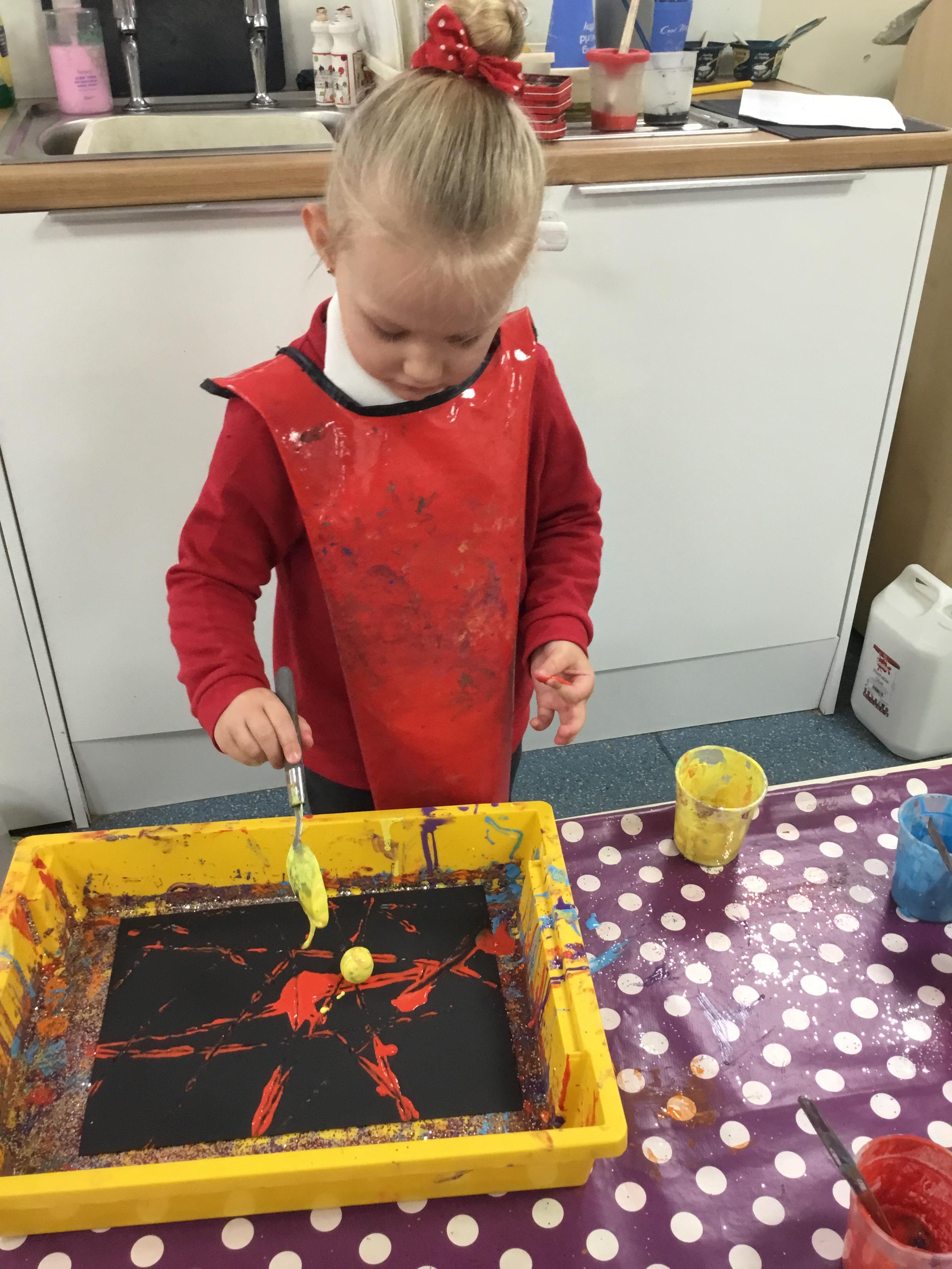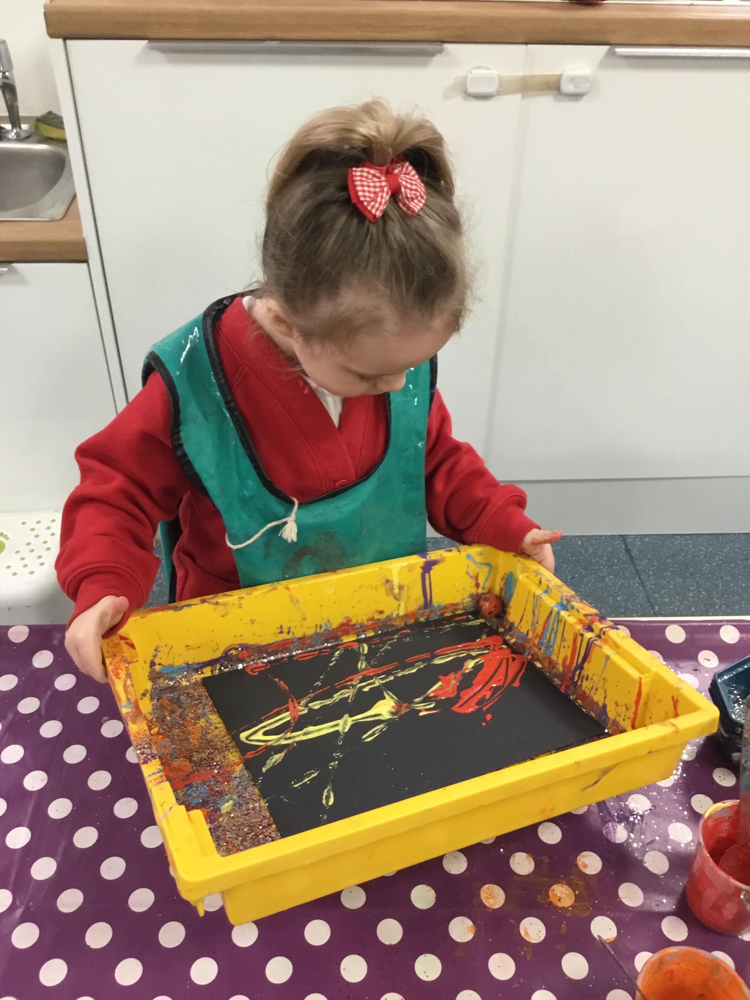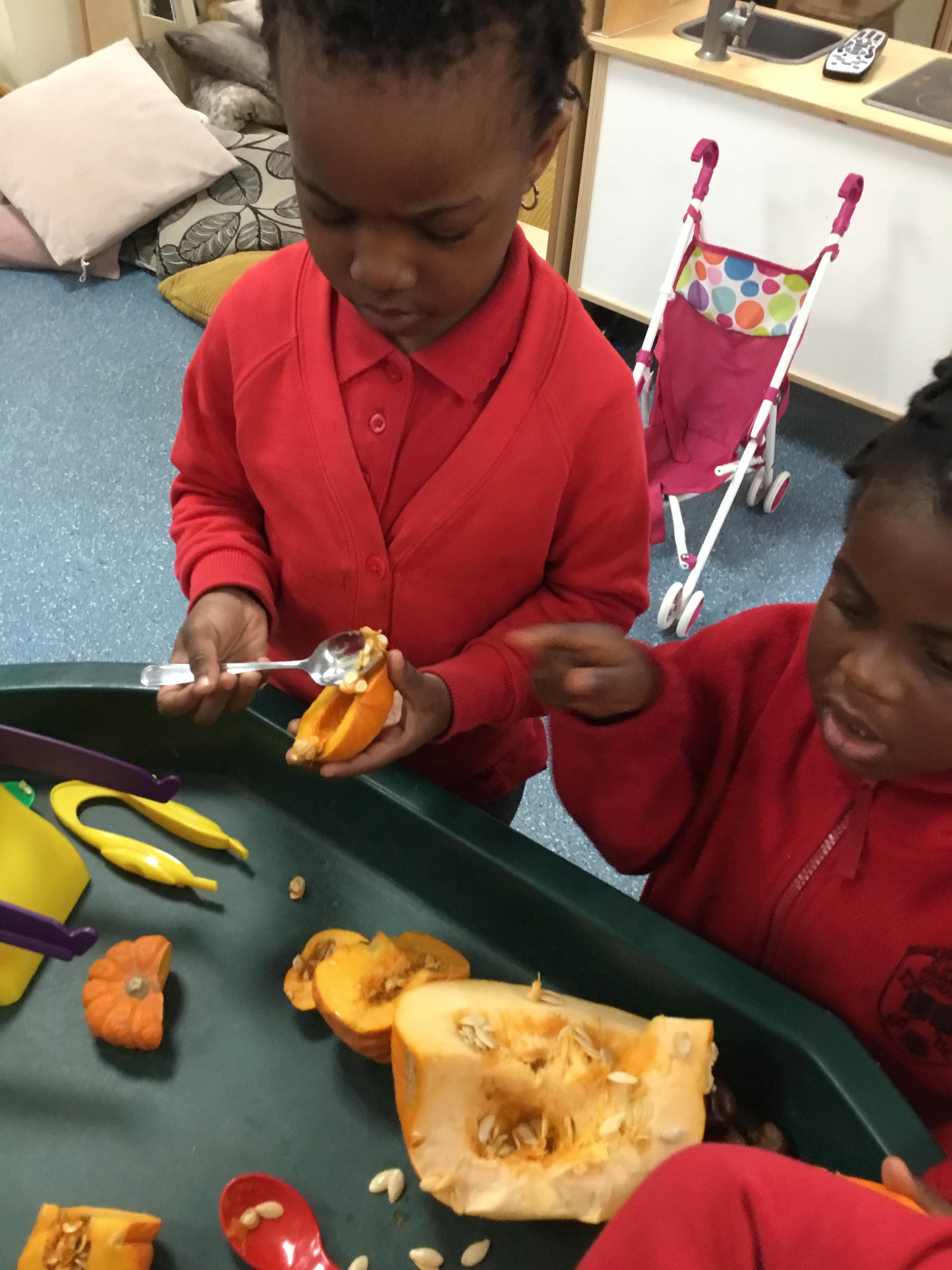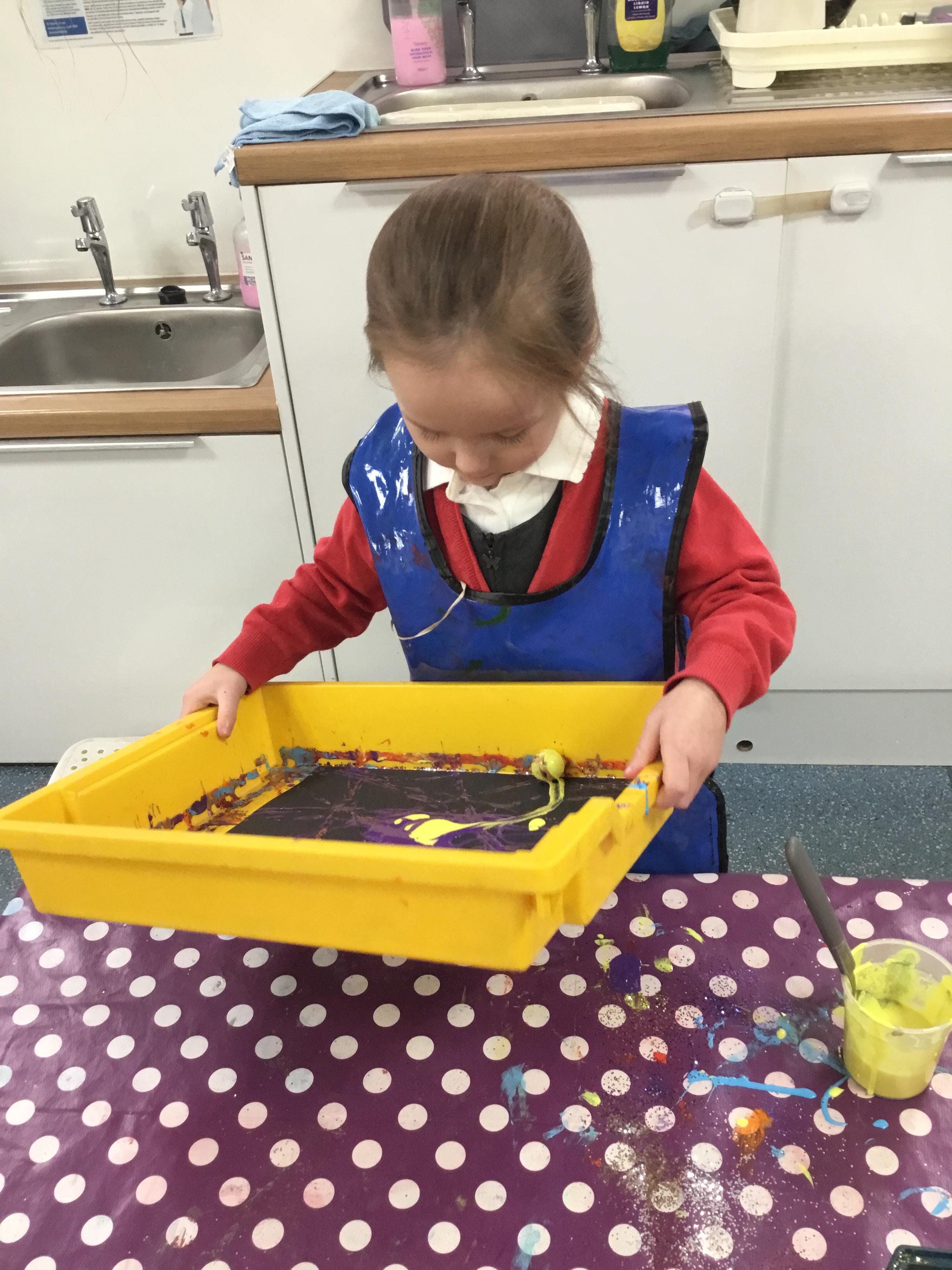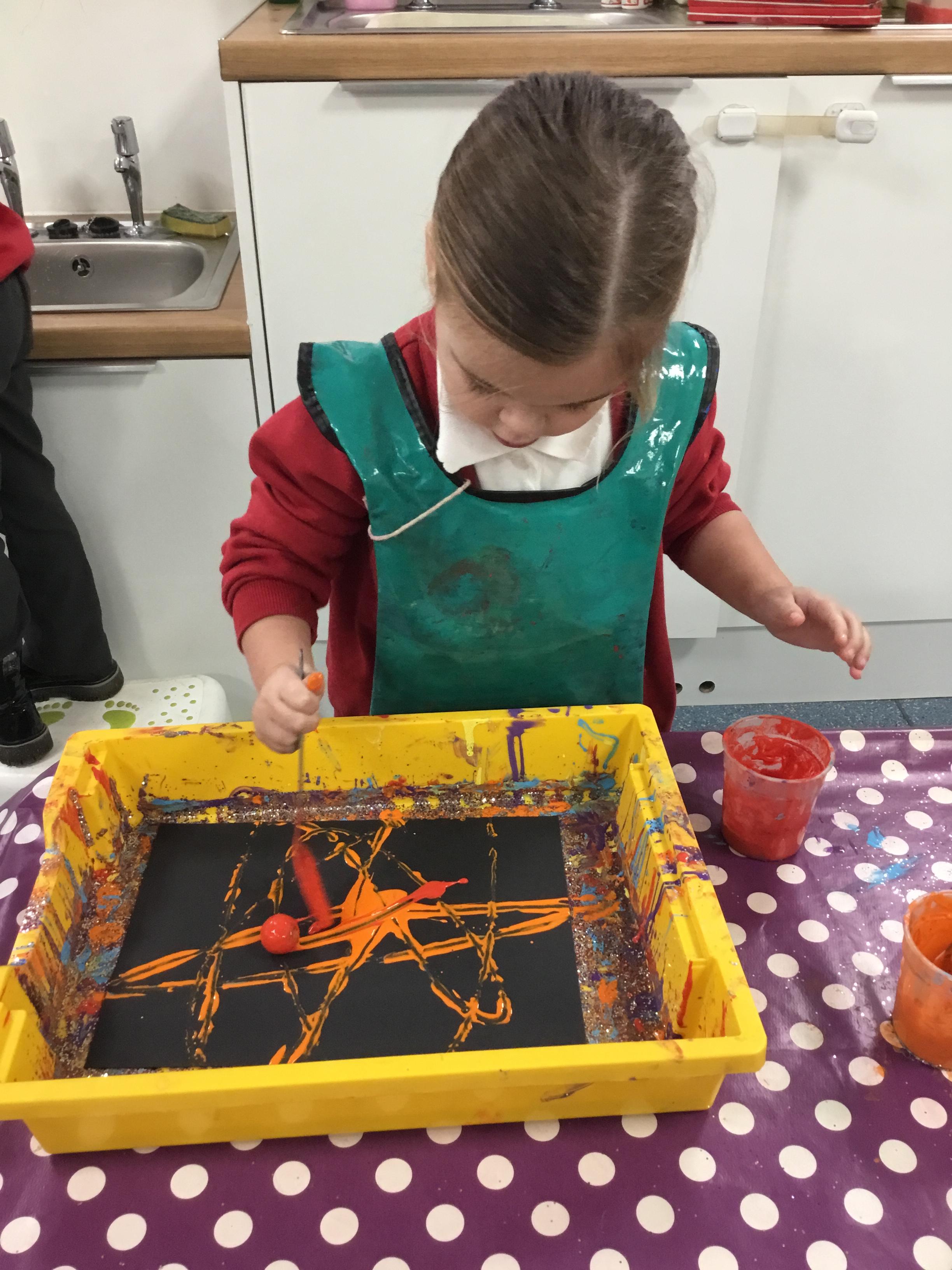 The children have been learning about ‘Harvest’ in Nursery and then they enjoyed printing pictures with some fruits and vegetables.