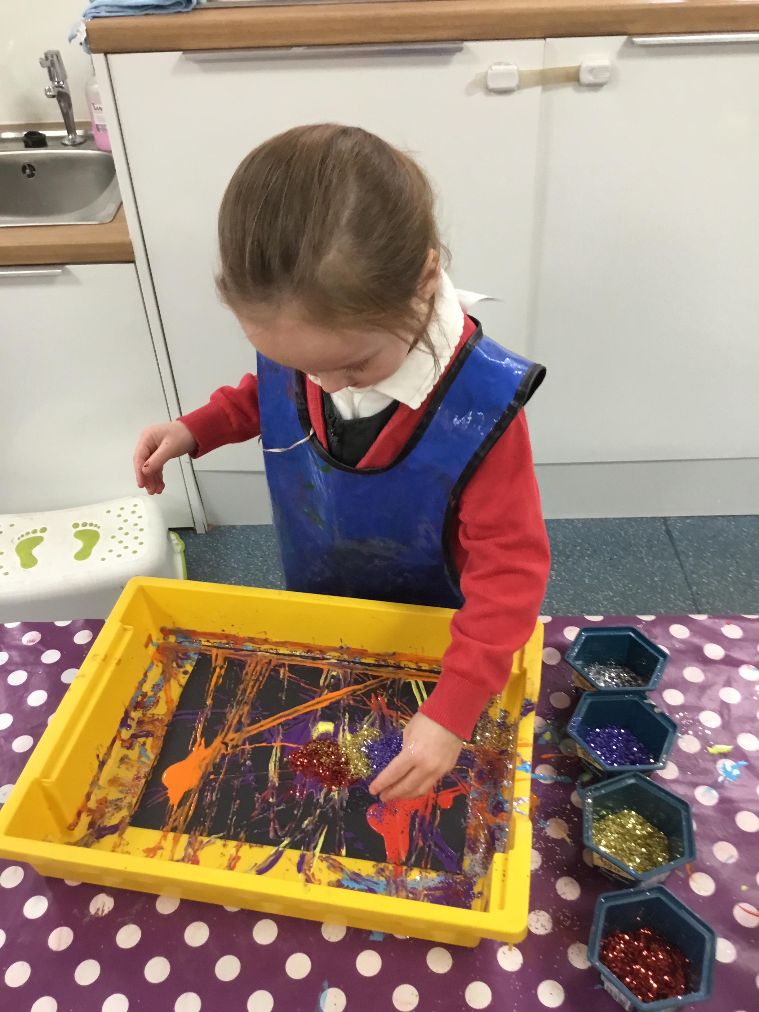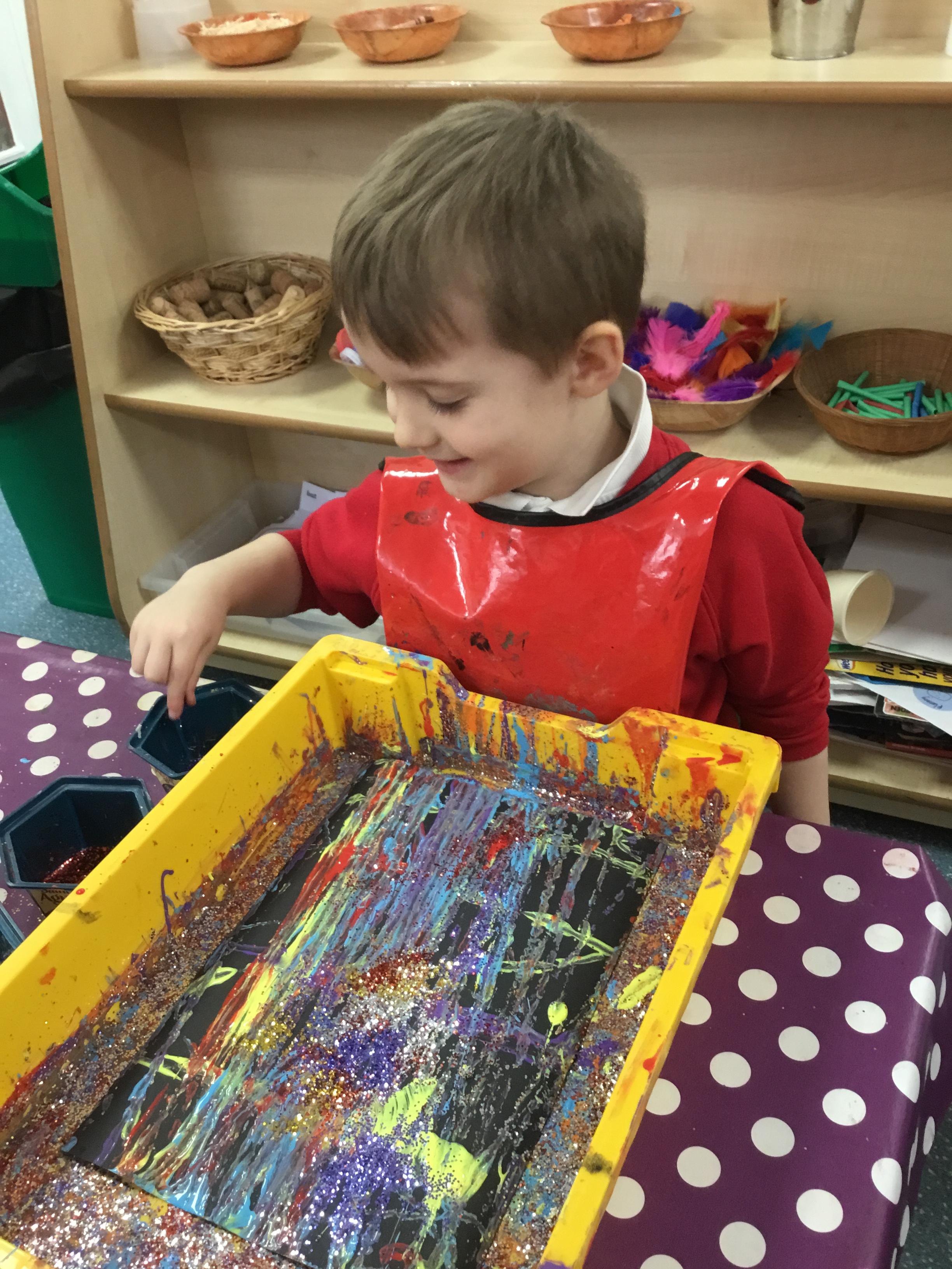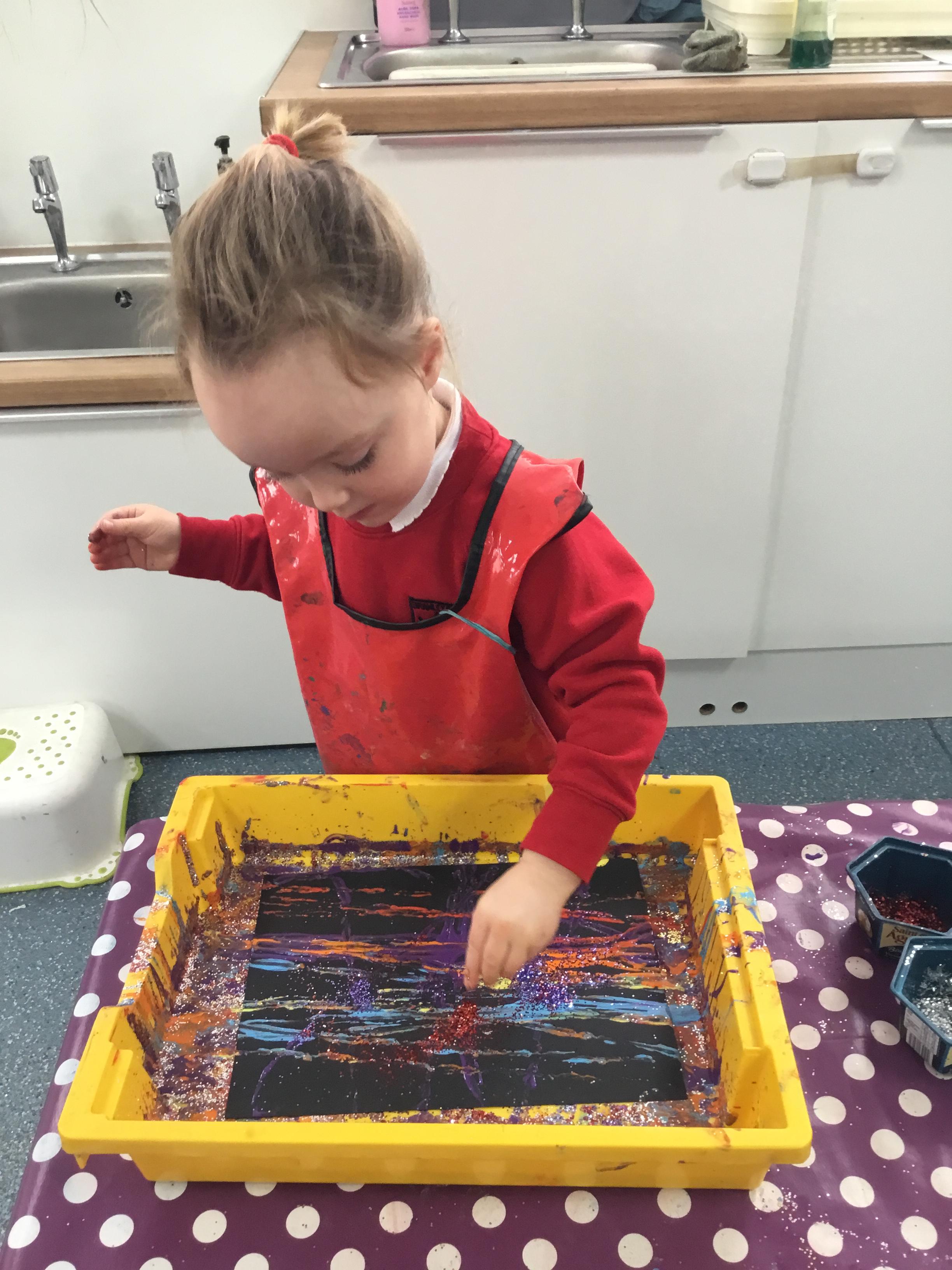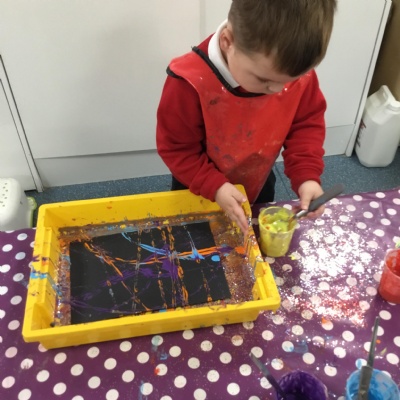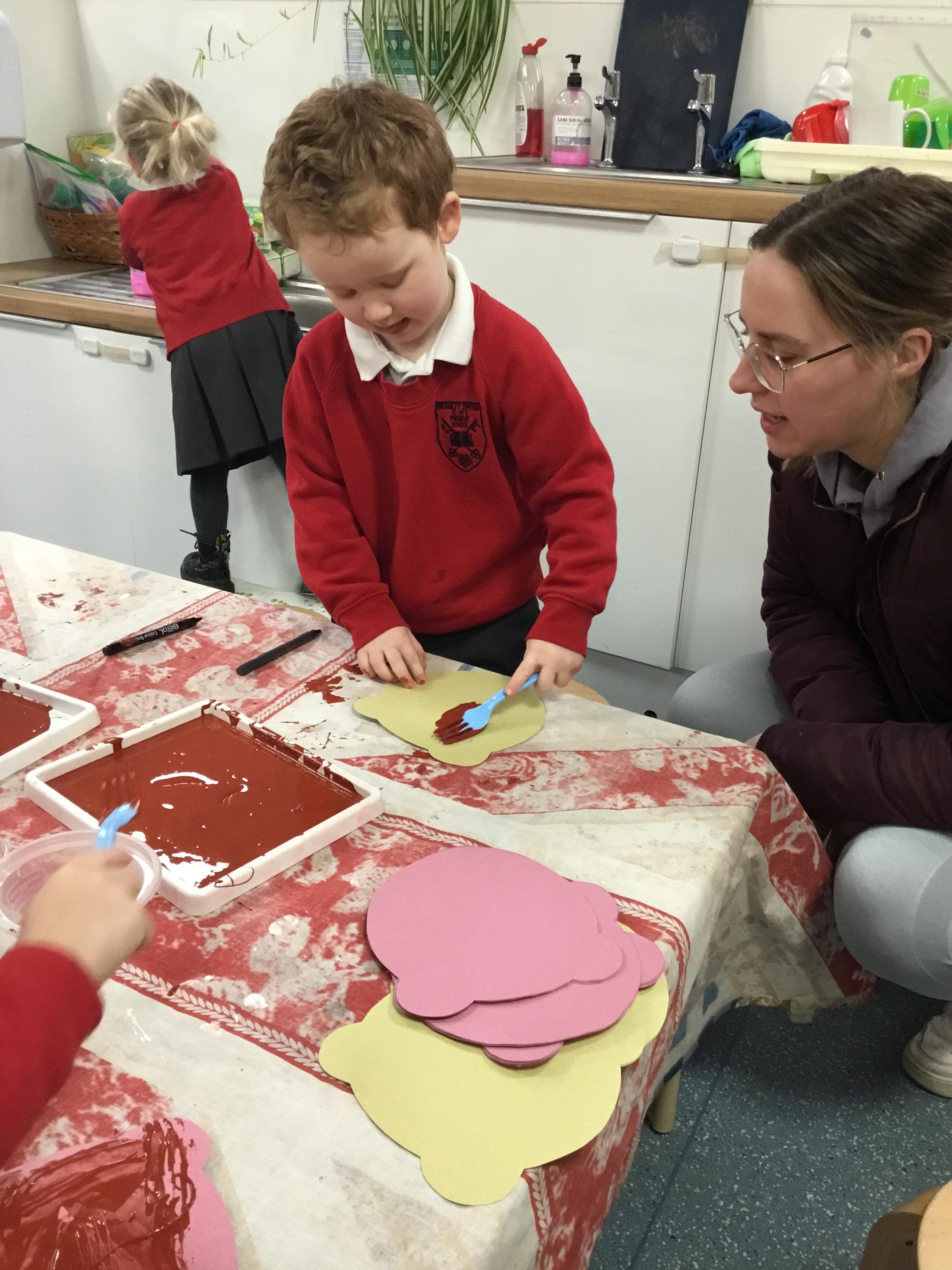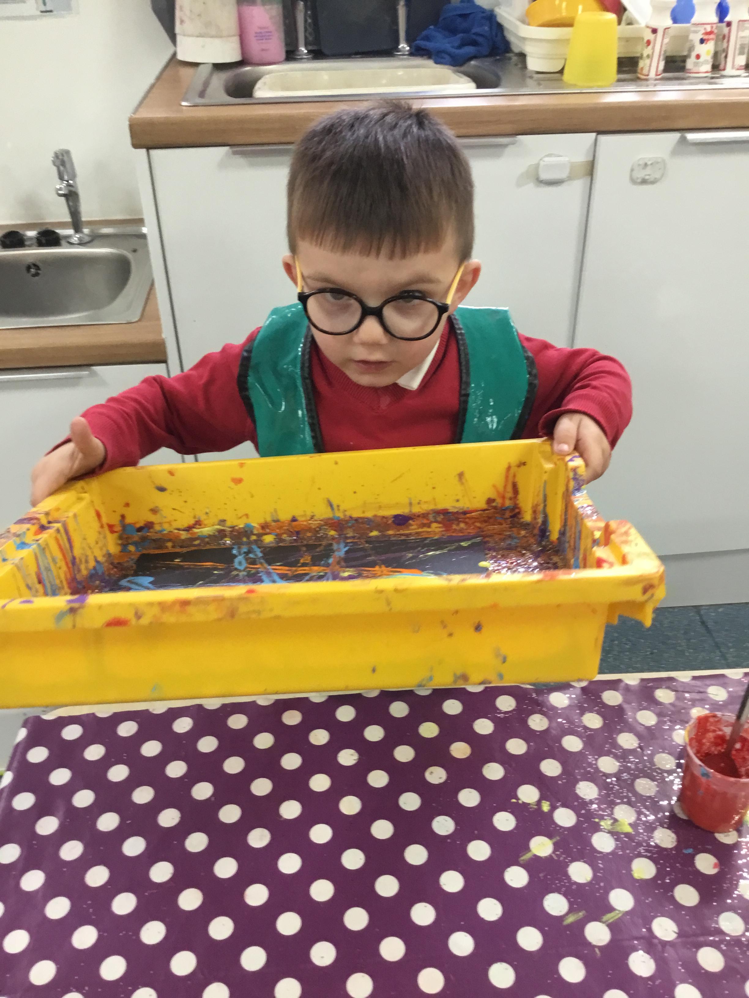 The children have been learning about ‘Harvest’ in Nursery and then they enjoyed printing pictures with some fruits and vegetables.