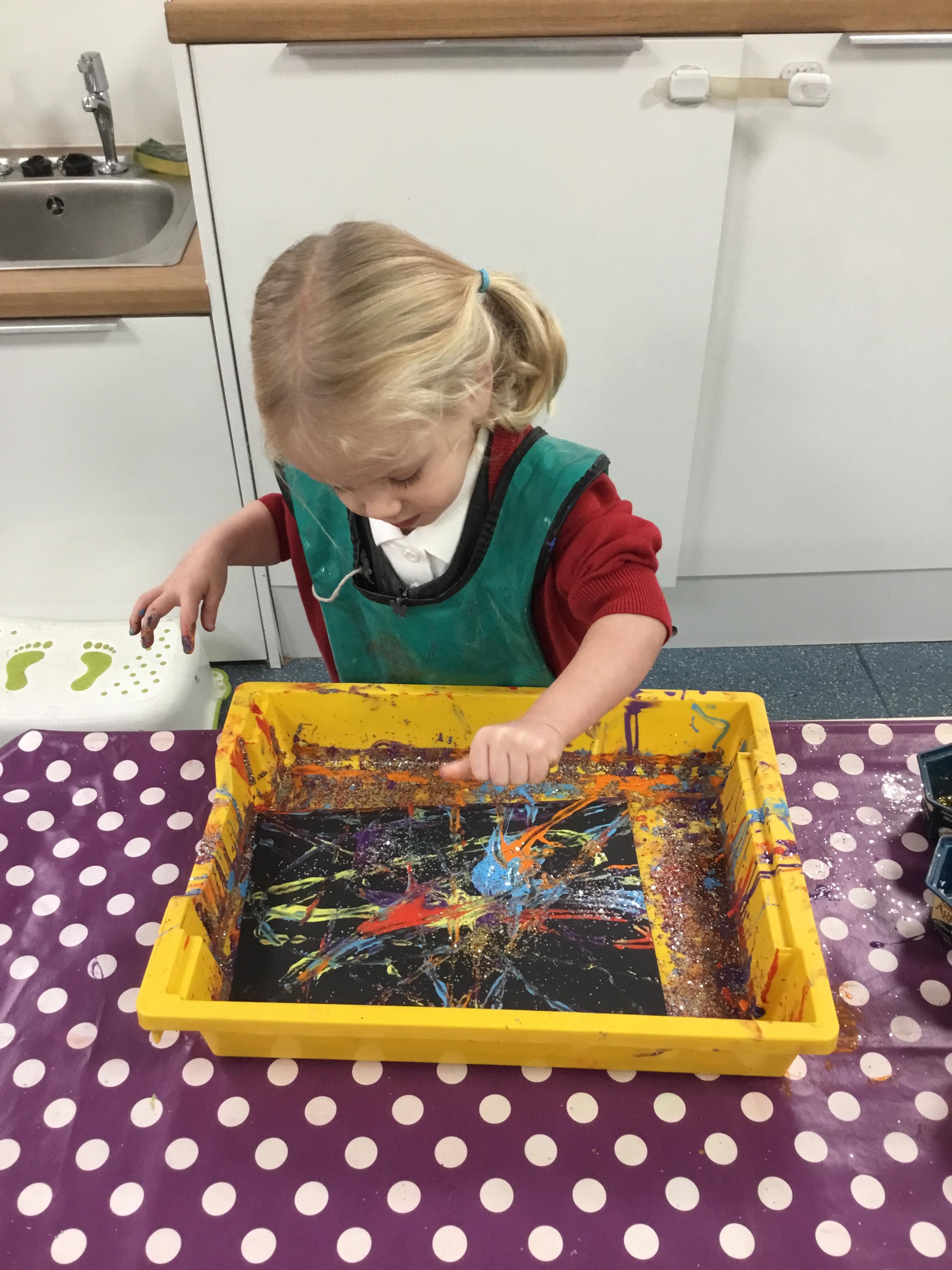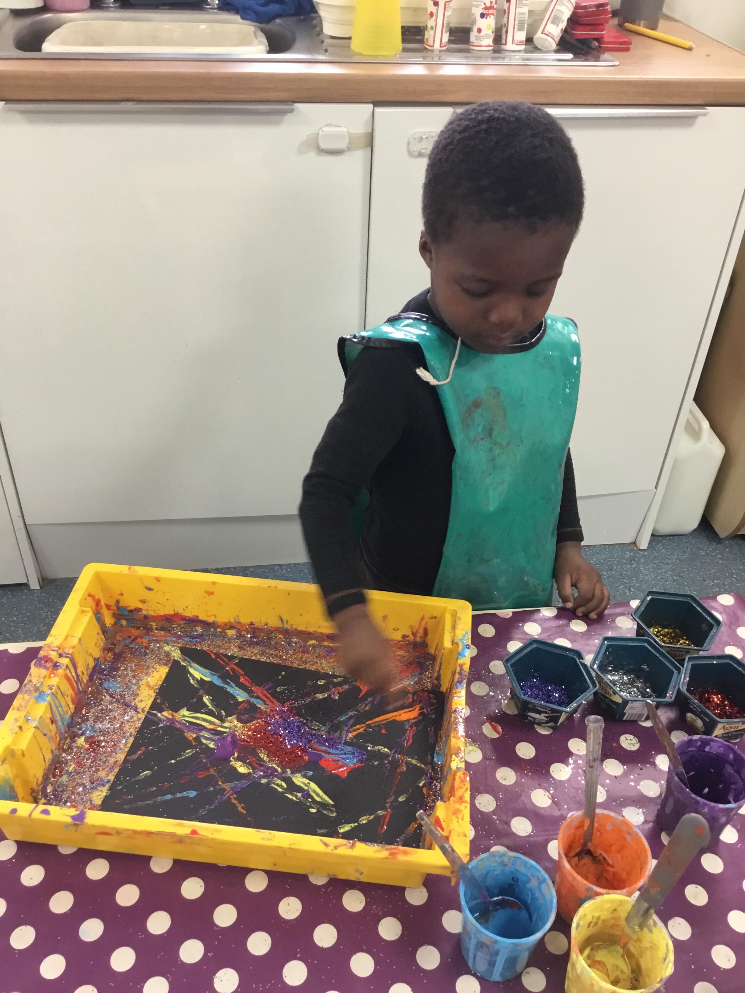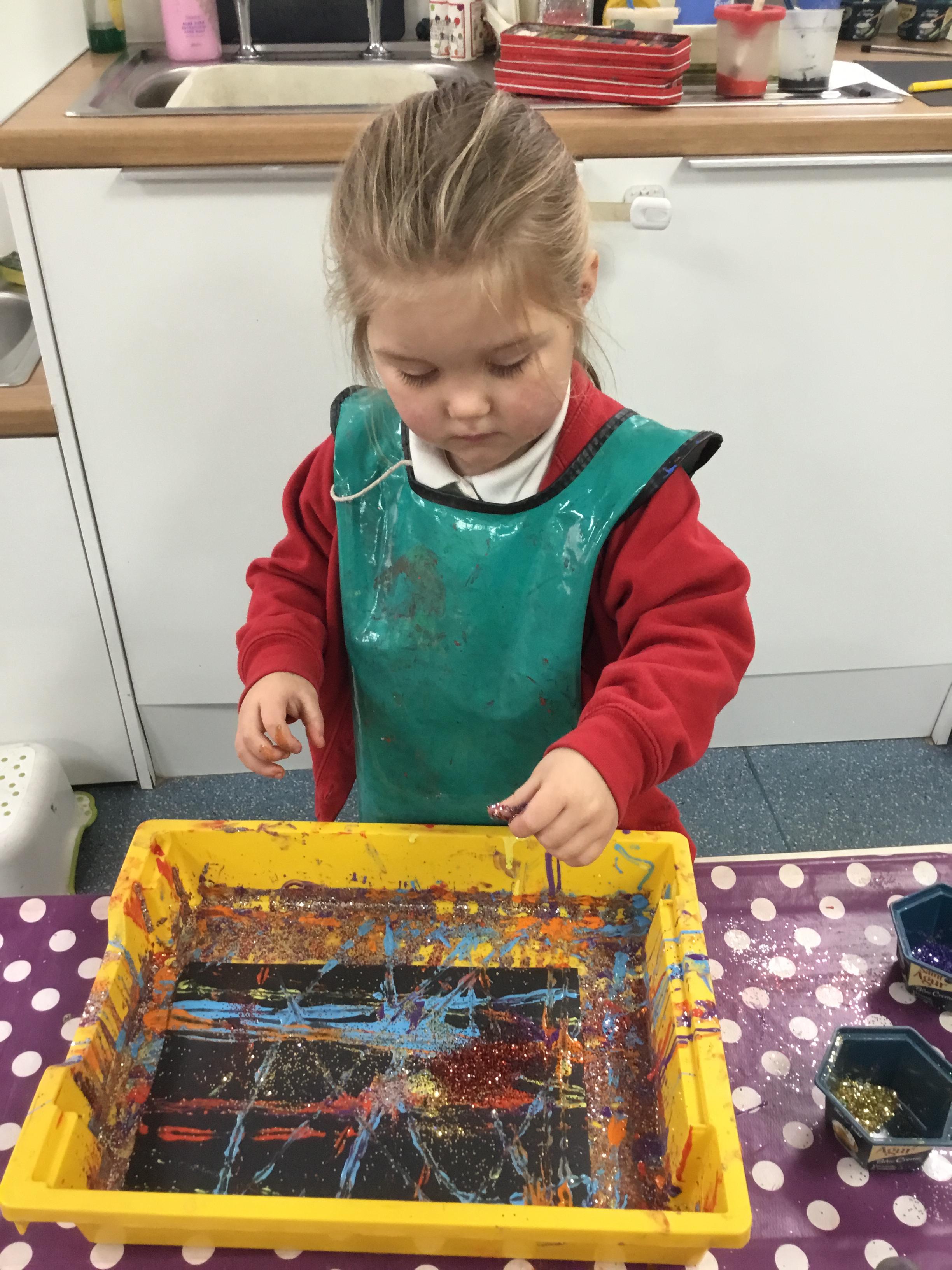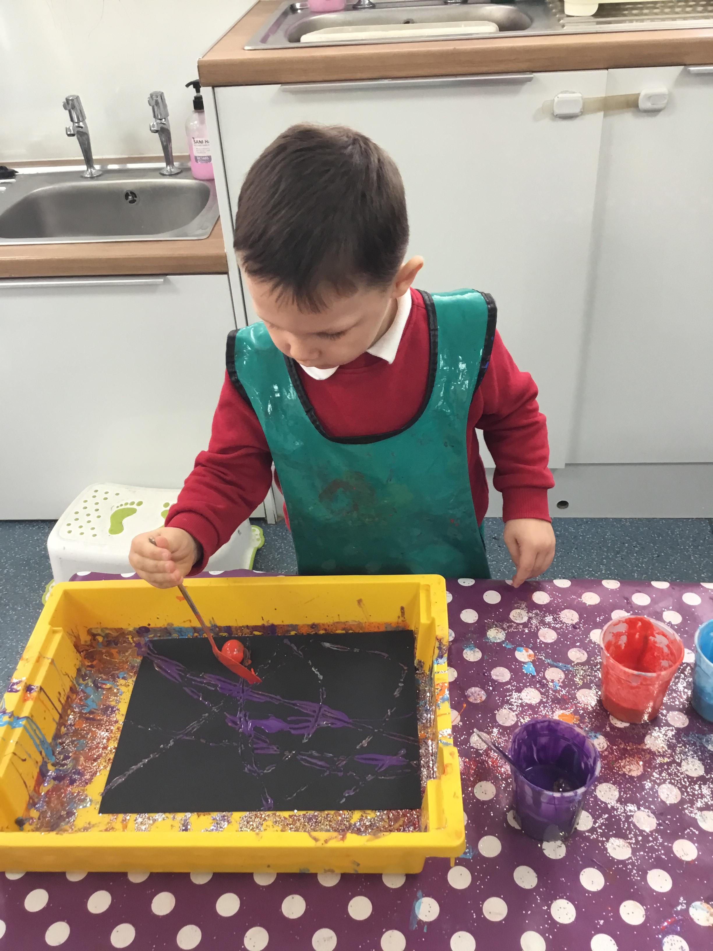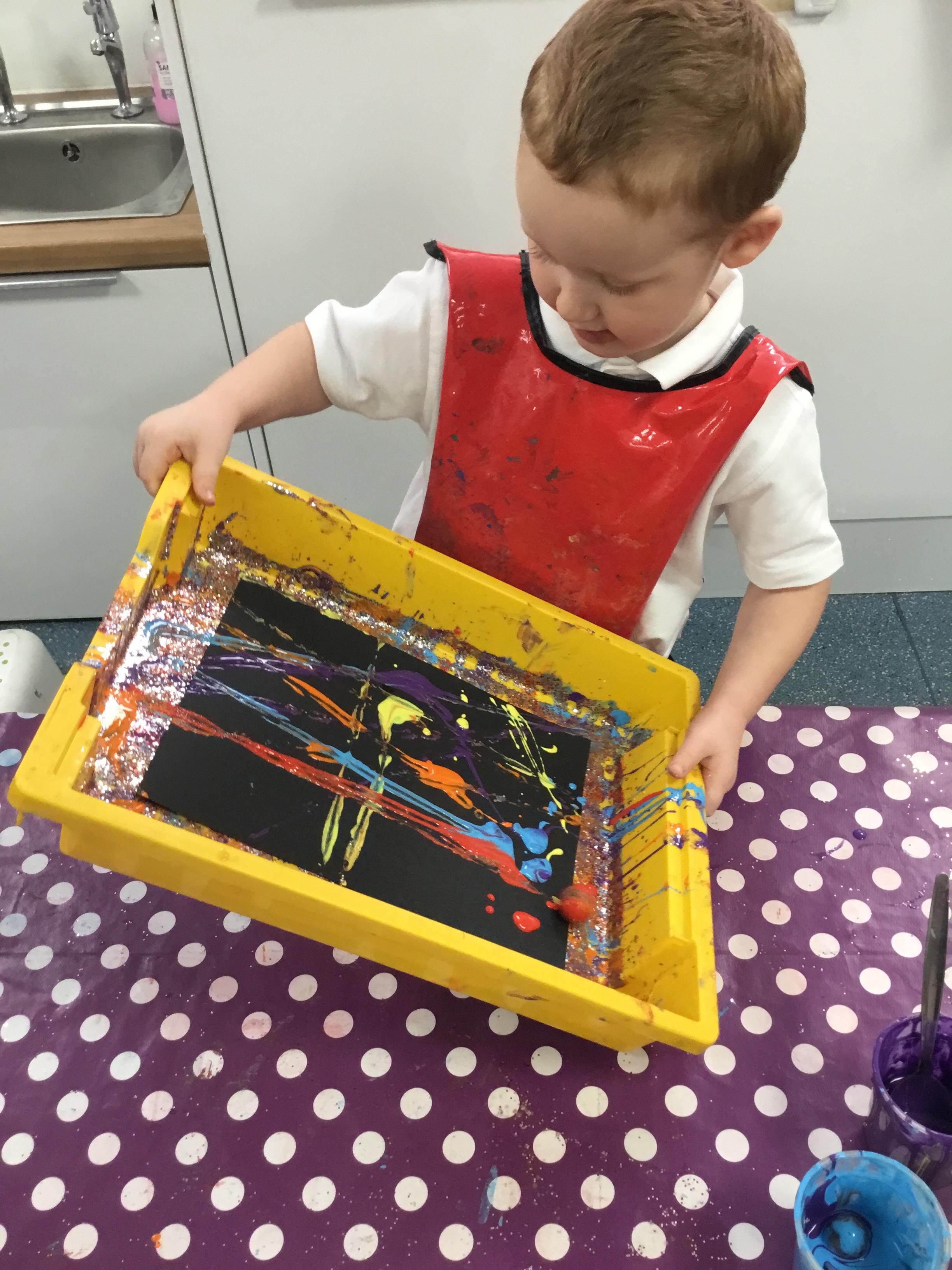 The children have been learning about ‘Harvest’ in Nursery and then they enjoyed printing pictures with some fruits and vegetables.