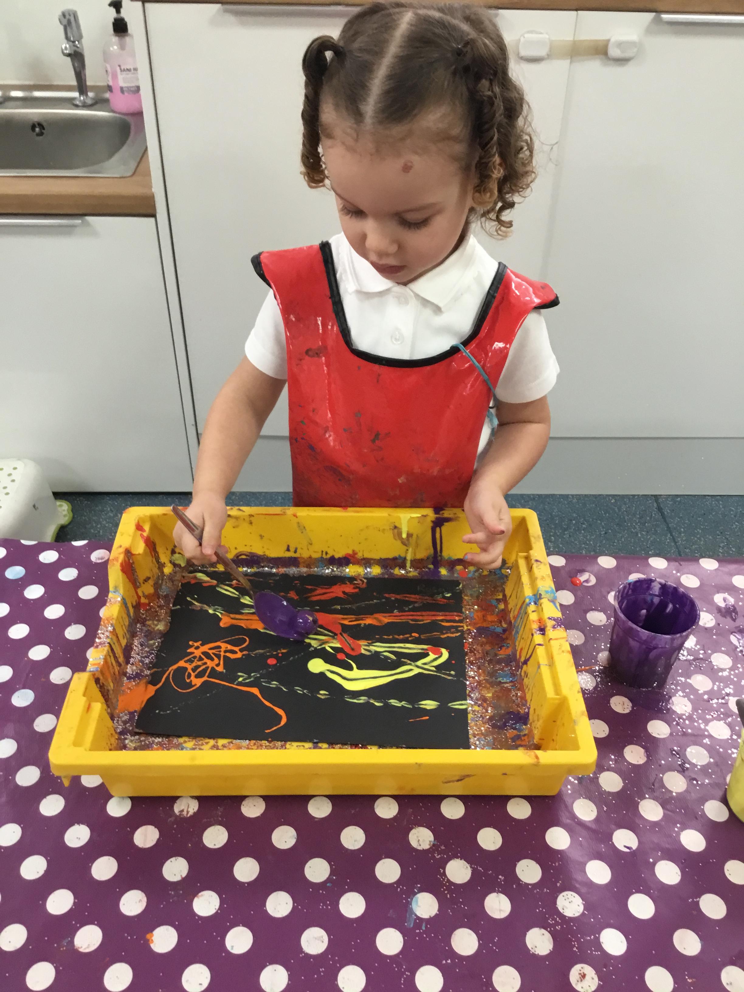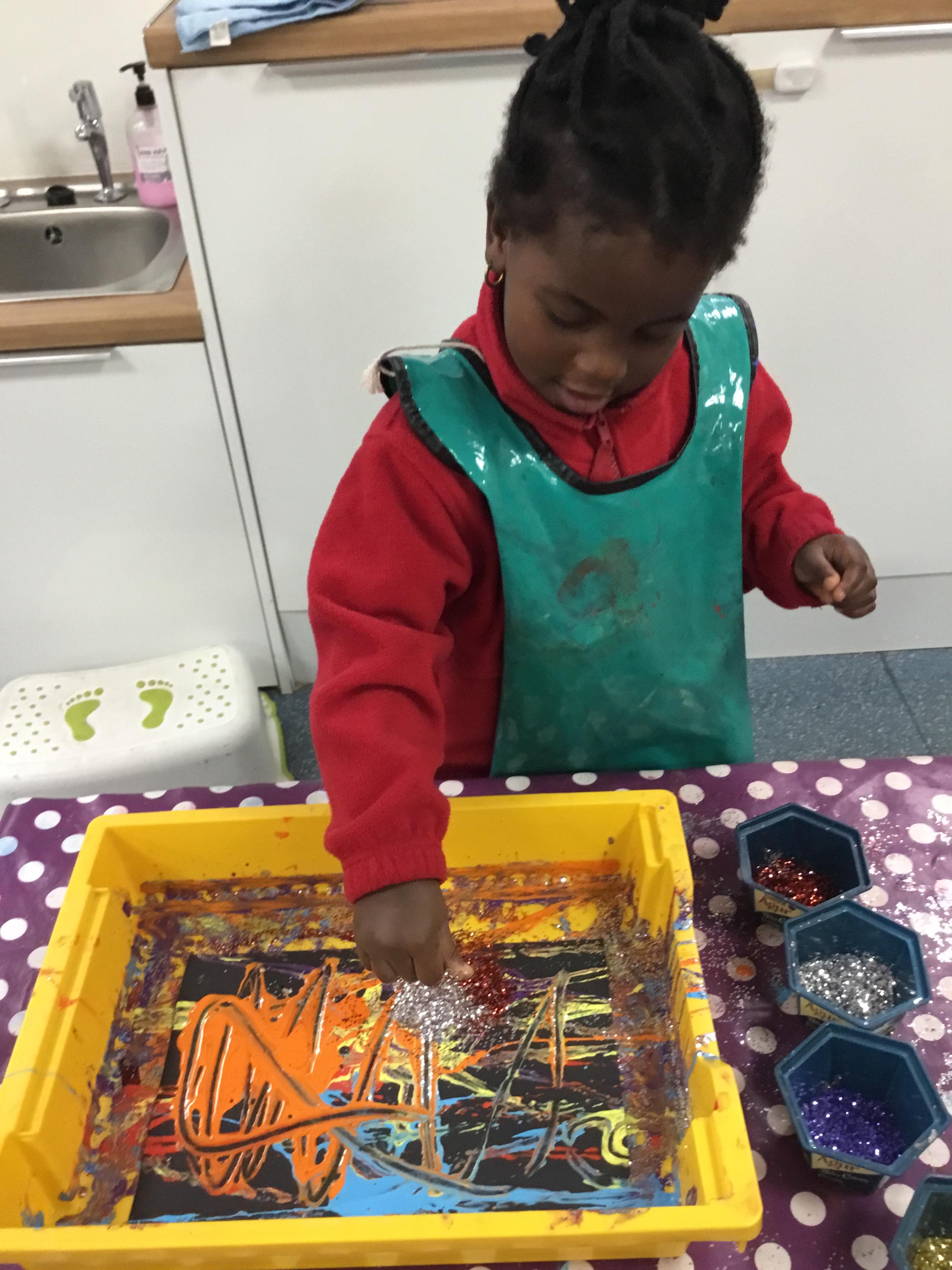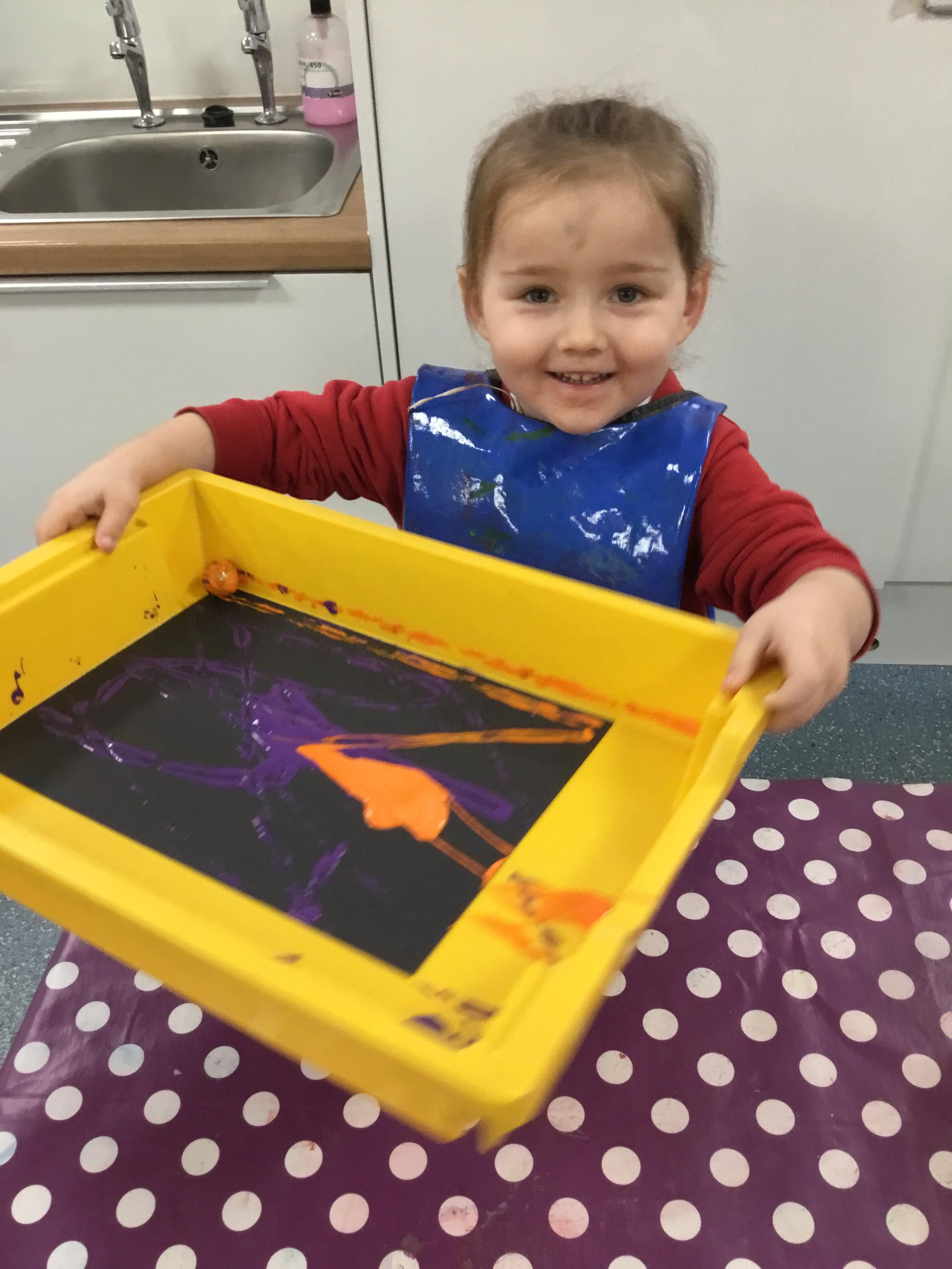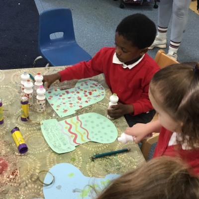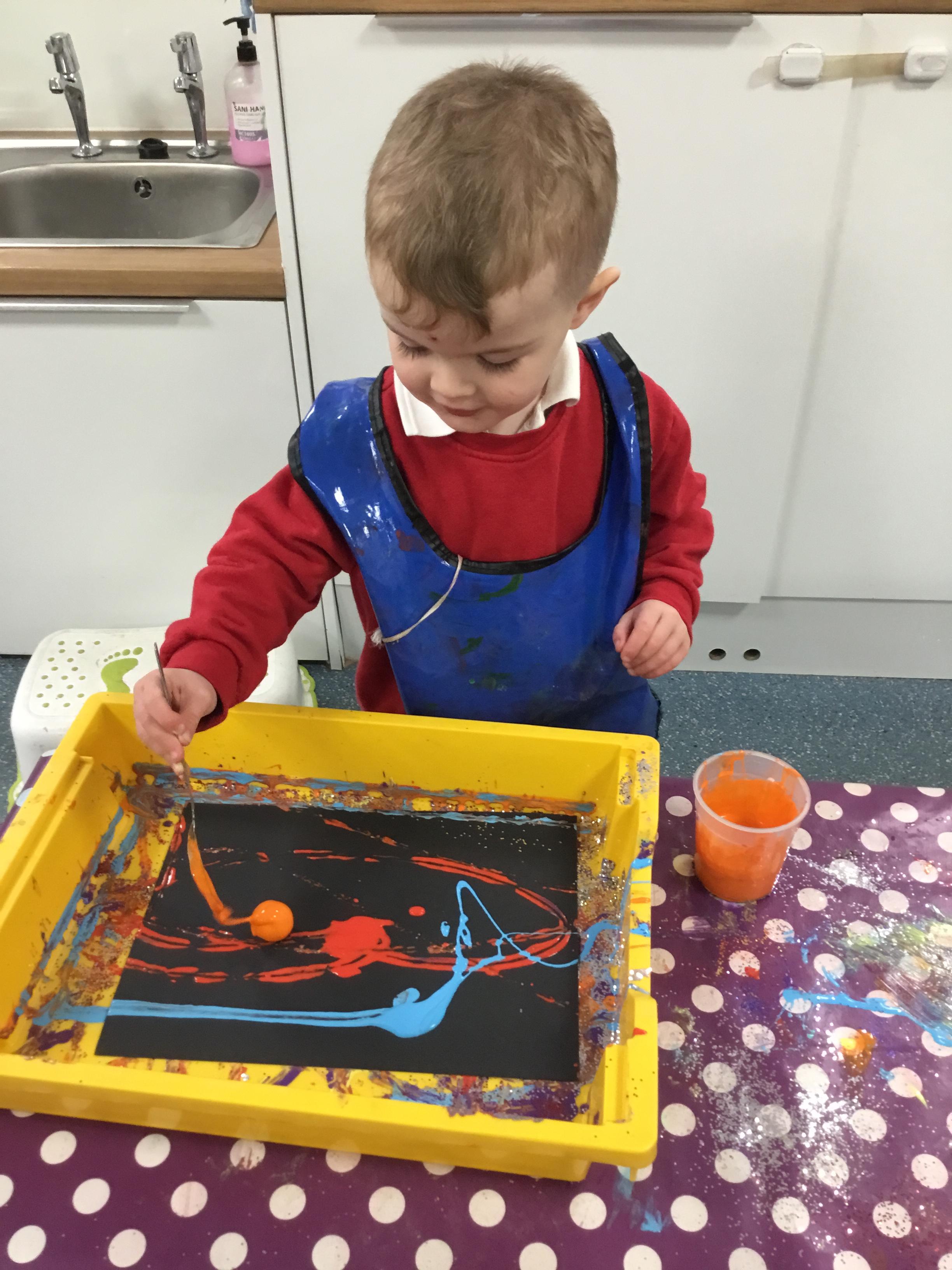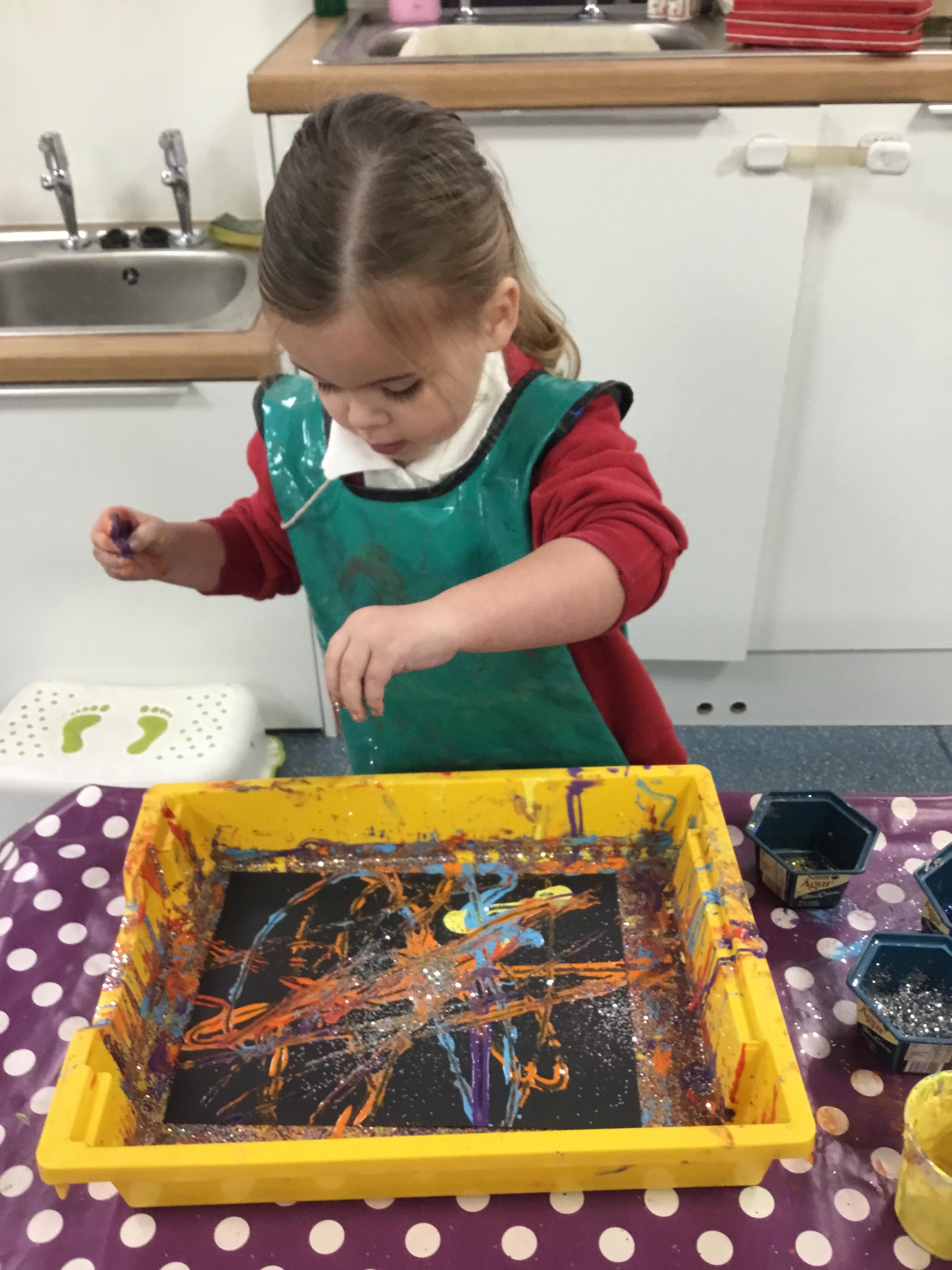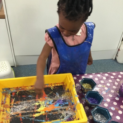The children have been learning about ‘Harvest’ in Nursery and then they enjoyed printing pictures with some fruits and vegetables.