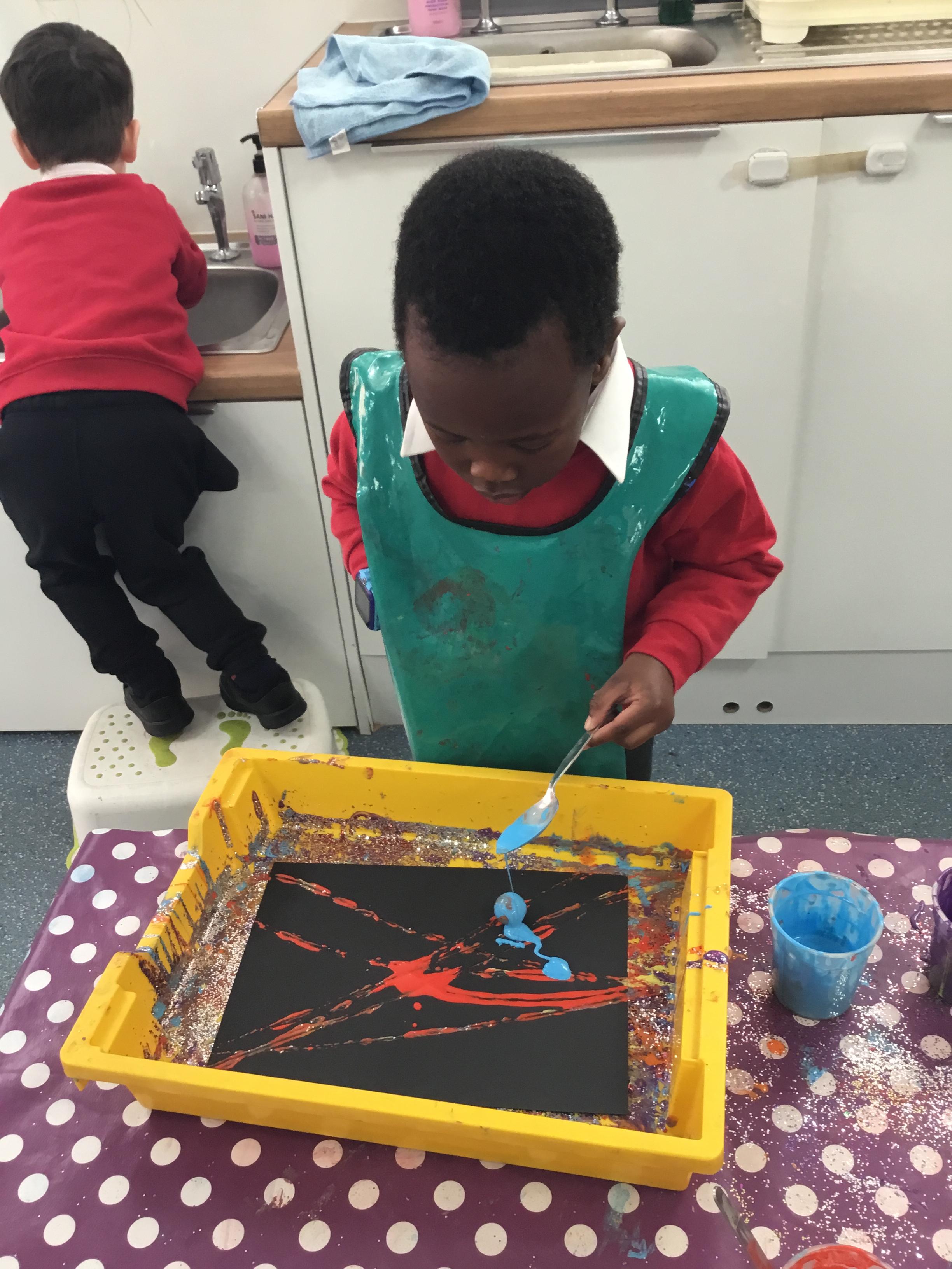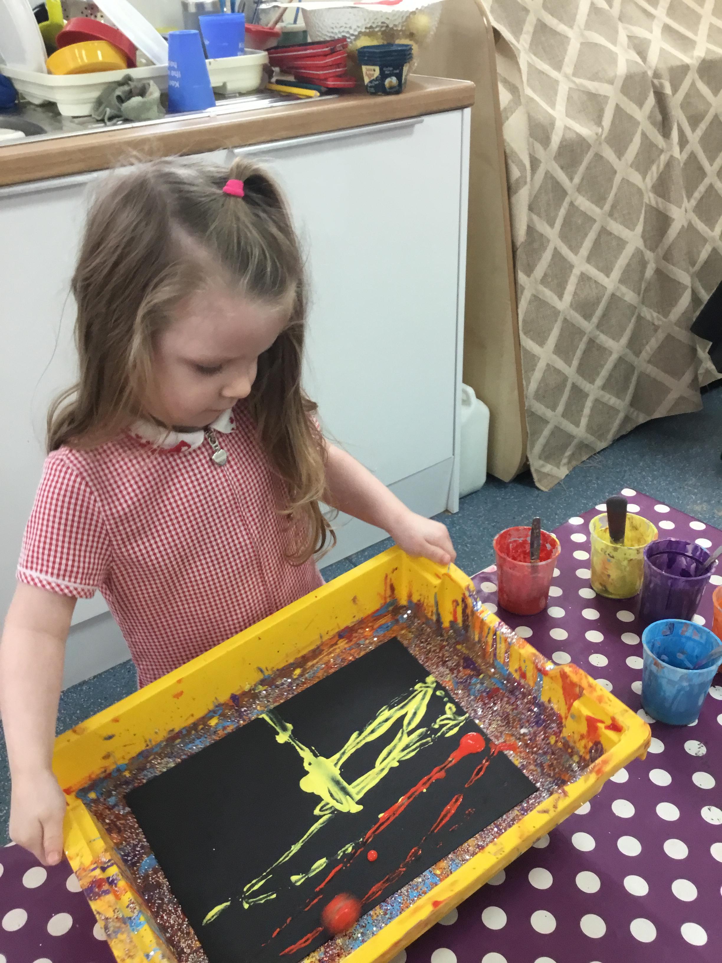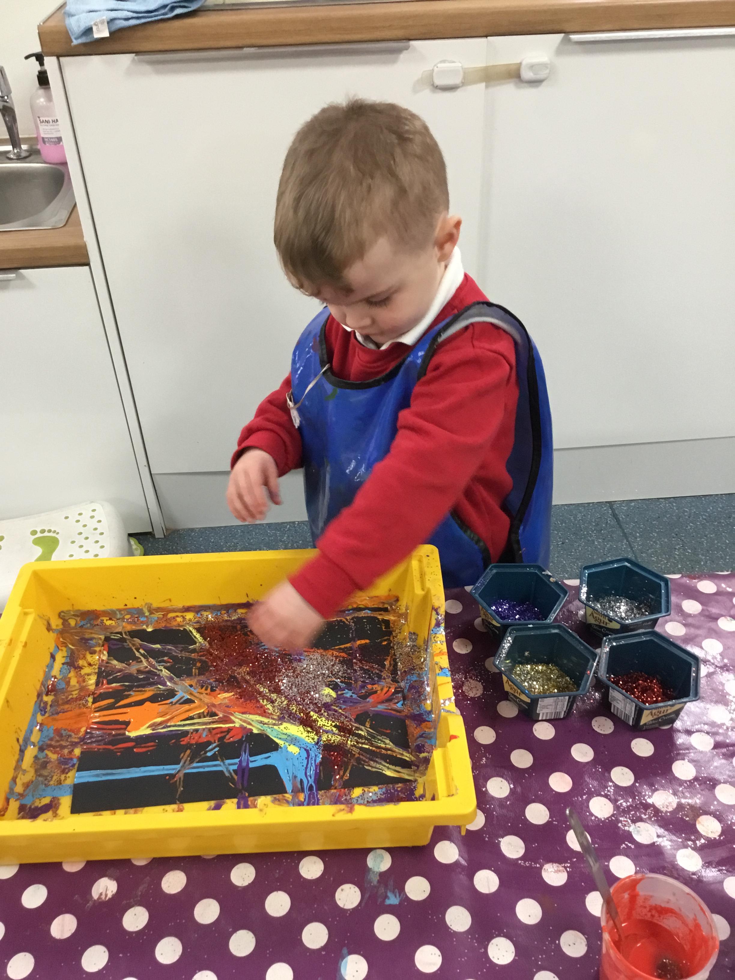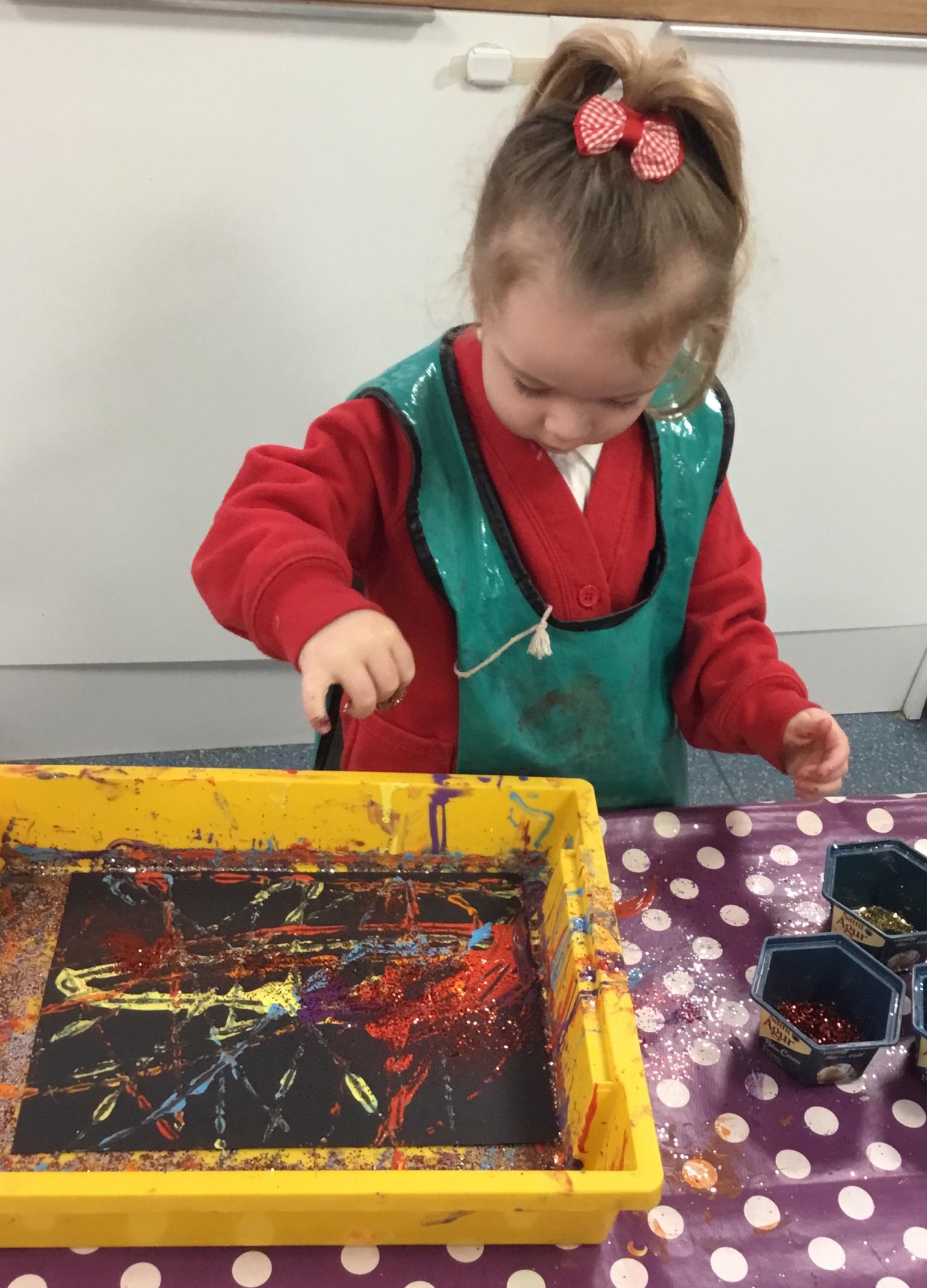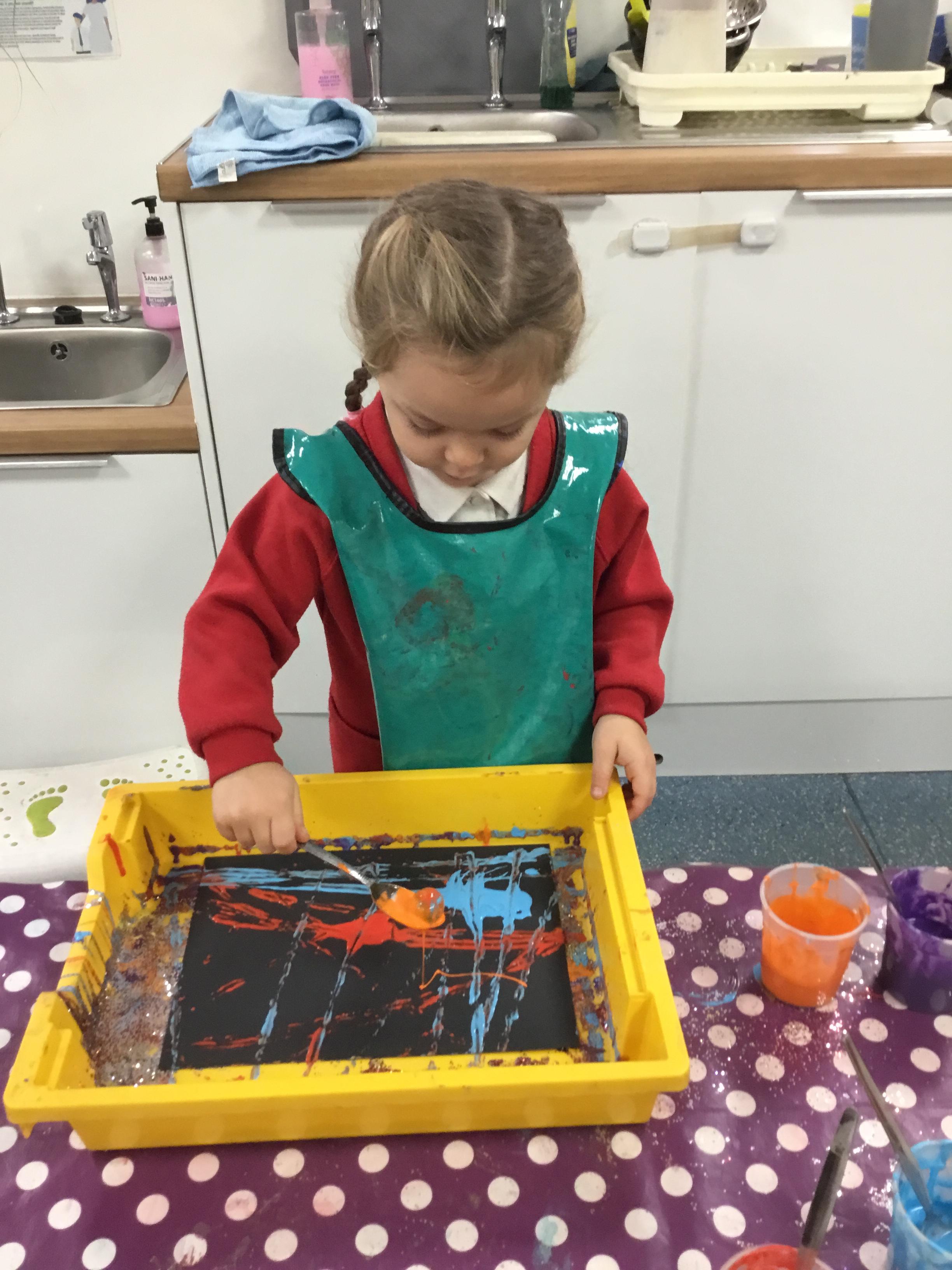 The children have been learning about ‘Harvest’ in Nursery and then they enjoyed printing pictures with some fruits and vegetables.