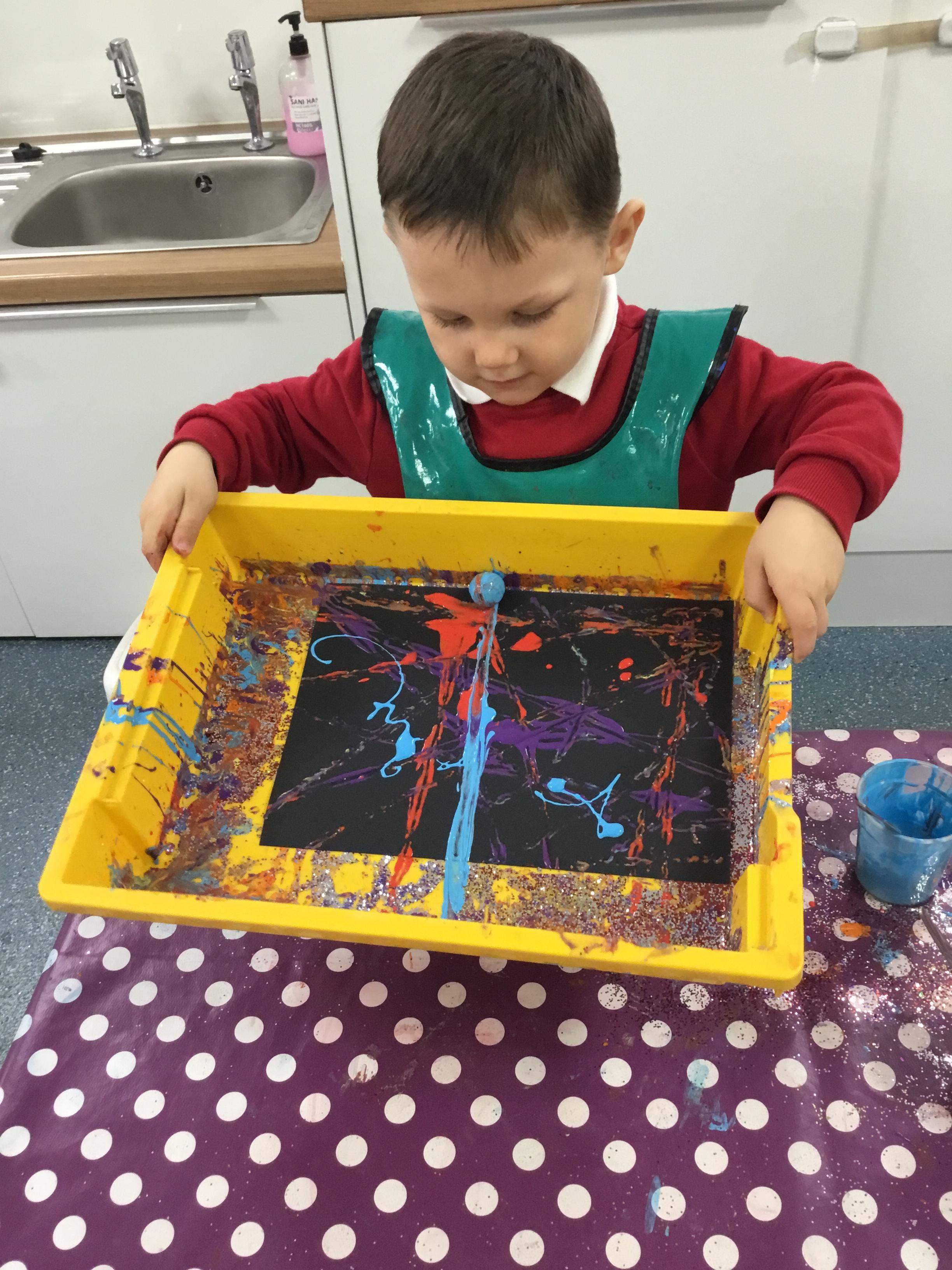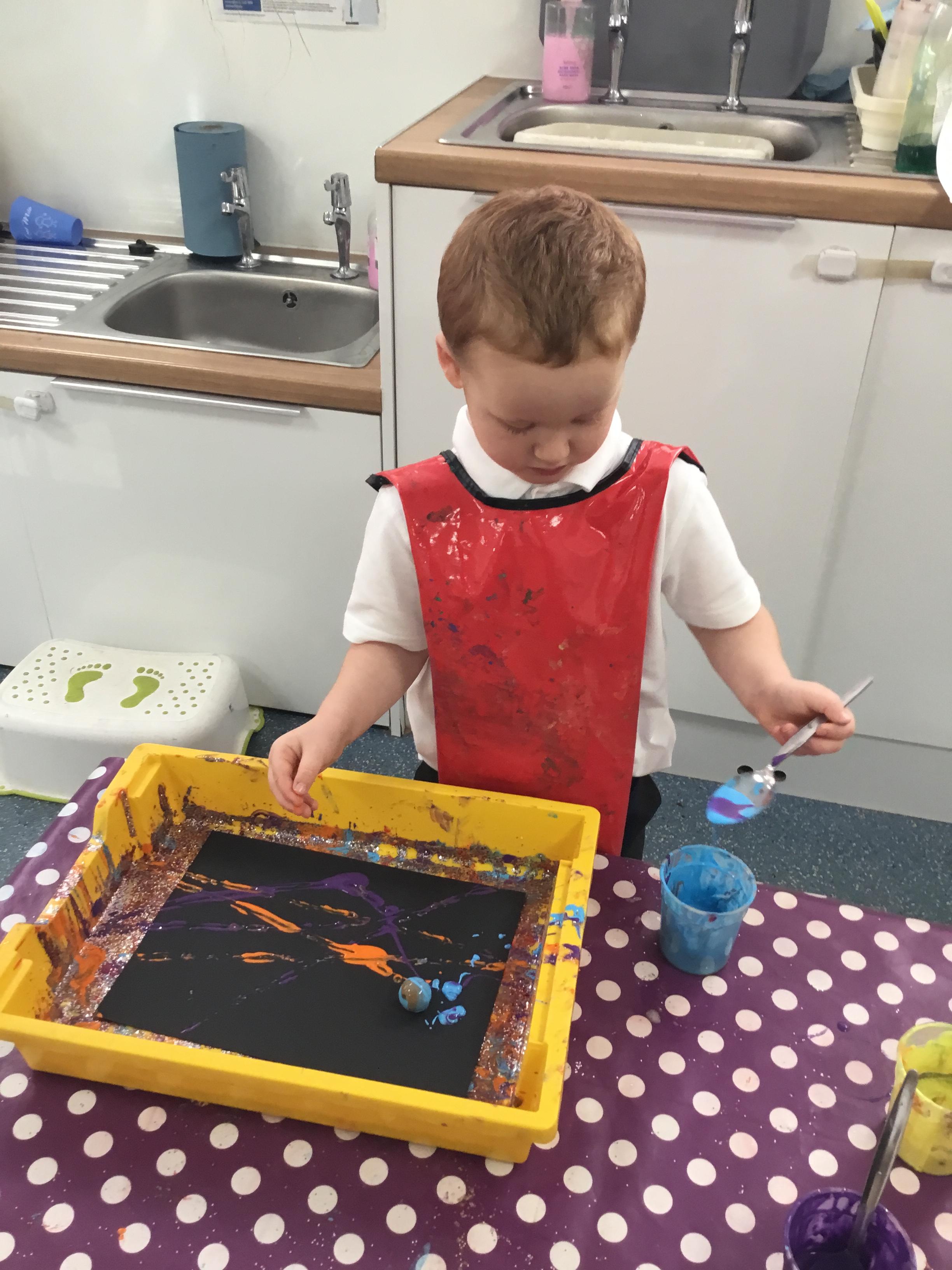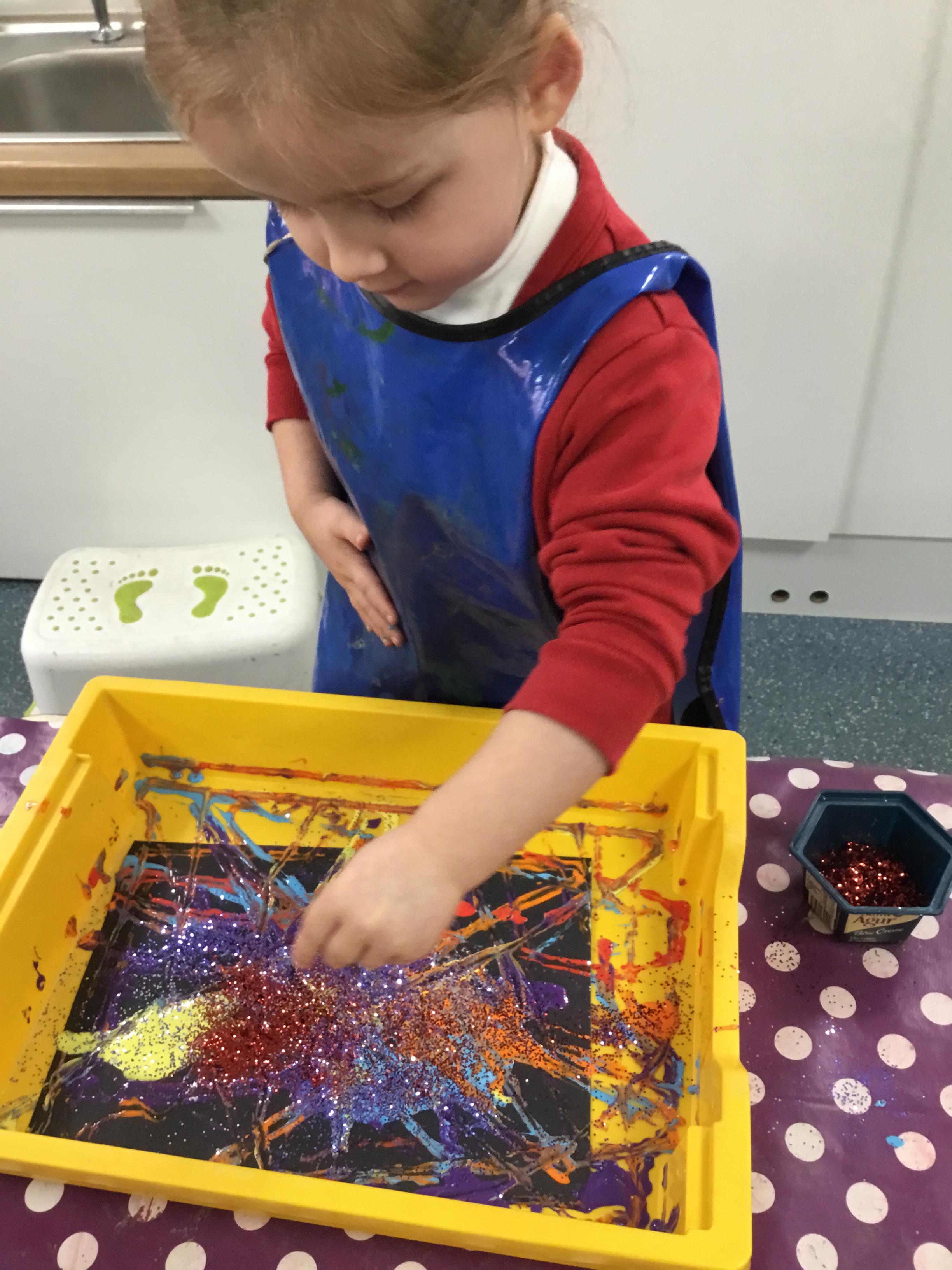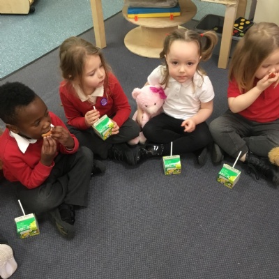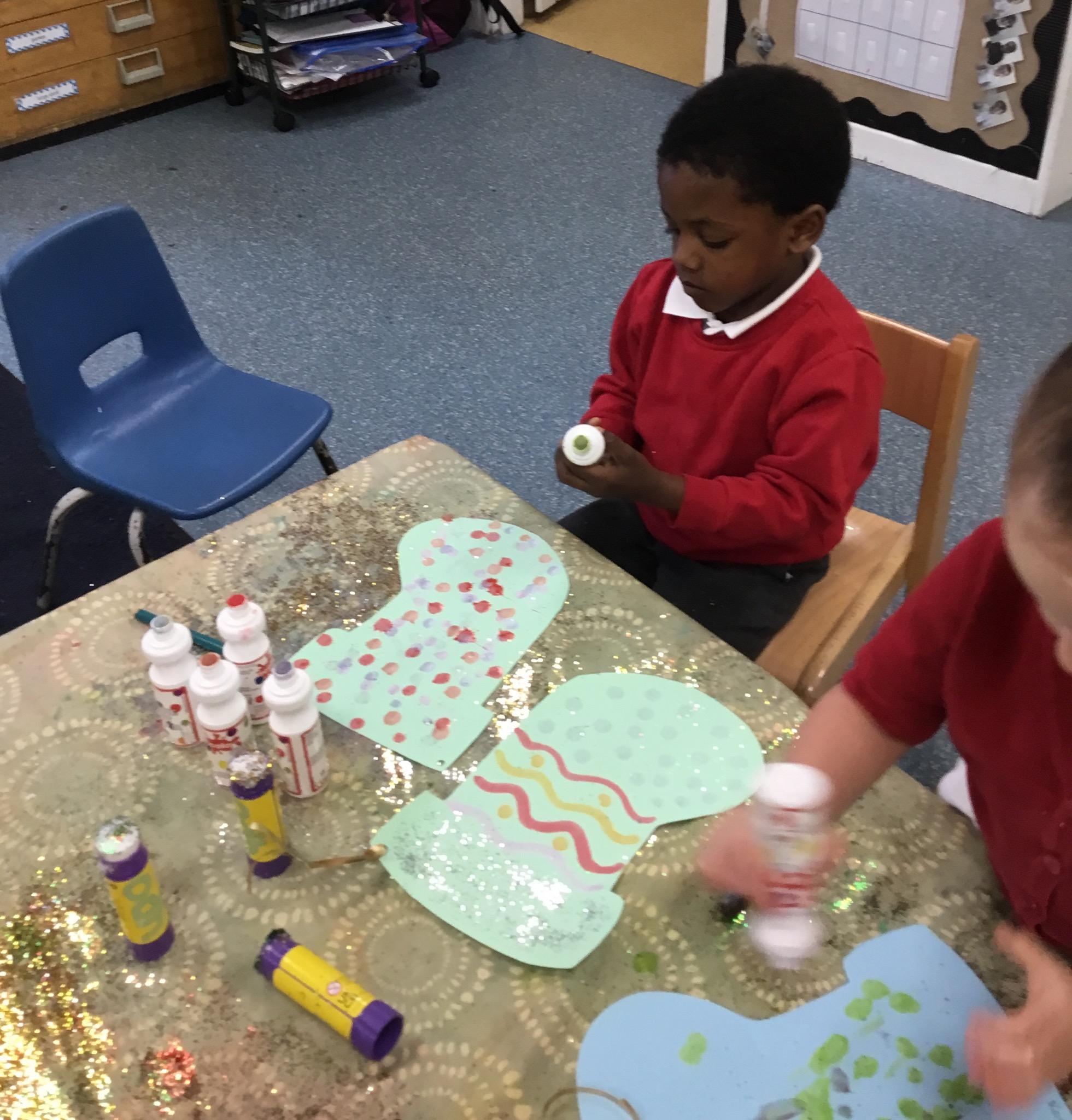 The children have been learning about ‘Harvest’ in Nursery and then they enjoyed printing pictures with some fruits and vegetables.