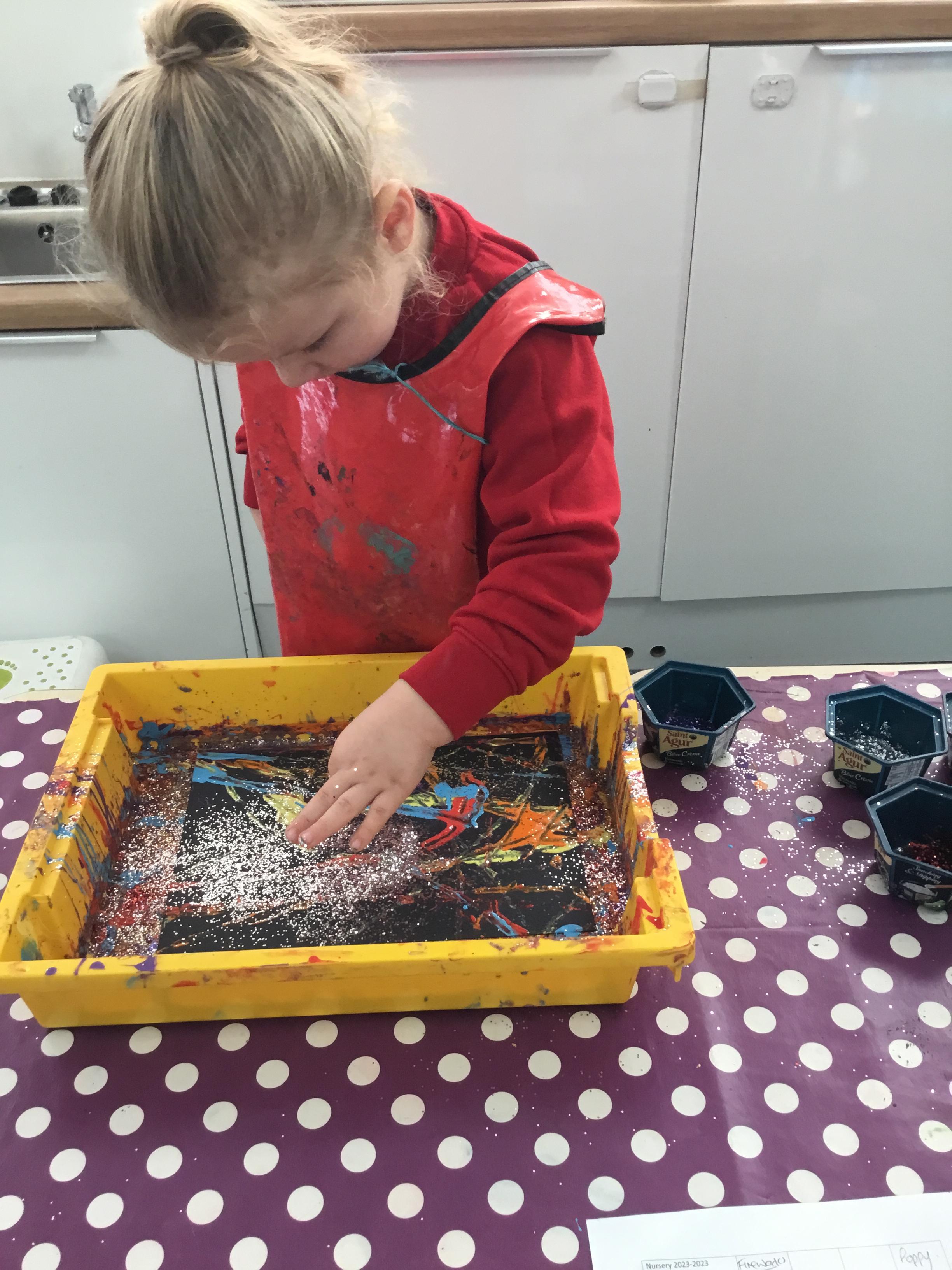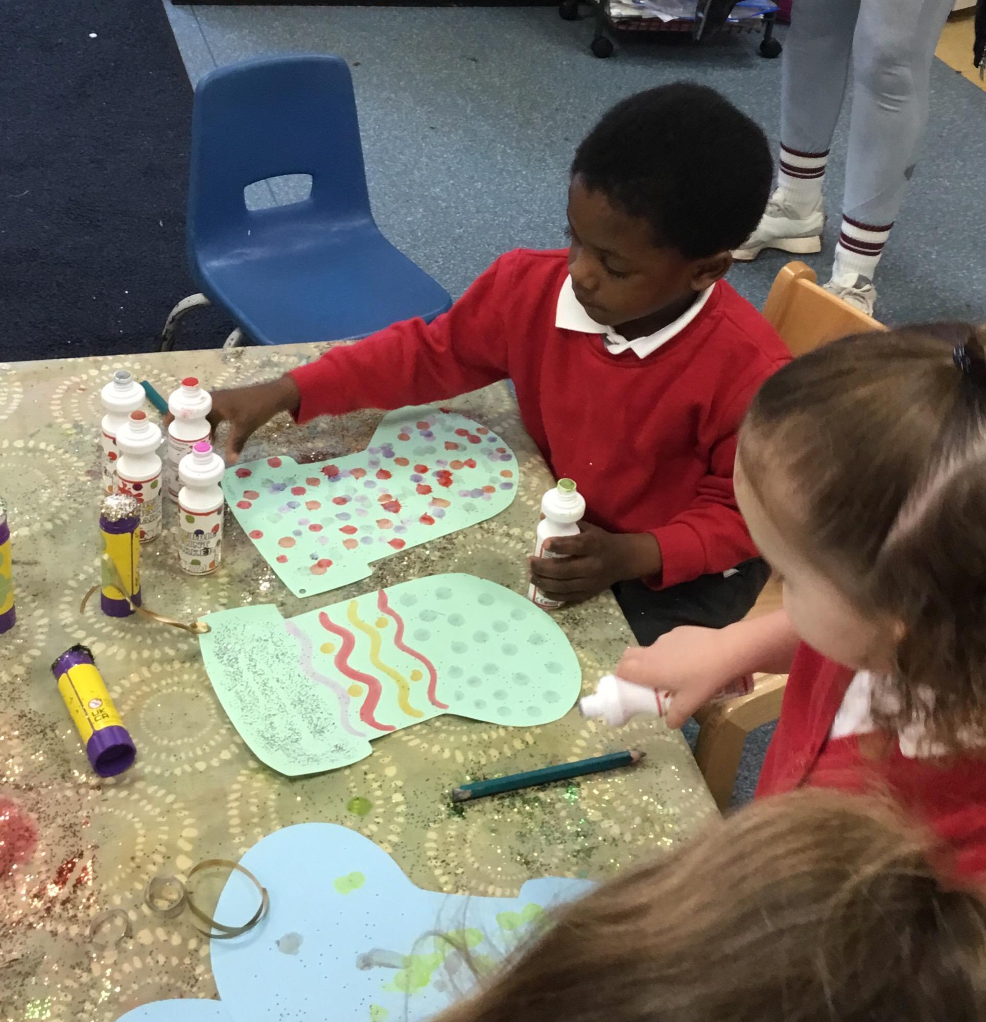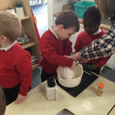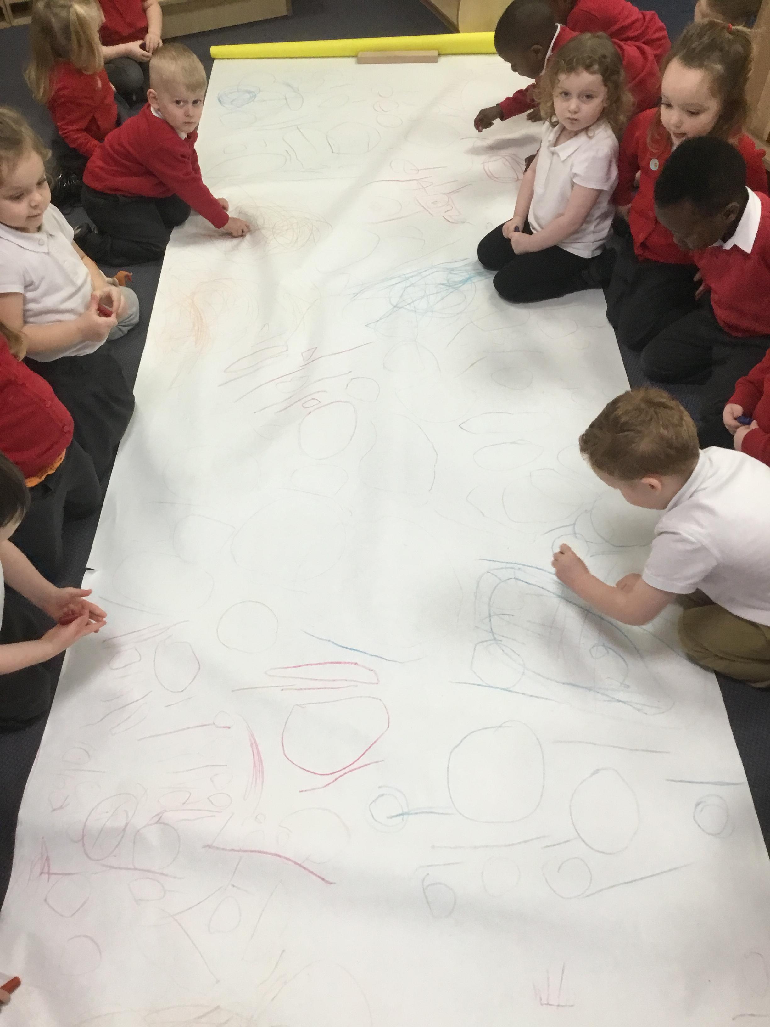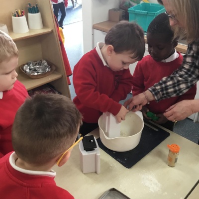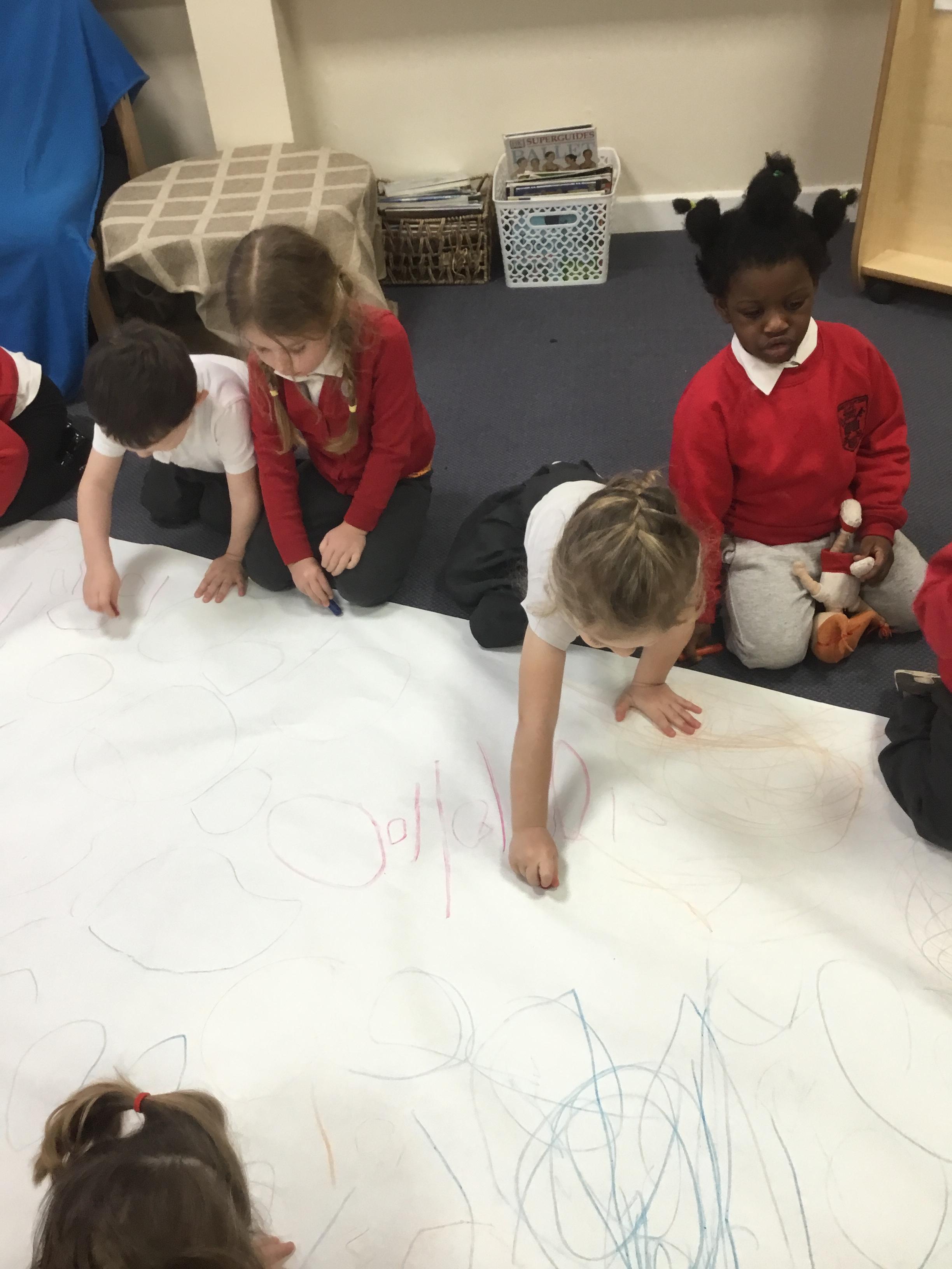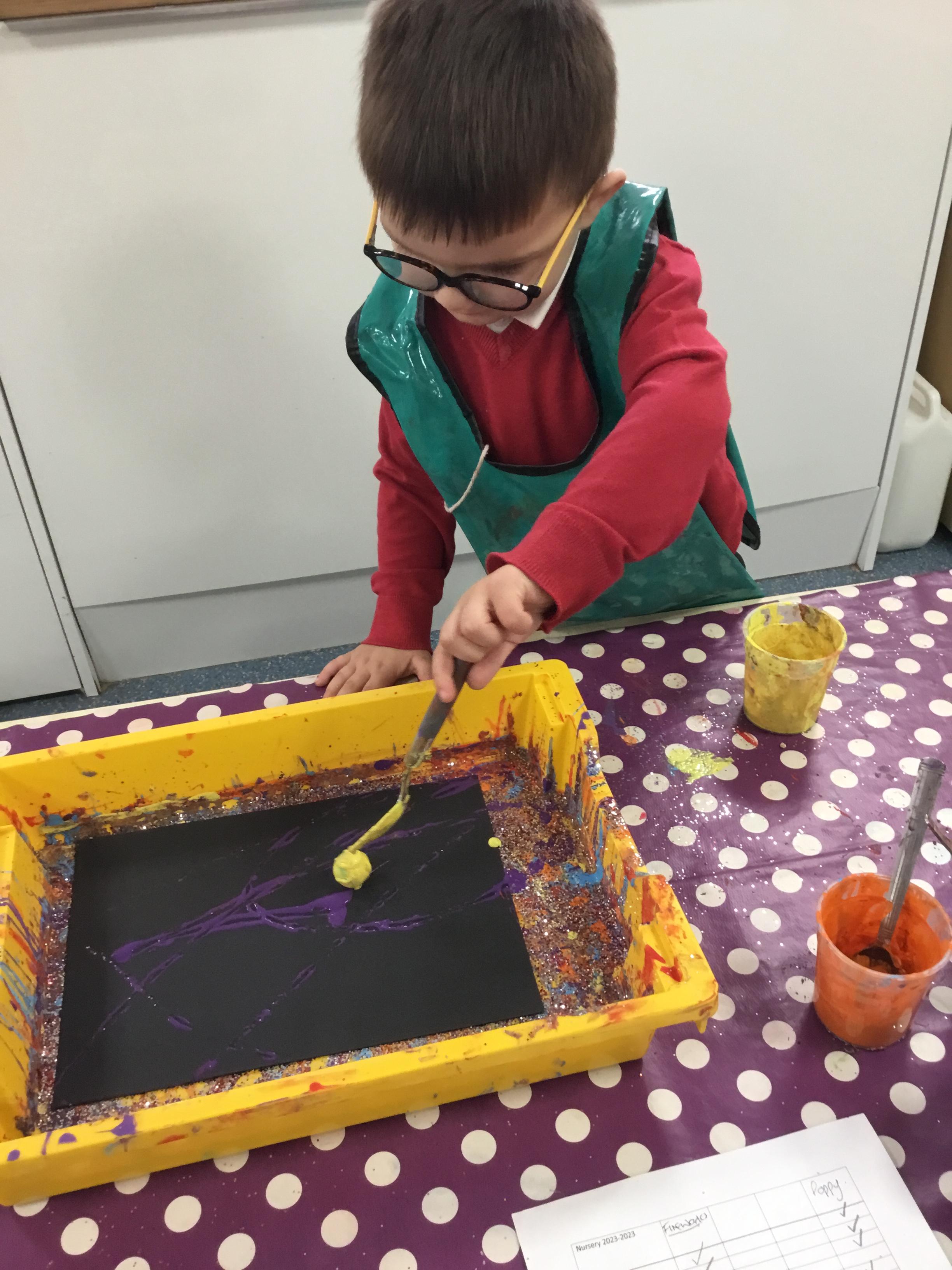 The children have been learning about ‘Harvest’ in Nursery and then they enjoyed printing pictures with some fruits and vegetables.