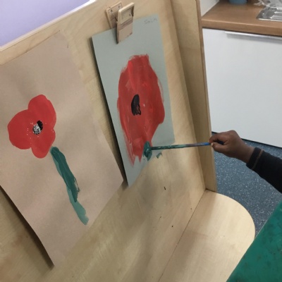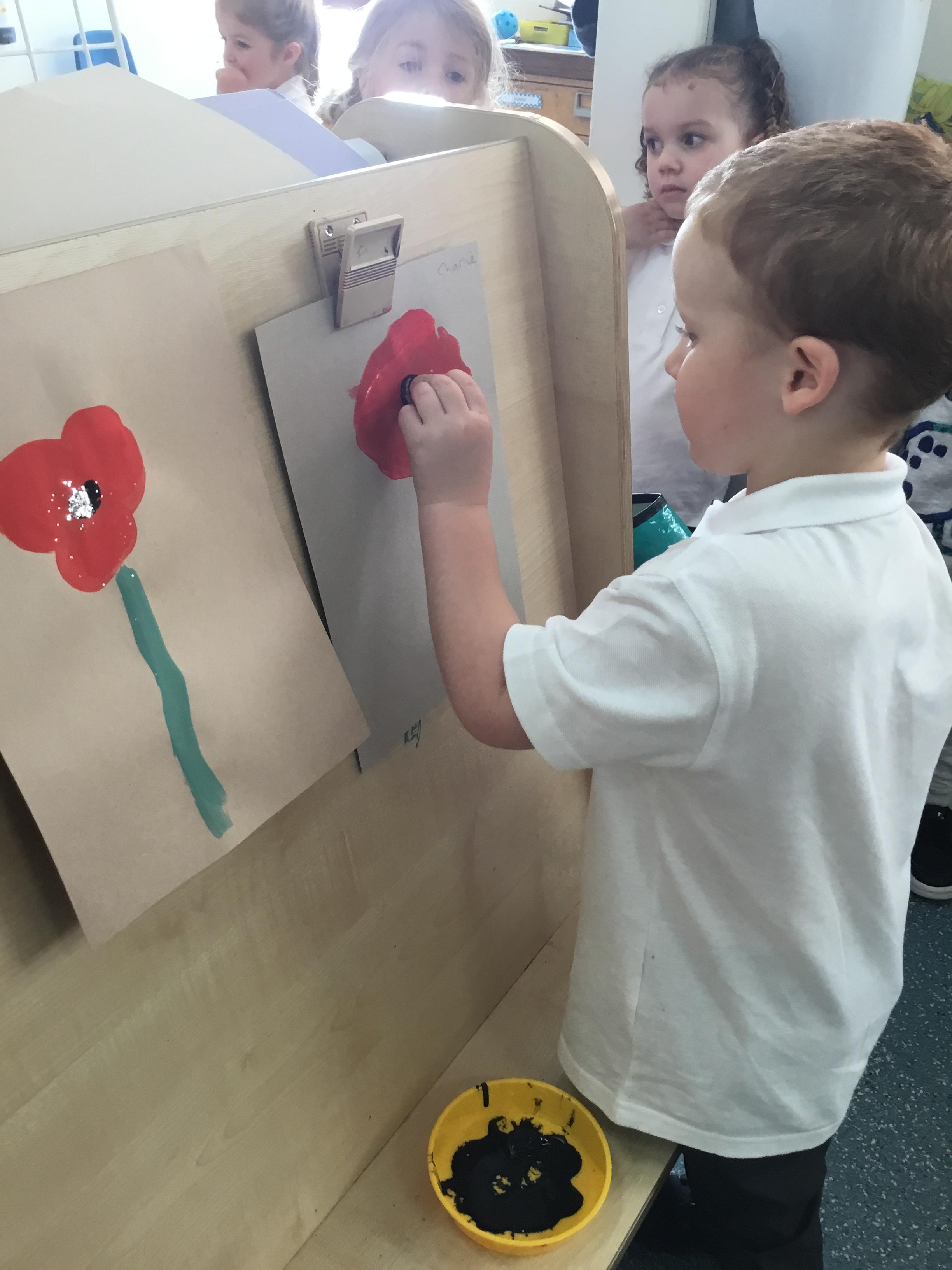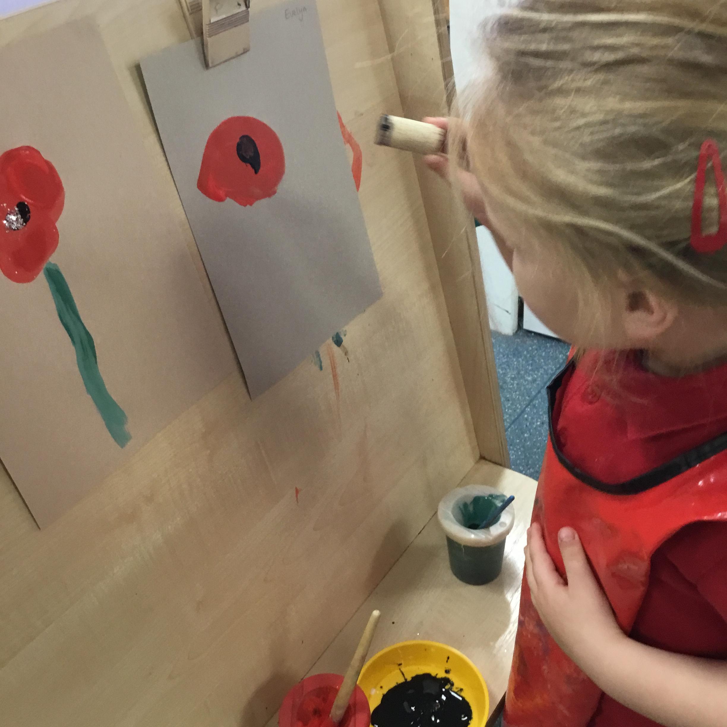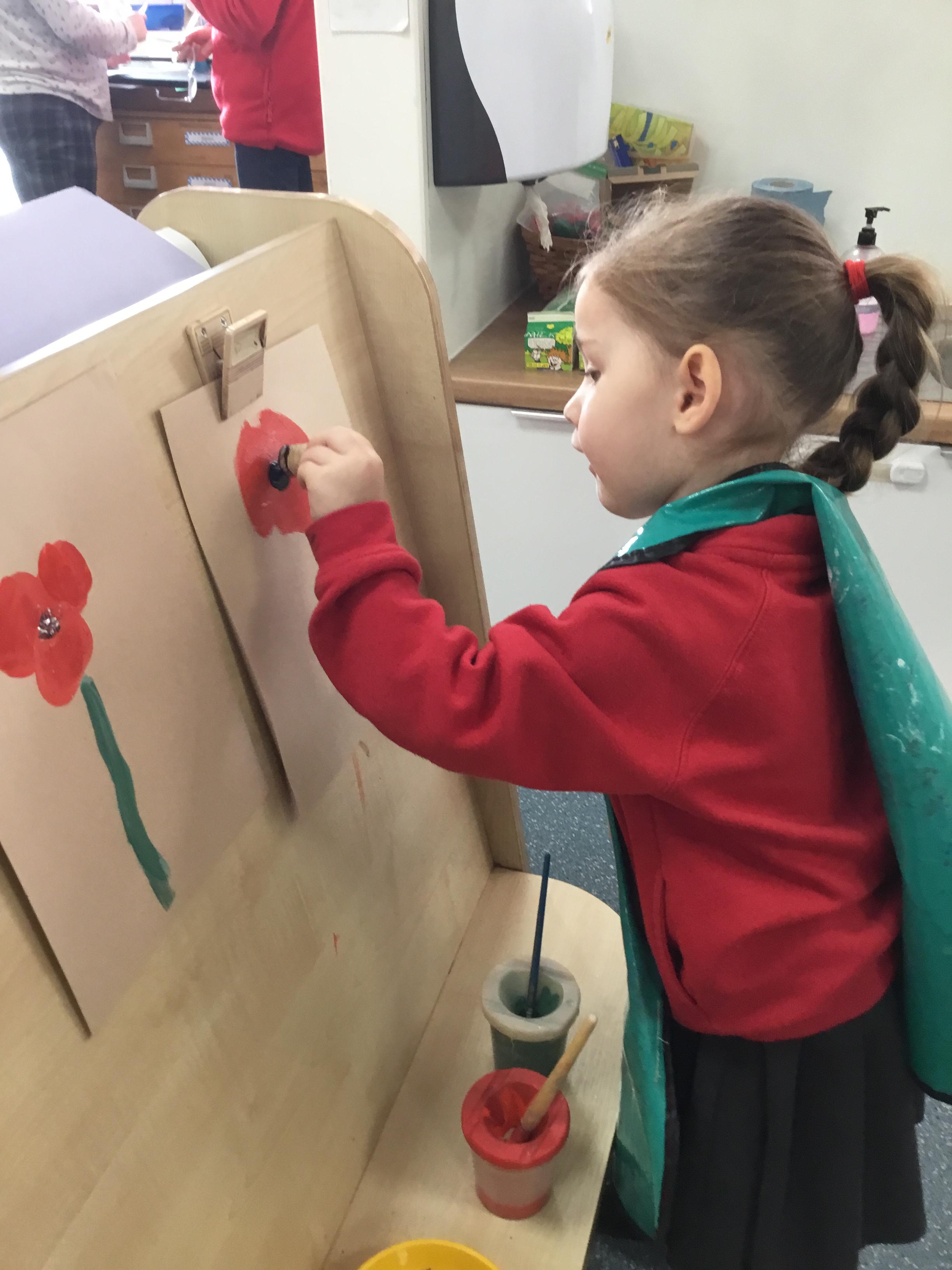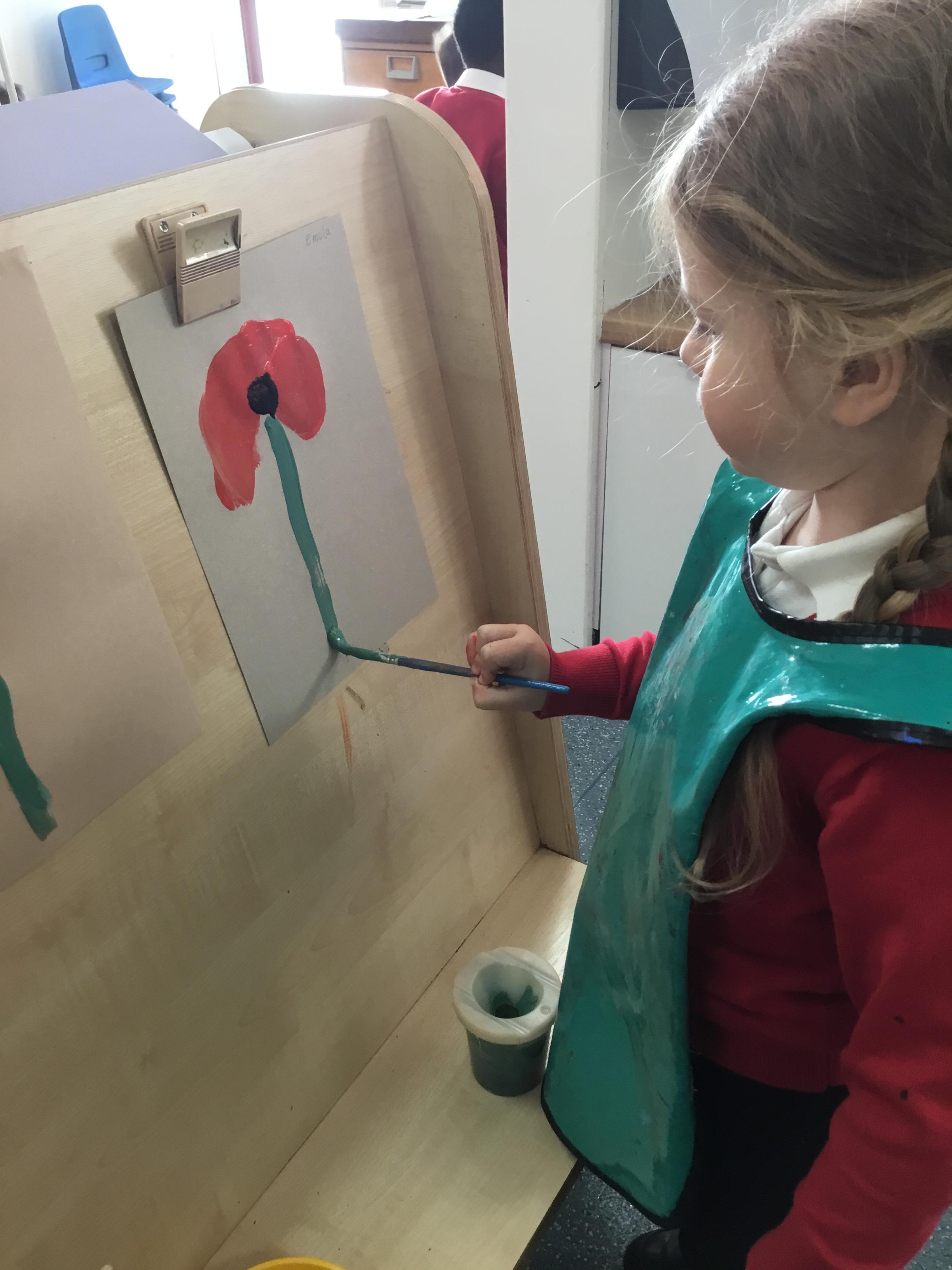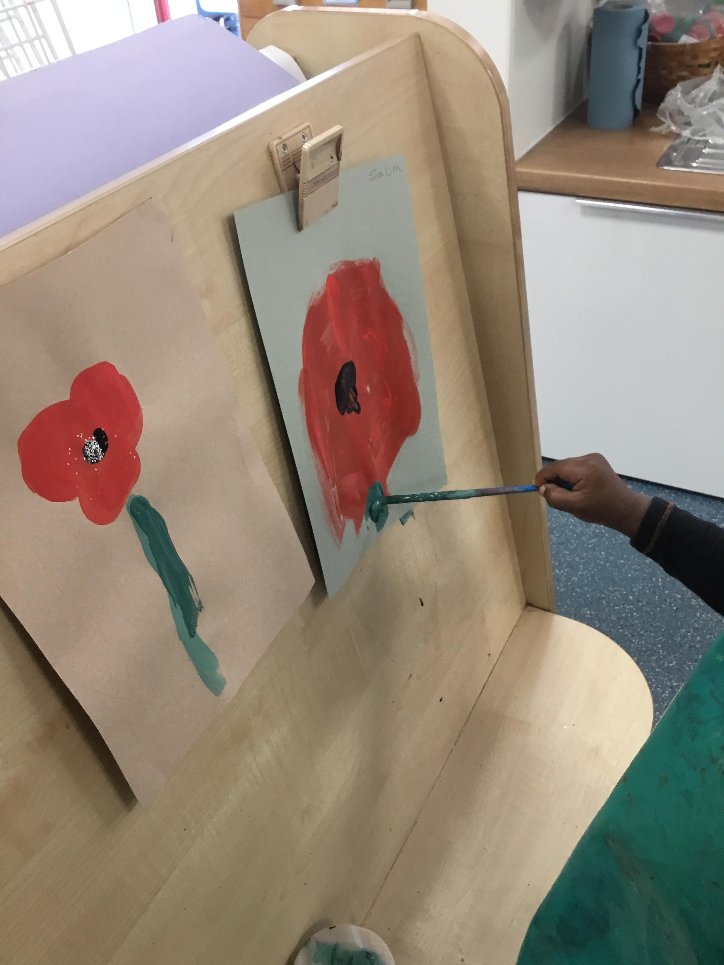 The children painted poppies for