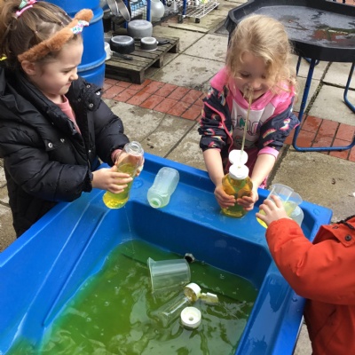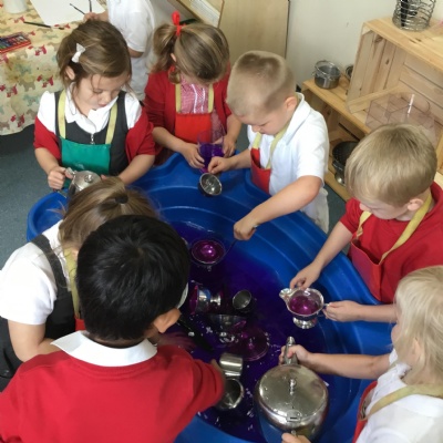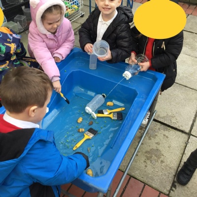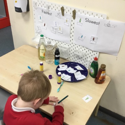 This term we have had science day across school. Reception have had fun exploring solids and liquids. We sorted solids and liquids and then predicted which would be the fastest and slowest liquid. In the afternoon we then carried out the experiment. The children continued this learning outside. Some great new vocabulary learnt and the children showed a great understanding. We have some great mini scientist in our midst.