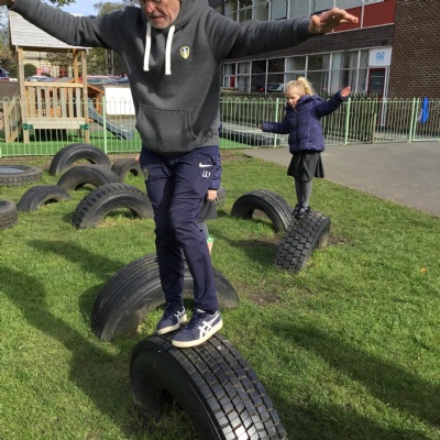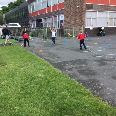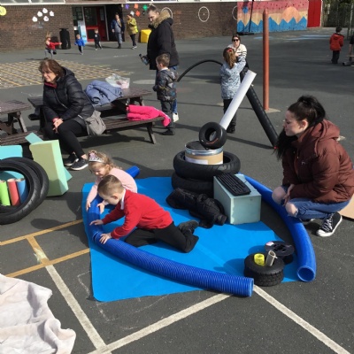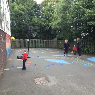Our final stay and play session we enjoyed our fabulous outdoor space and got active. We had skipping, hockey, football, and basketball. The weather held off and lots of energy and exercise was had by all.
