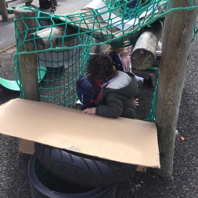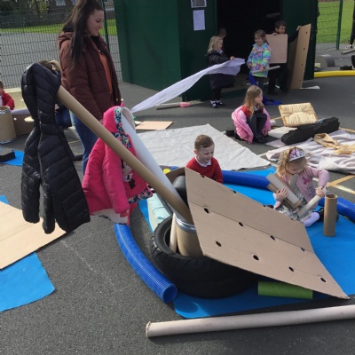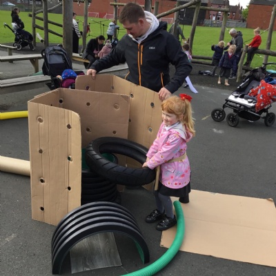 Our half termly stay and play this time incorporated our scrap shed. We had lots of fun getting creative and making lots of things out of recycled material. We had boats, cars going to Reighton Sands, houses and families playing hide and seek. The weather was on our side and it was lovely to spend such lovely time with our family and friends outside.