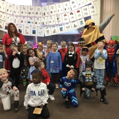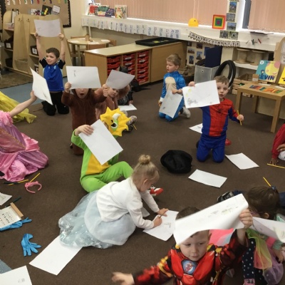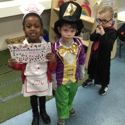 World Book Day in reception. We have had great day in reception dressing up as a ‘word’. We had words such as care, magical, moody and prehistoric to name a few. We had a mystery story time with a surprise visitor and a master class in being an illustrator from Rob Biddulph