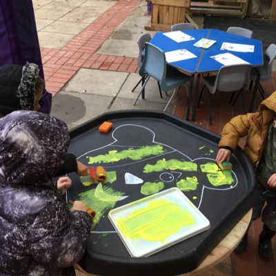 Our stay and play this half term had a winter feel. We enjoyed painting snowflakes, having sparkle in the play dough, building and making igloos as well as building a paper penguins. Lots of wonderful playing and sharing with the adults in our lives.