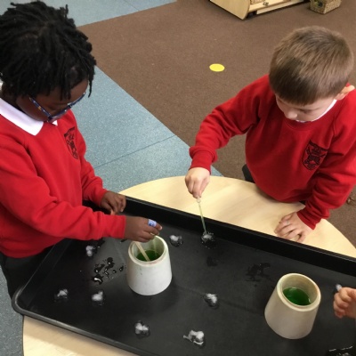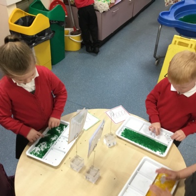 This term our focus has been looking at the season of Winter and looking at weather from both Poles. Our English has focused on using our tricky words and digraphs in simple sentences. Our texts have included Here comes Jack Frost and Poles Apart. In maths we have been looking at odd and even numbers, doubles and the composition of 6,7,8. The cold weather allowed us to explore ice outside and how and when it freezes. The children have also been continuing to work on their fine motor skills.