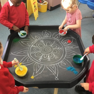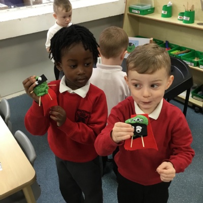 Our first two weeks back at school have been full of lots of learning and fun. We started the term with our inside out day relating to PSHE and then we read Gordon’s great escape and did some work to describe what his balloon was like. We have learnt about Remembrance Day and why we wear a poppy. We have read Binny’s Diwali and explored this Hindu festival of light which included making Bafir, as well as looking at nursery rhymes in national nursery rhyme week. In maths we have been investigating the properties of circles and triangles along with the composition of 1,2,3. In our provision we have had lots of discussion about what we celebrate and the many different events and birthdays are firm favourite. On Friday 17th November we supported Children in Need and did lots of Pudsey Bear and yellow based activities.