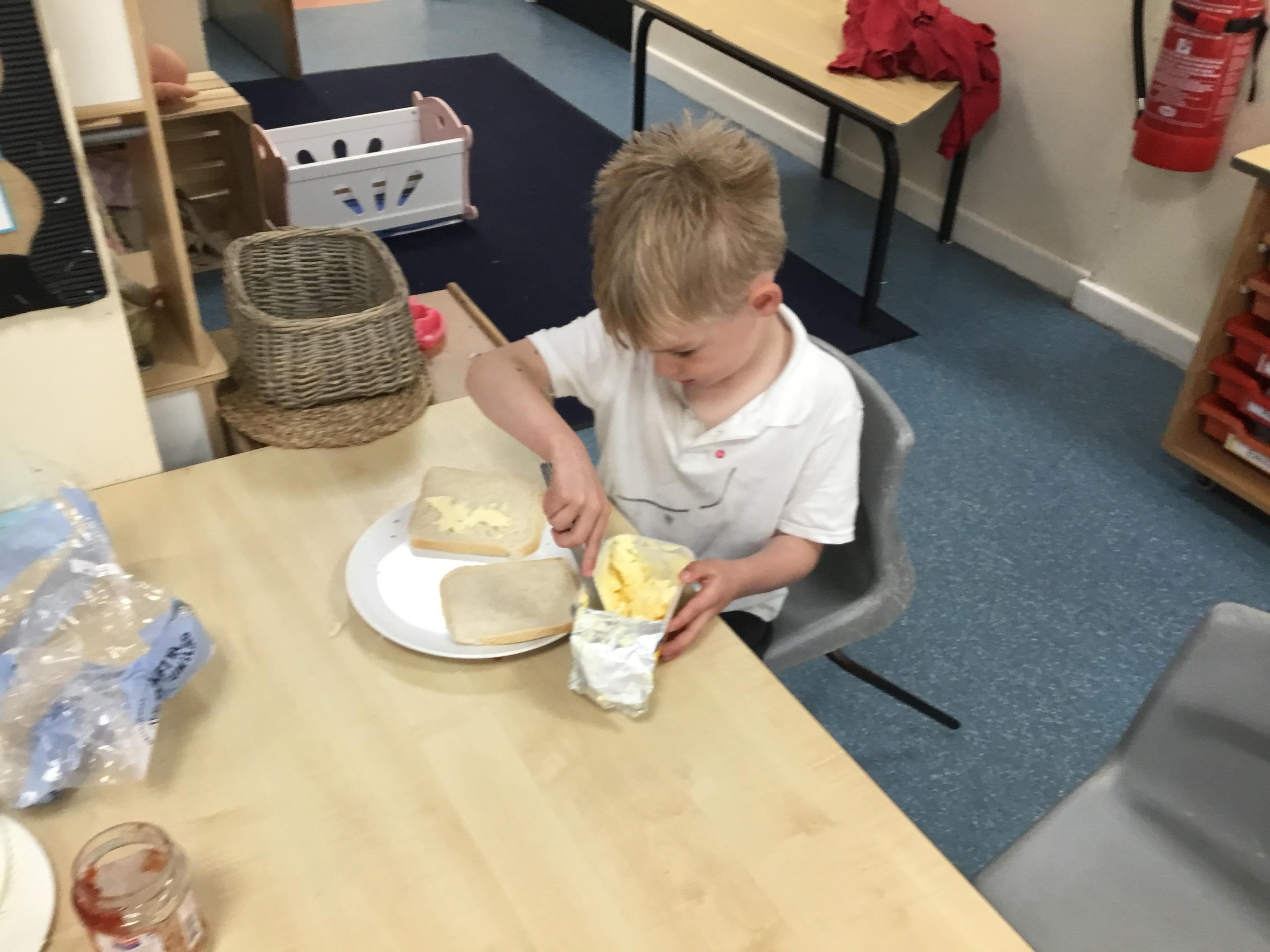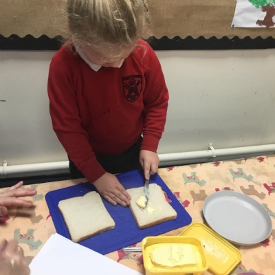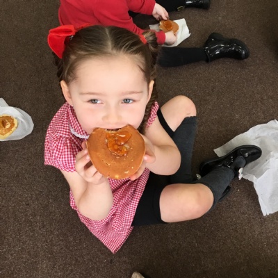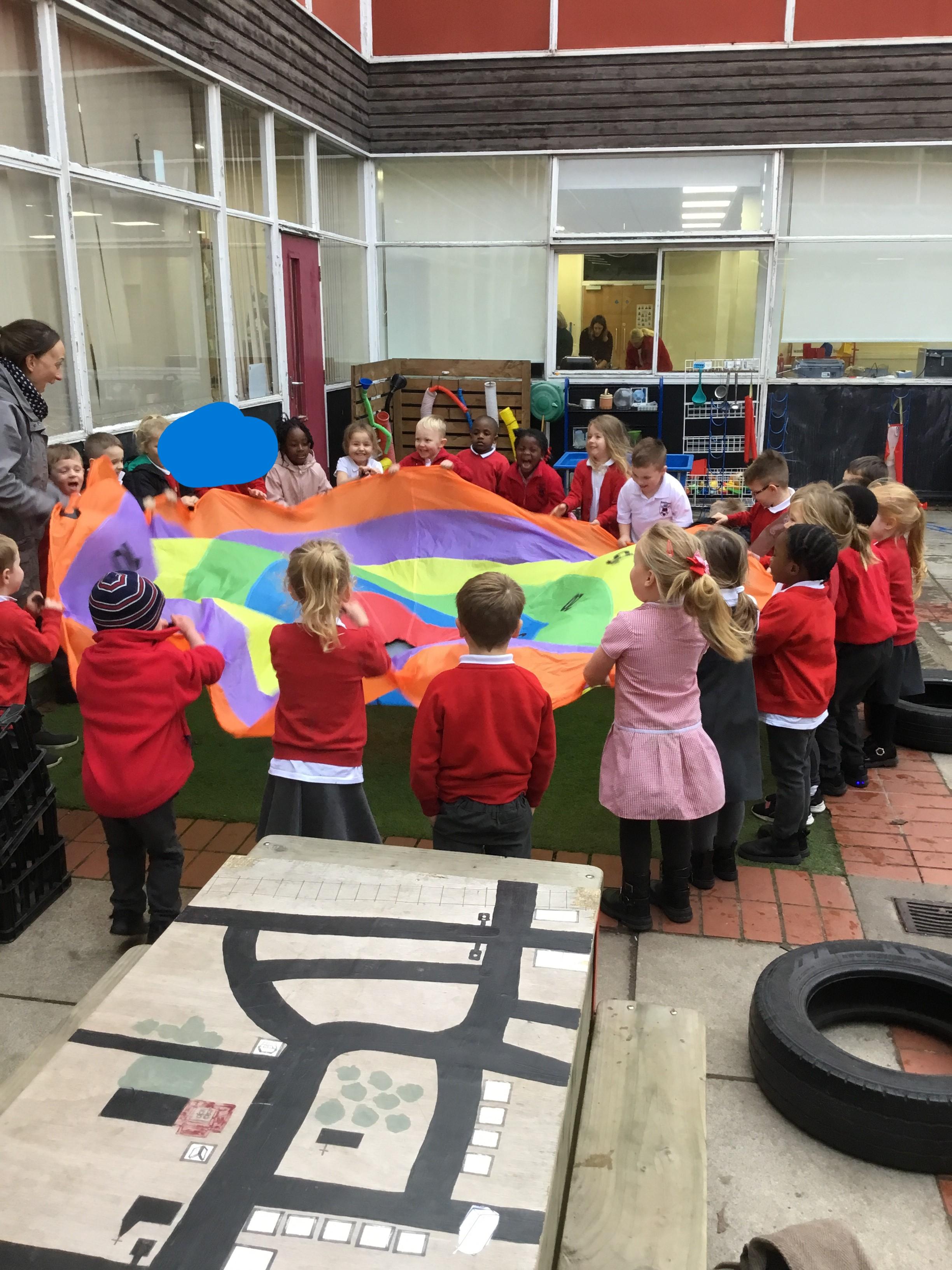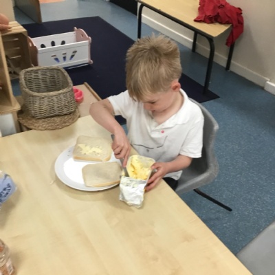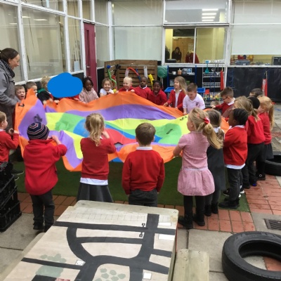 In our first week back after the October half term break, we welcomed the children back with our Healthy Inside and Out Day. We learnt the new skill of making our own sandwich which we enjoyed as an afternoon snack. We also enjoyed learning about Bonfire Night and exploring our new tricyles and parachute in our outside area.