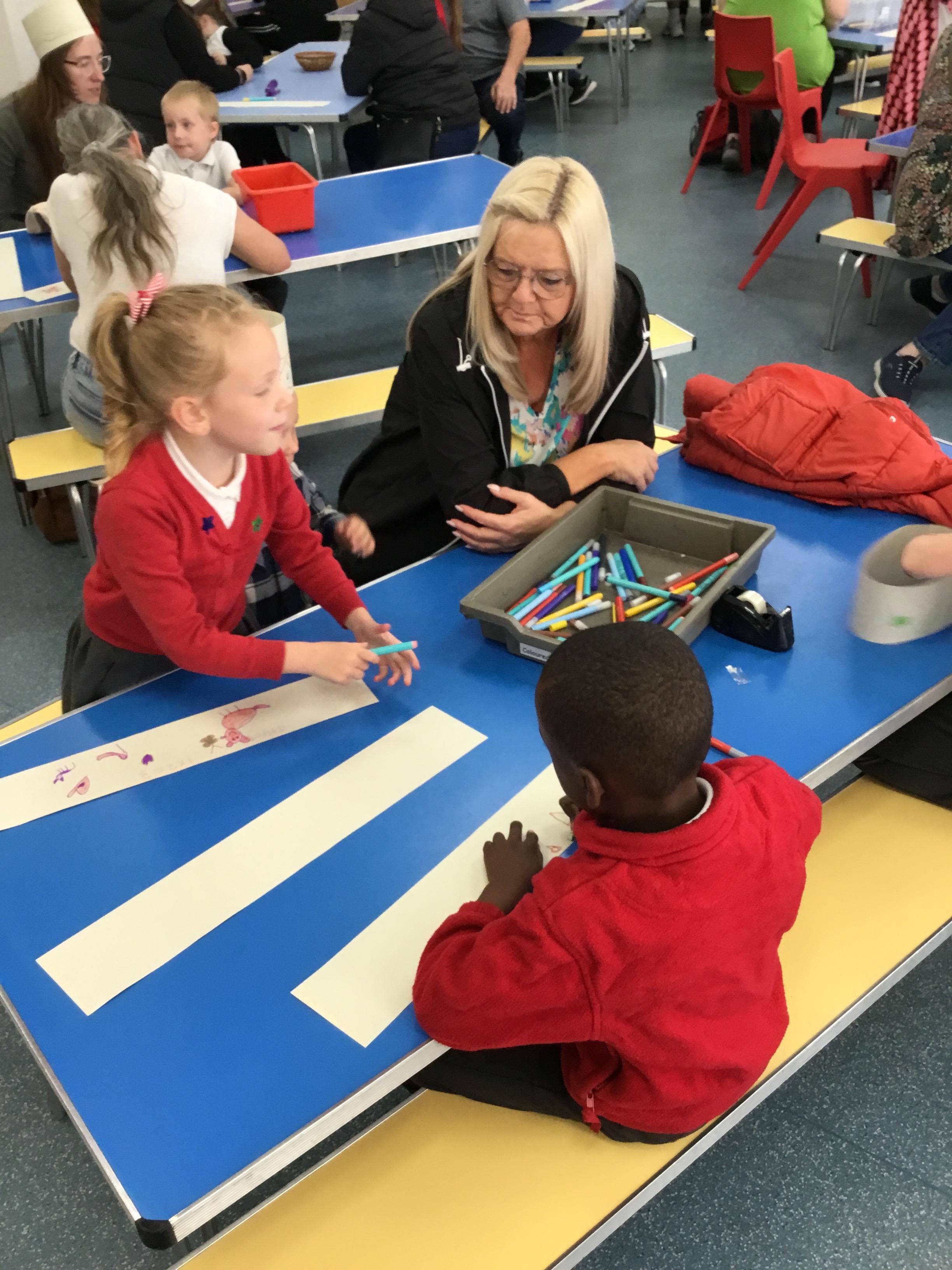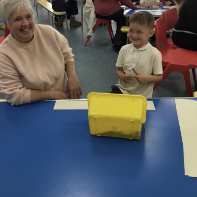 Today we invited our grandparents and loved ones into school. We hosted an afternoon tea of sandwiches, scones and gingerbread men. We had a wonderful time spending time chatting and playing. Unfortunately the rain stopped us playing out but lego and drawing to the rescue.