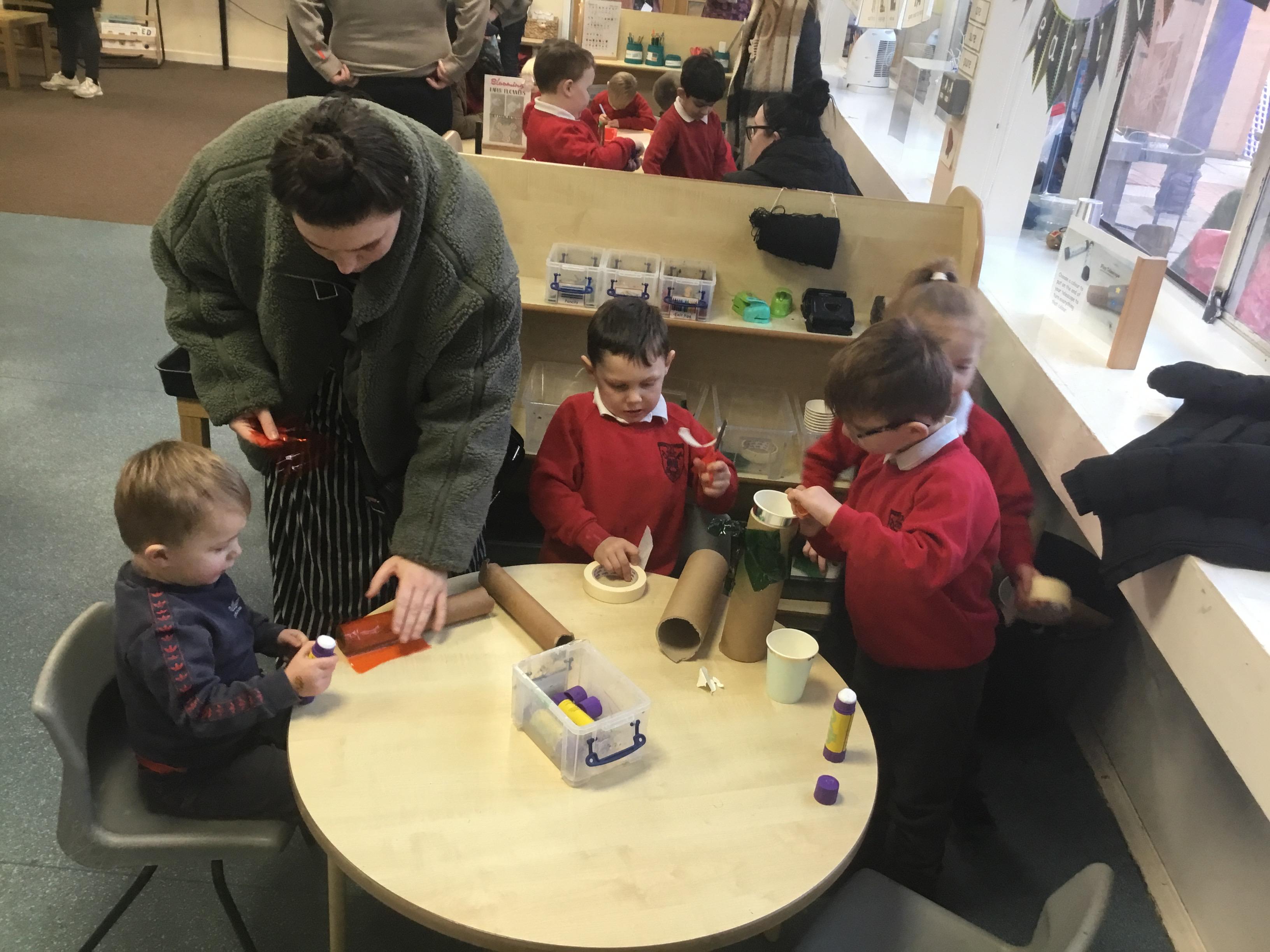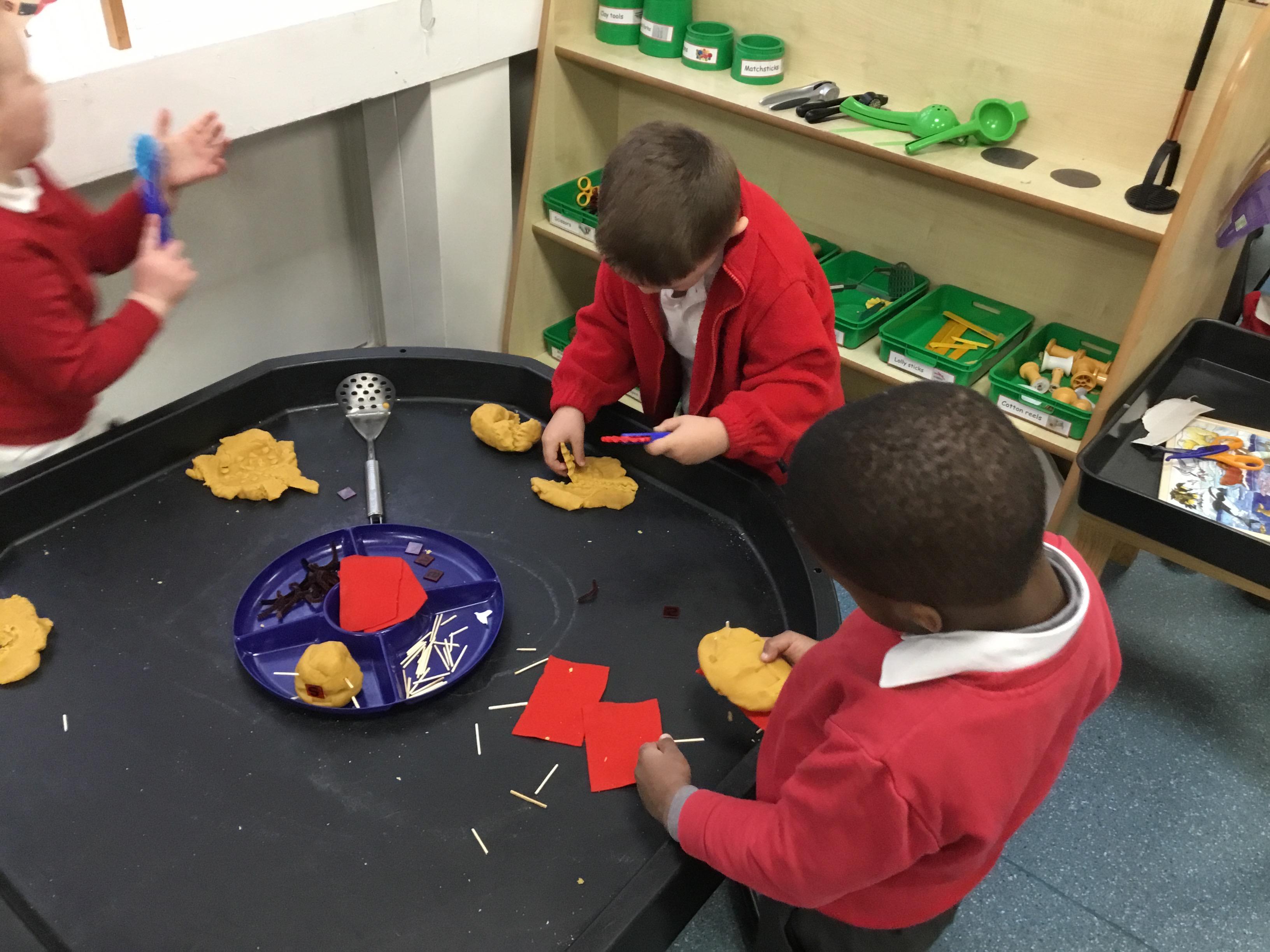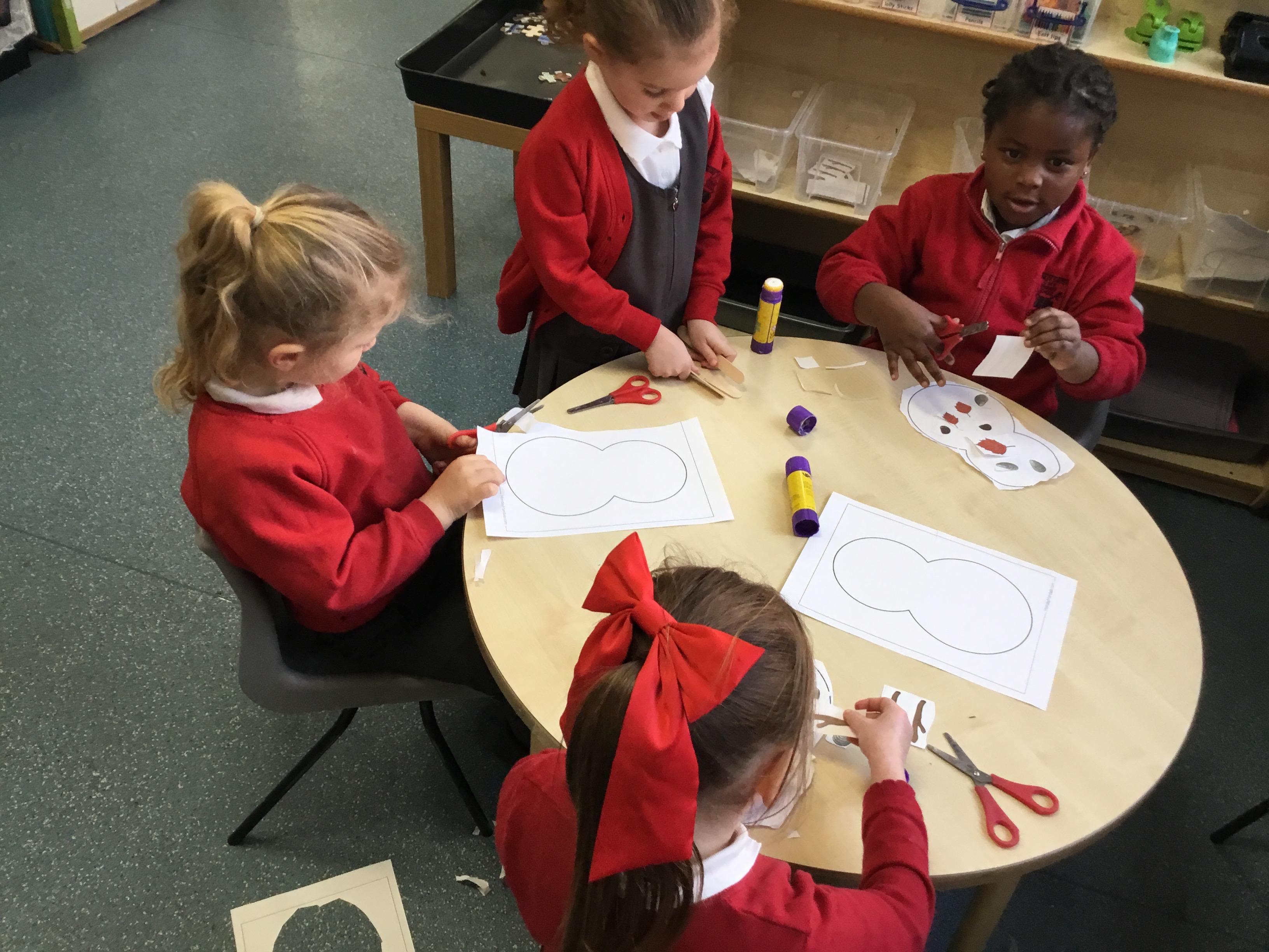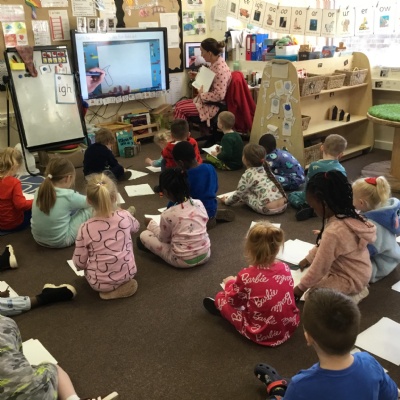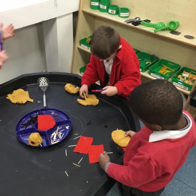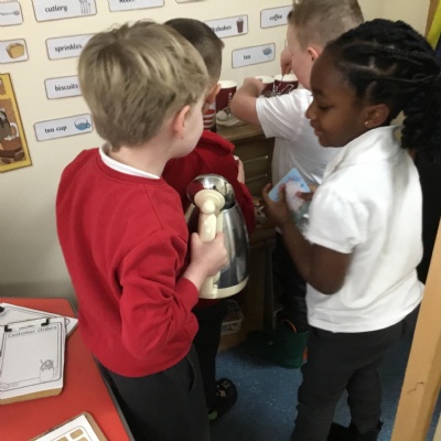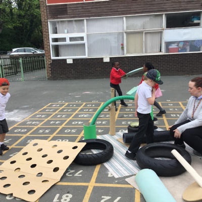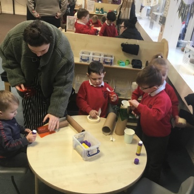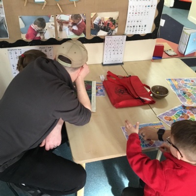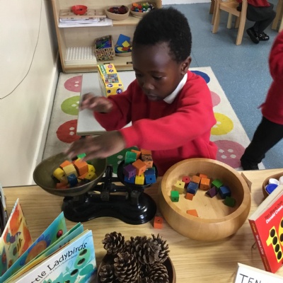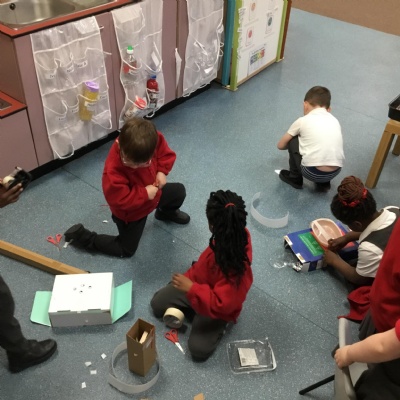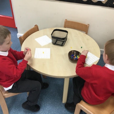 This term has been a short one but we have continued to be busy. We have continued to love drawing club which is encouraging our children to be more independent with their writing. In maths we have been looking at ways to make 10 using our knowledge of '5 and a bit' which helps make connections with the numbers. We have had stay and scrap with our parents and carers, where we loved getting creative making, boats, shelters and even a TV!