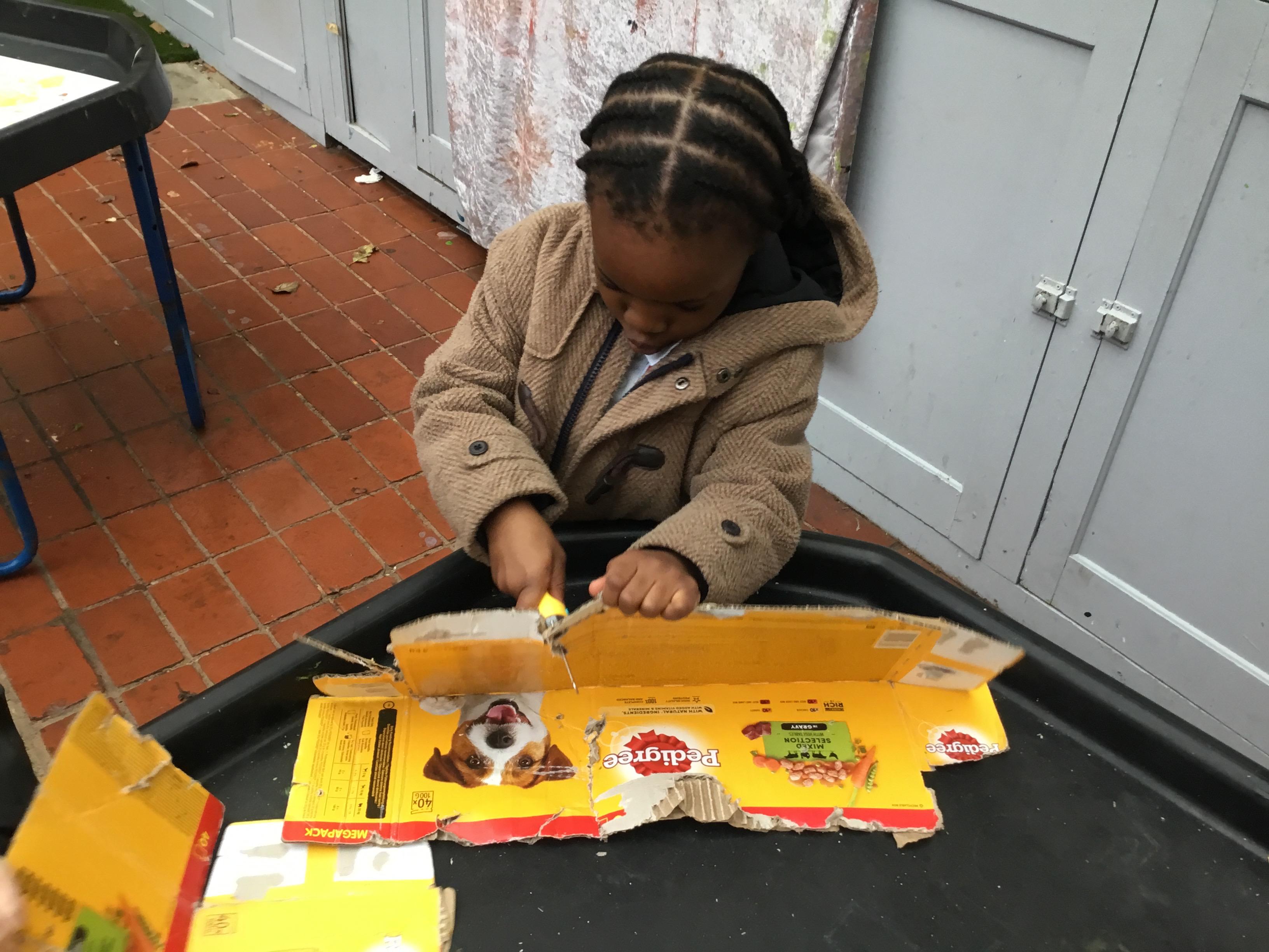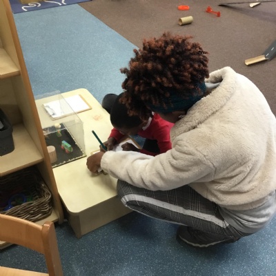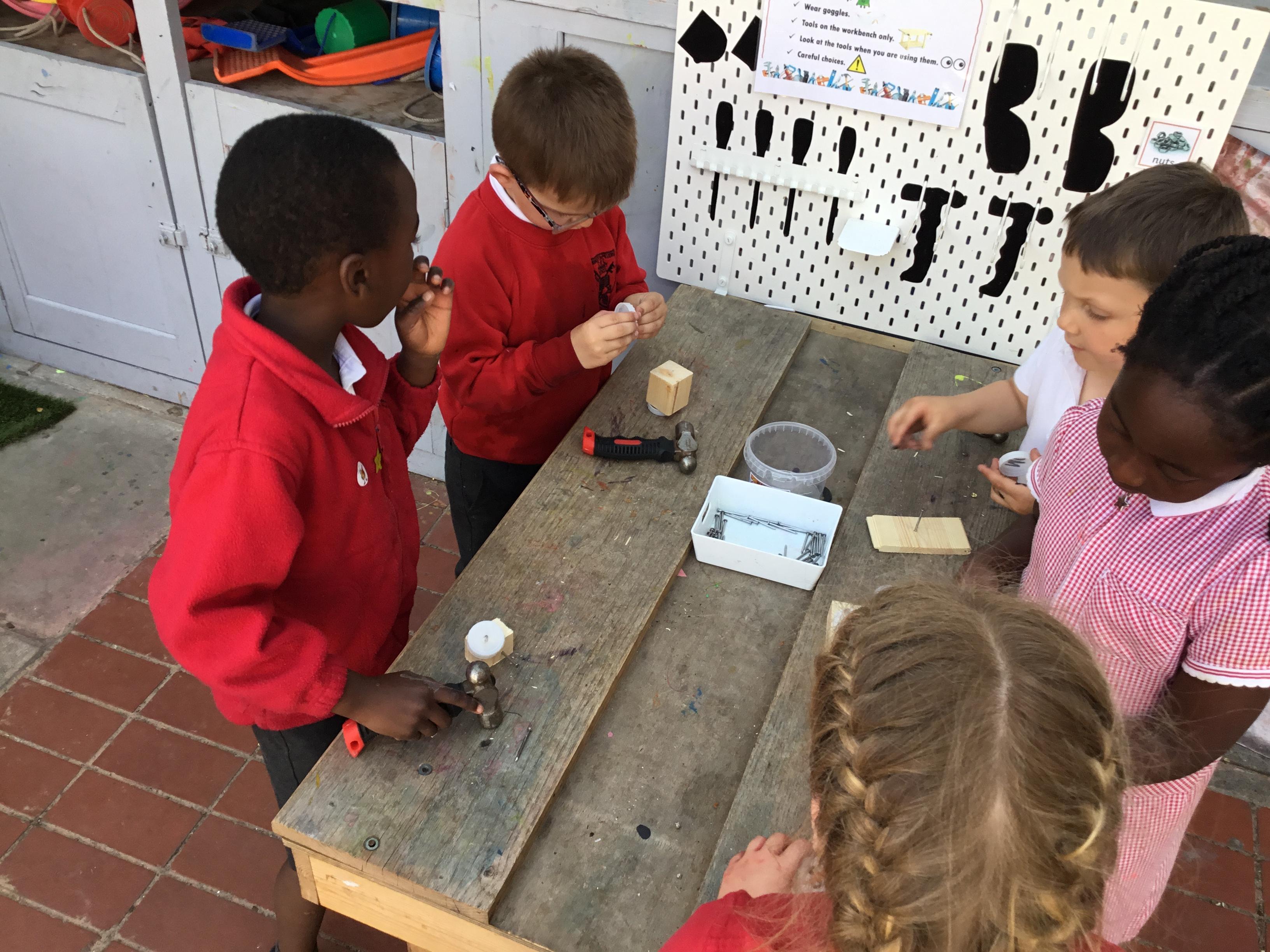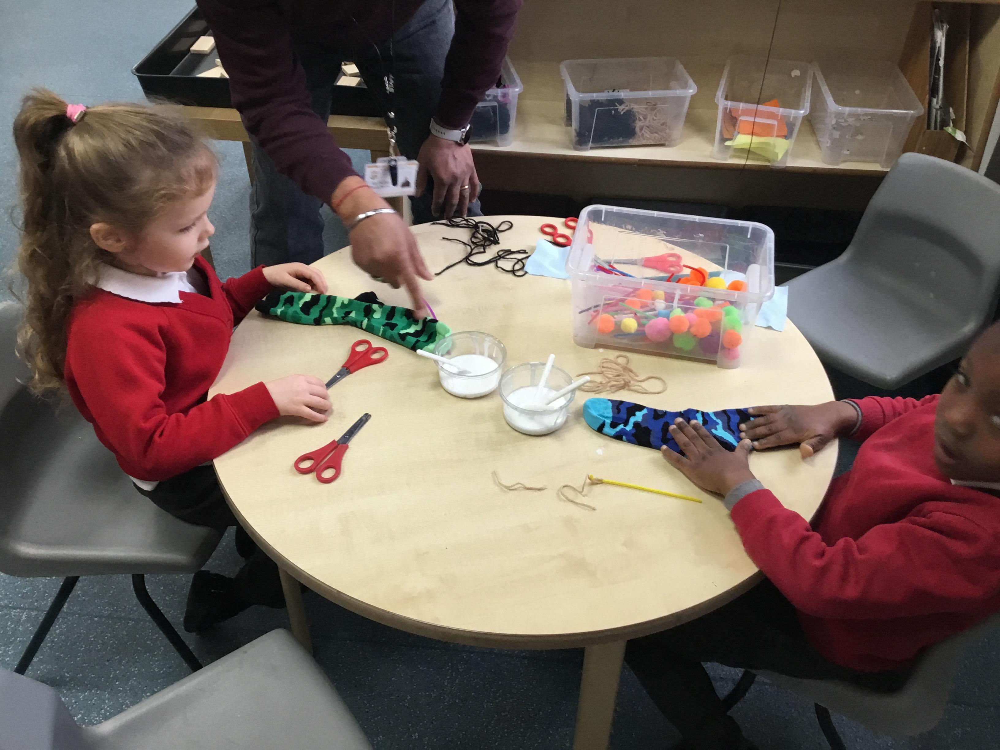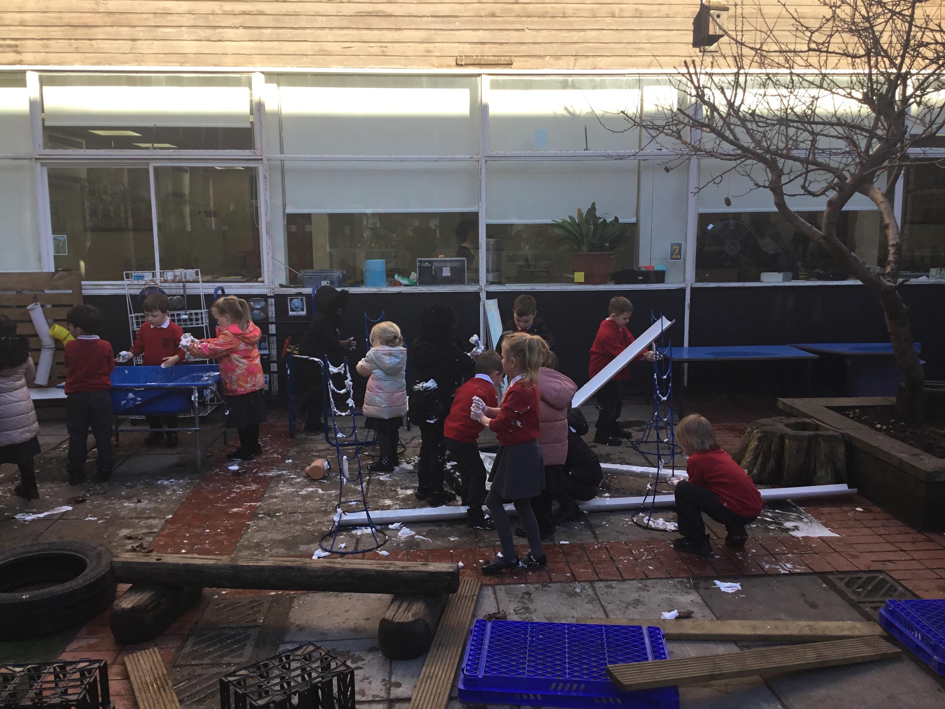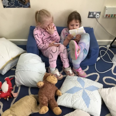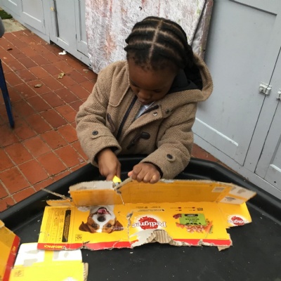 This term has been a short one but we have continued to be busy. We have continued to love drawing club which is encouraging our children to be more independent with their writing. In maths we have been looking at ways to make 10 using our knowledge of '5 and a bit' which helps make connections with the numbers. We have had stay and scrap with our parents and carers, where we loved getting creative making, boats, shelters and even a TV!
