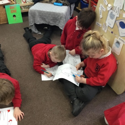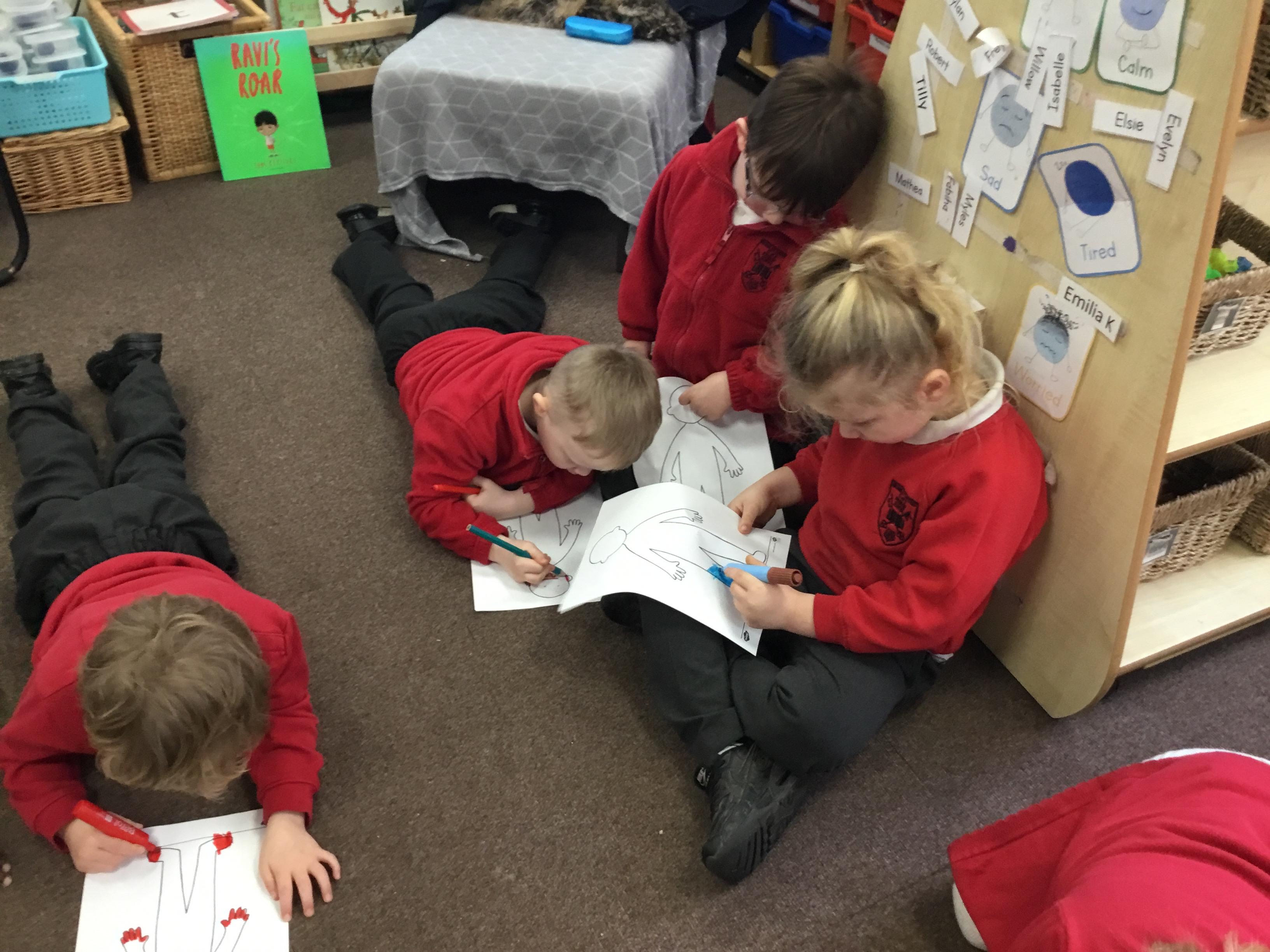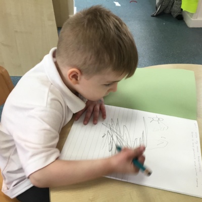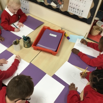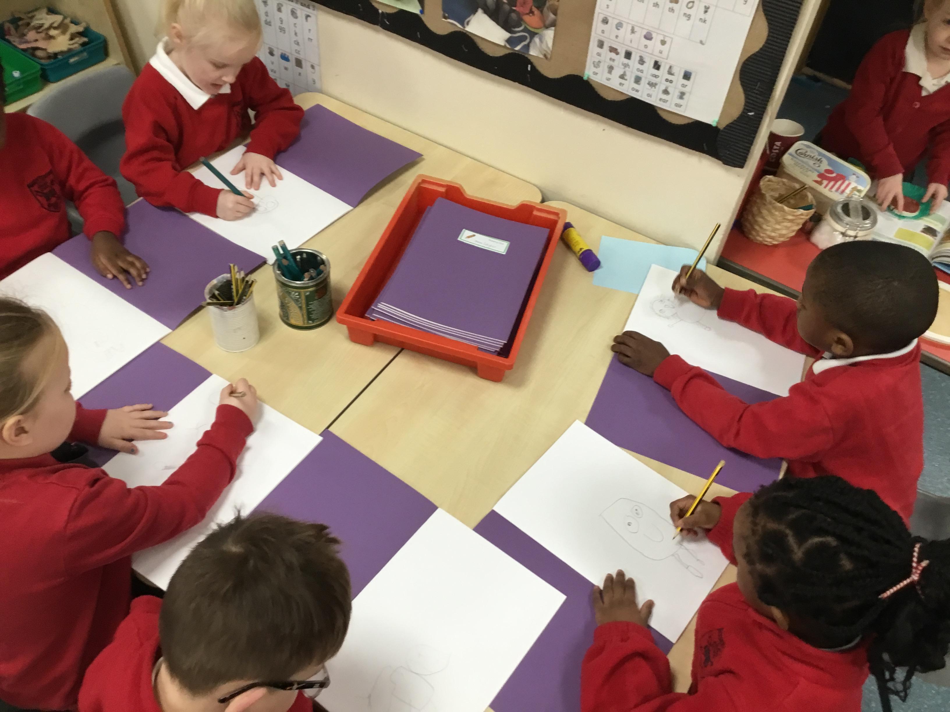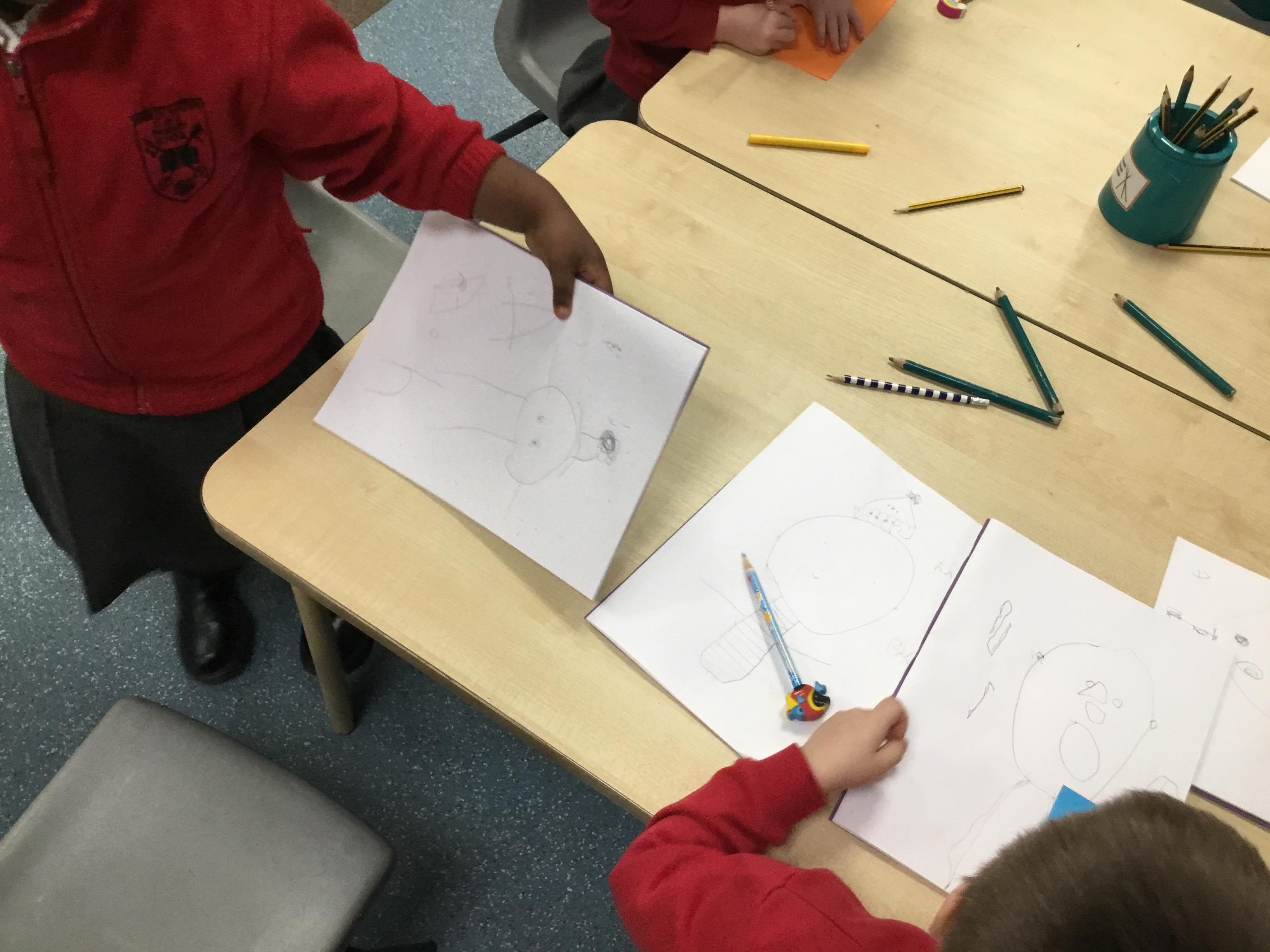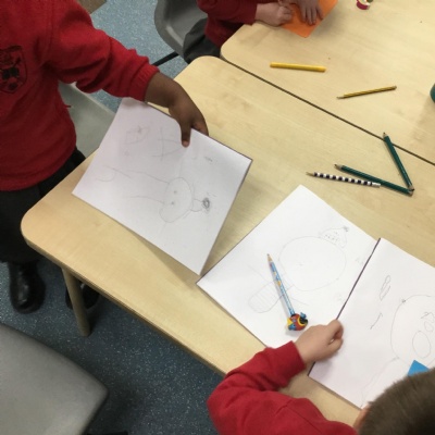 In reception we have started drawing club. Our first club was on the book Lost and Found by Oliver Jeffers. The children came up with some great ideas about their character and what would happen to him. The children were creative, excited and loved sharing their ideas with the adults and other children.