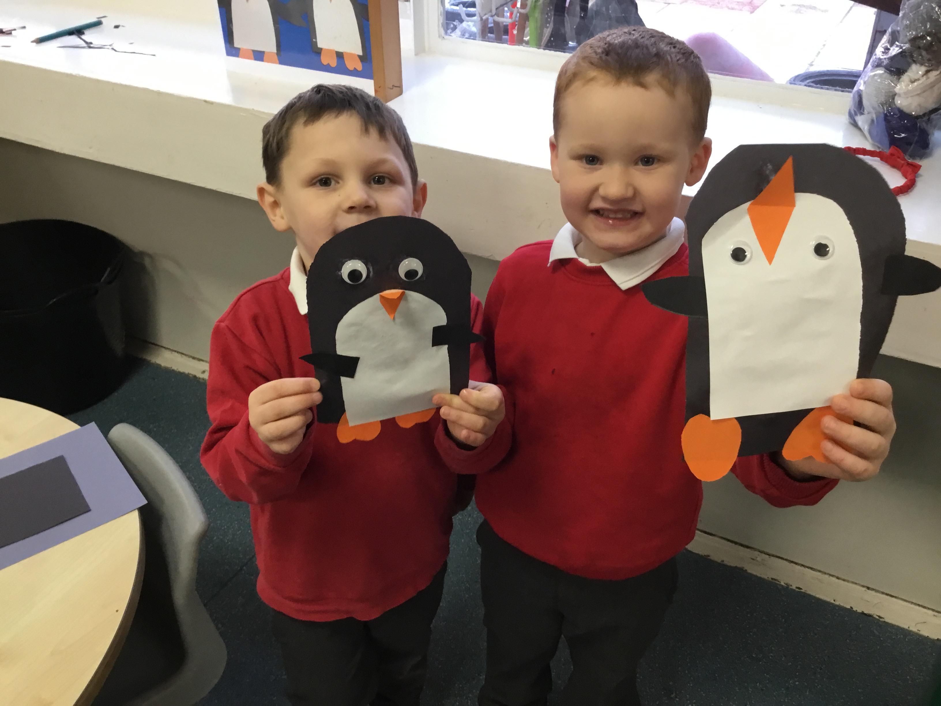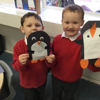 We returned to school having had lots of snow. Our first day back we read the book The Dot as part of our healthy inside and out day. We looked at our growth mindset characters including Captain Challenge, Professor Perseverance, Inspector Independence and Major Mistake. The children had a go at creating their own dot art work and discussed any barrier they may have faced. The rest of this week the big freeze came upon us and we explored the ice and snow developing our understanding and knowledge of the world. This was a great hook into our new topic and our first book The problem with Penguins.
