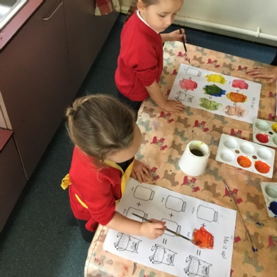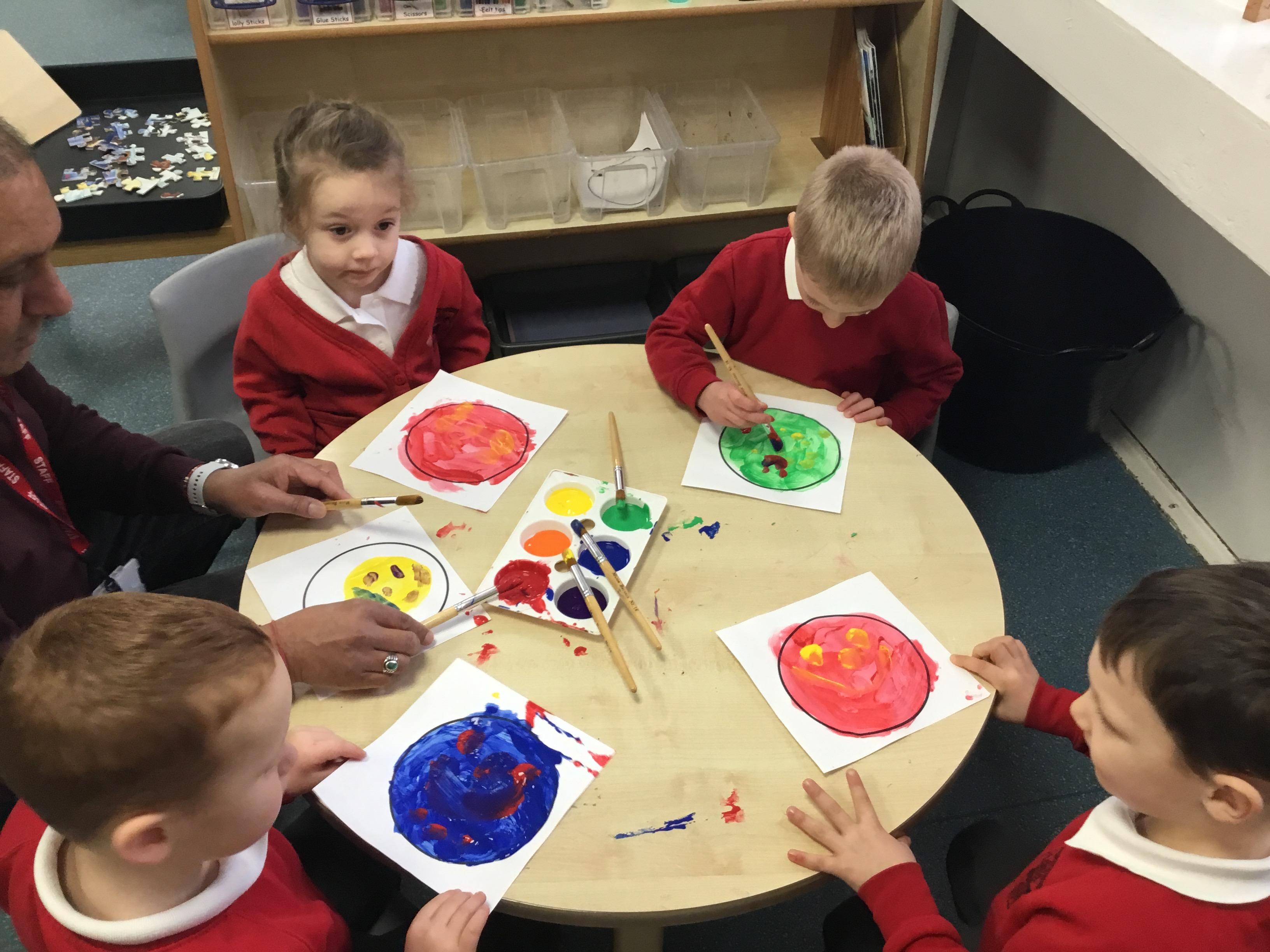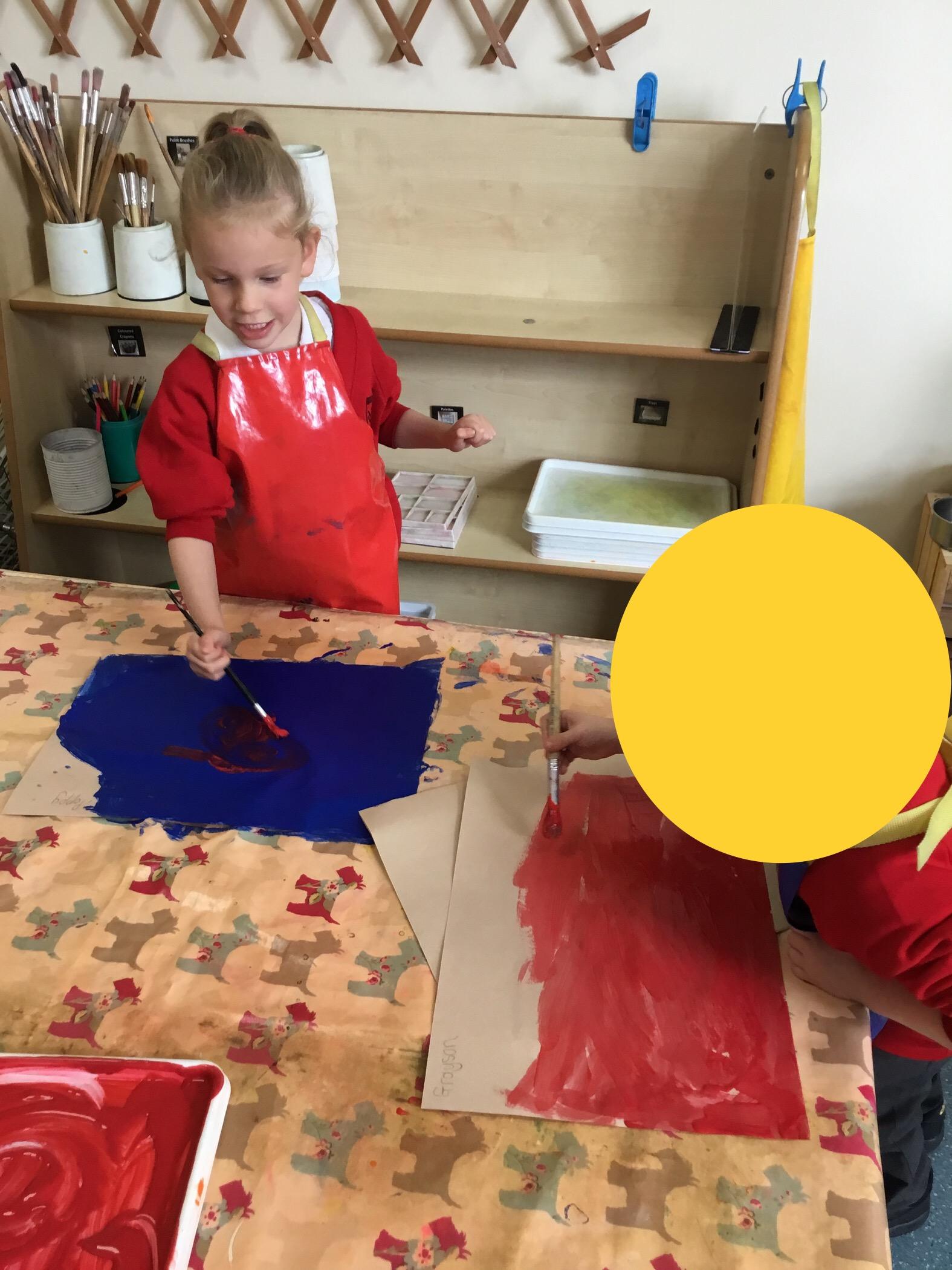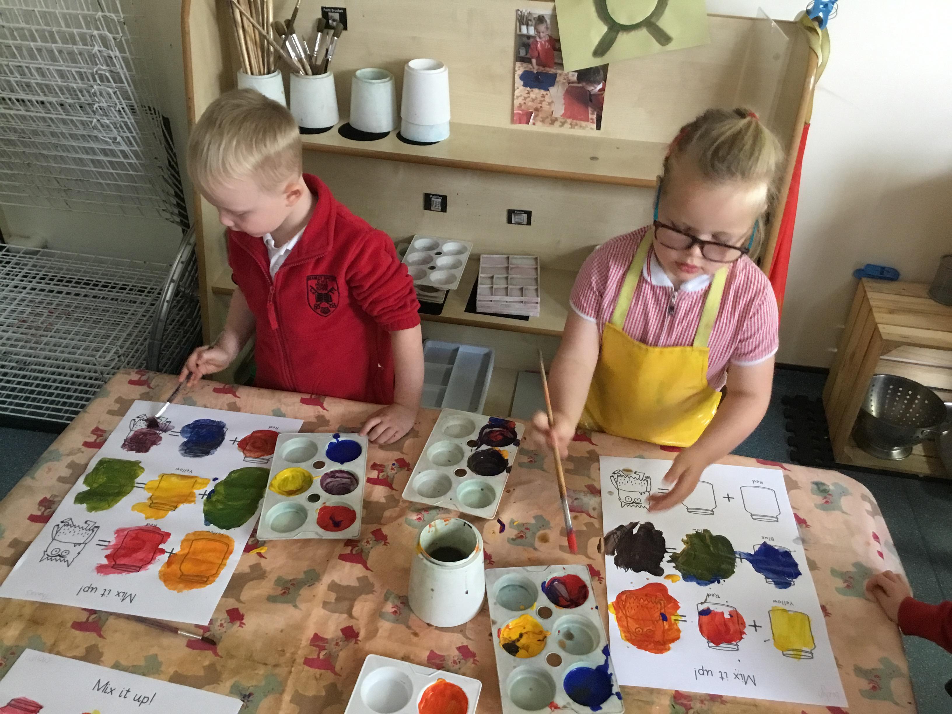 In expressive, art and design (EAD) we have been colour mixing and experimenting with different paintbrushes and medias. This all helps to support our fine motor skills.