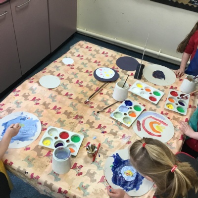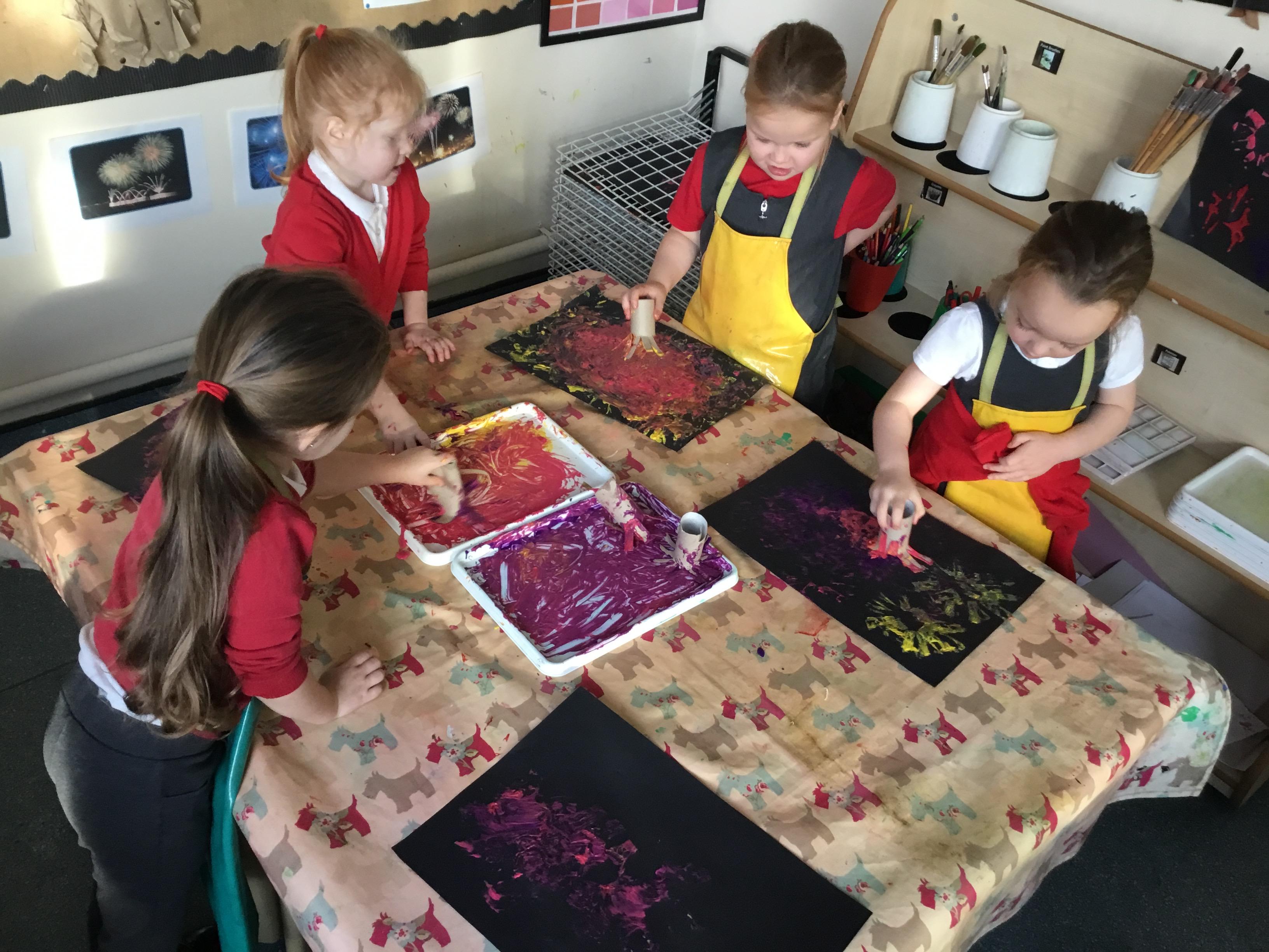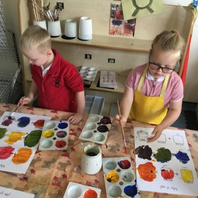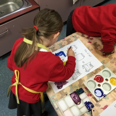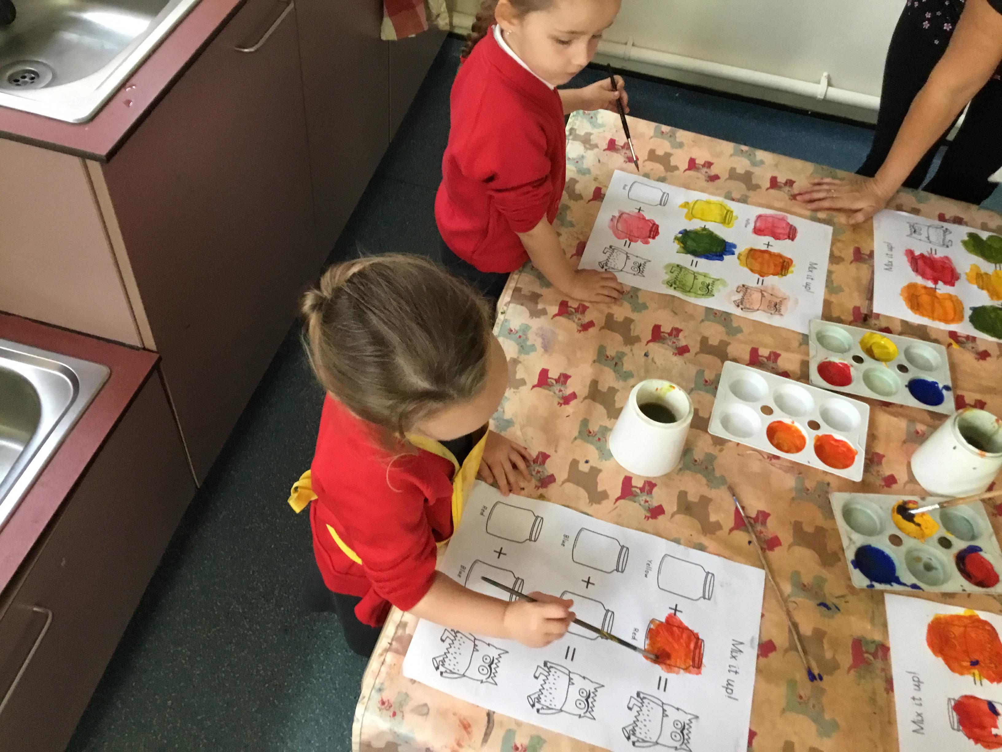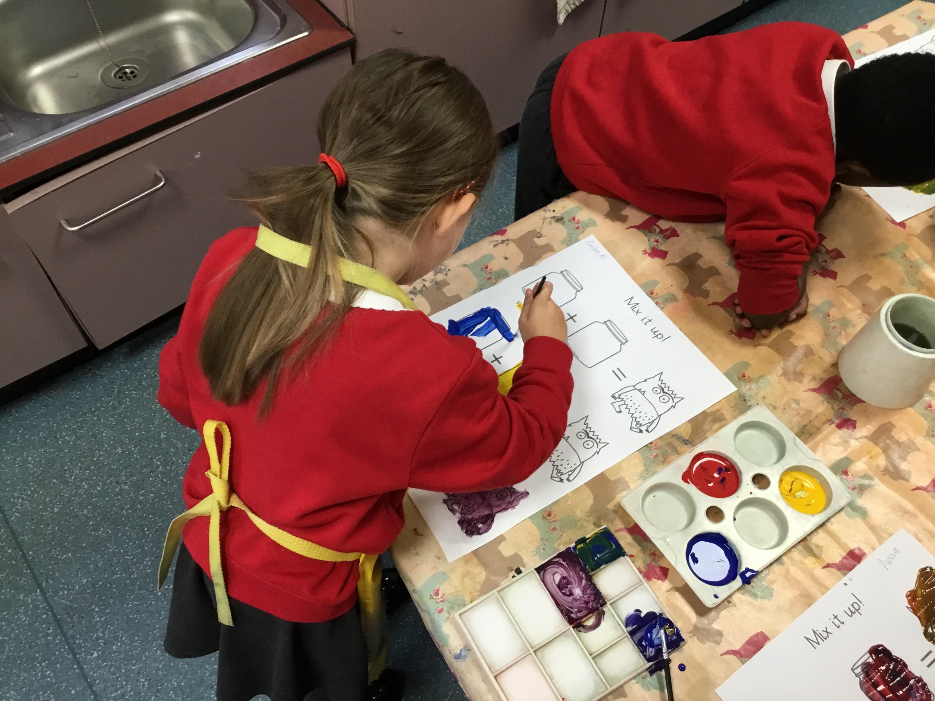 In expressive, art and design (EAD) we have been colour mixing and experimenting with different paintbrushes and medias. This all helps to support our fine motor skills.