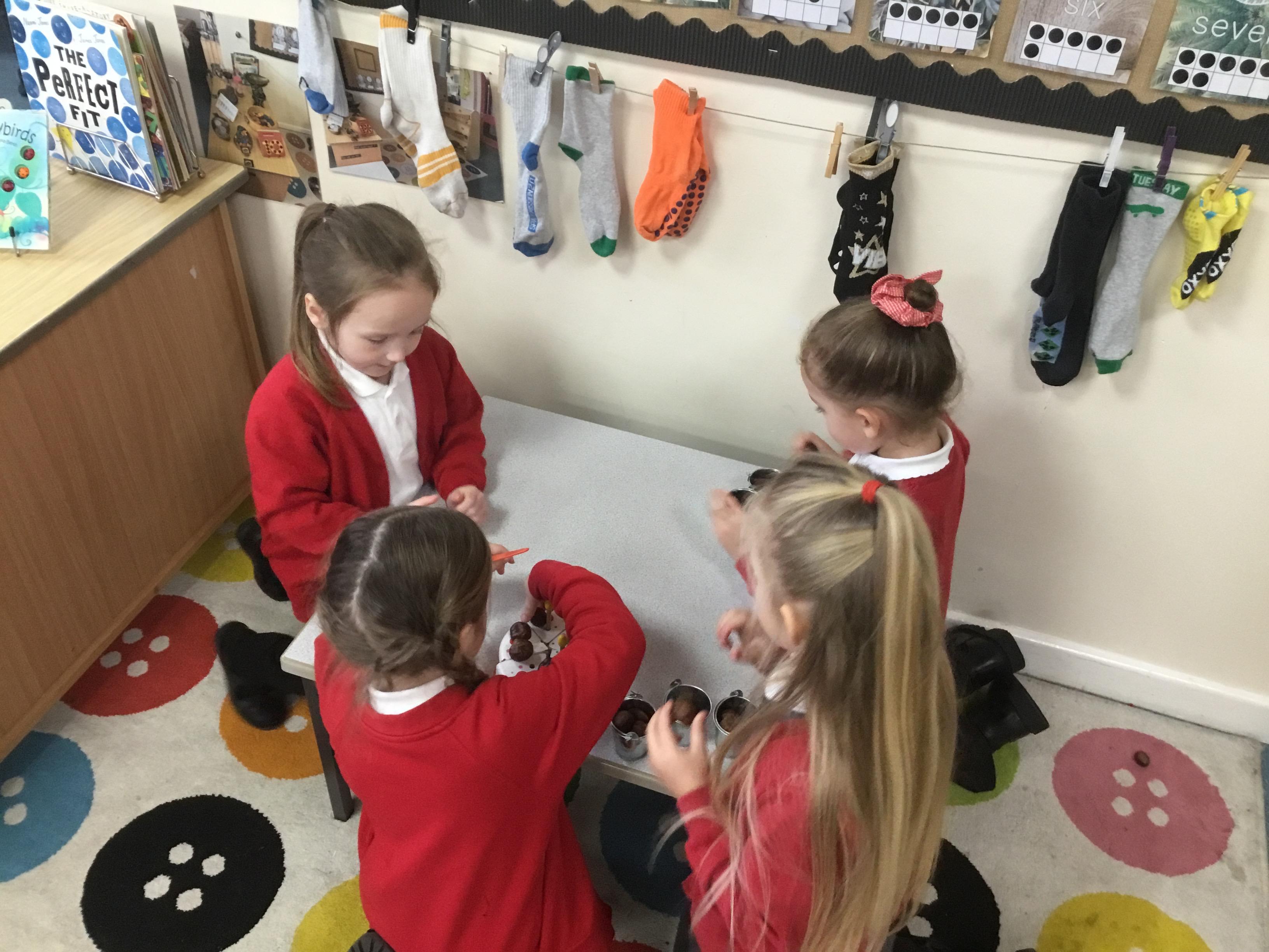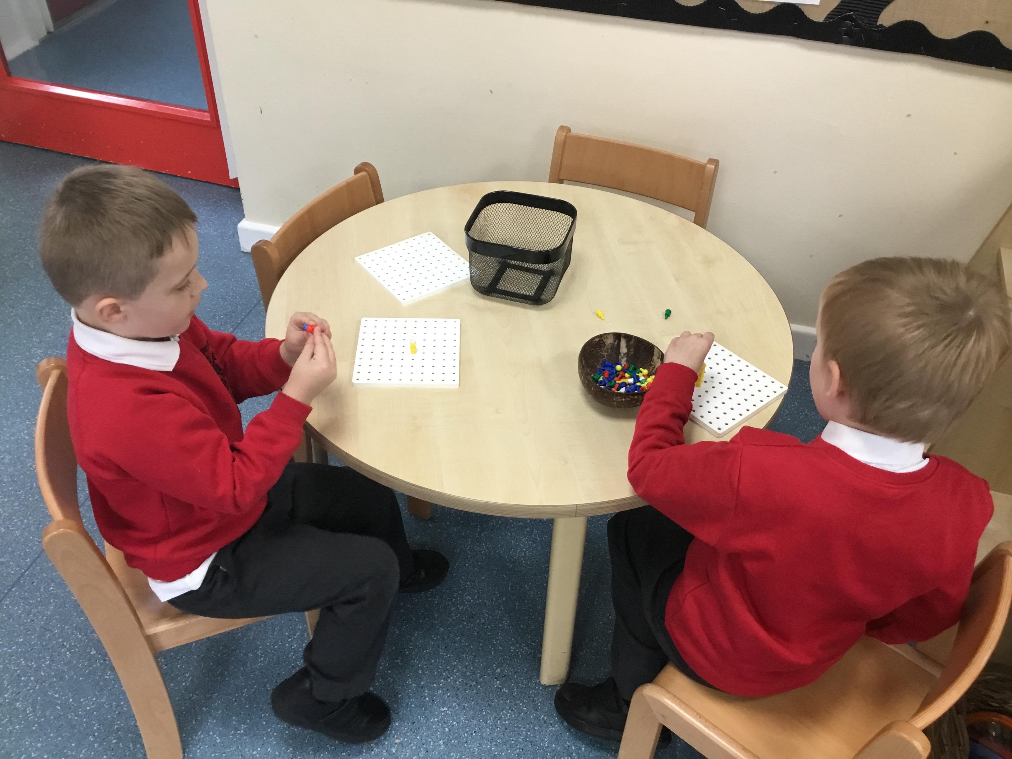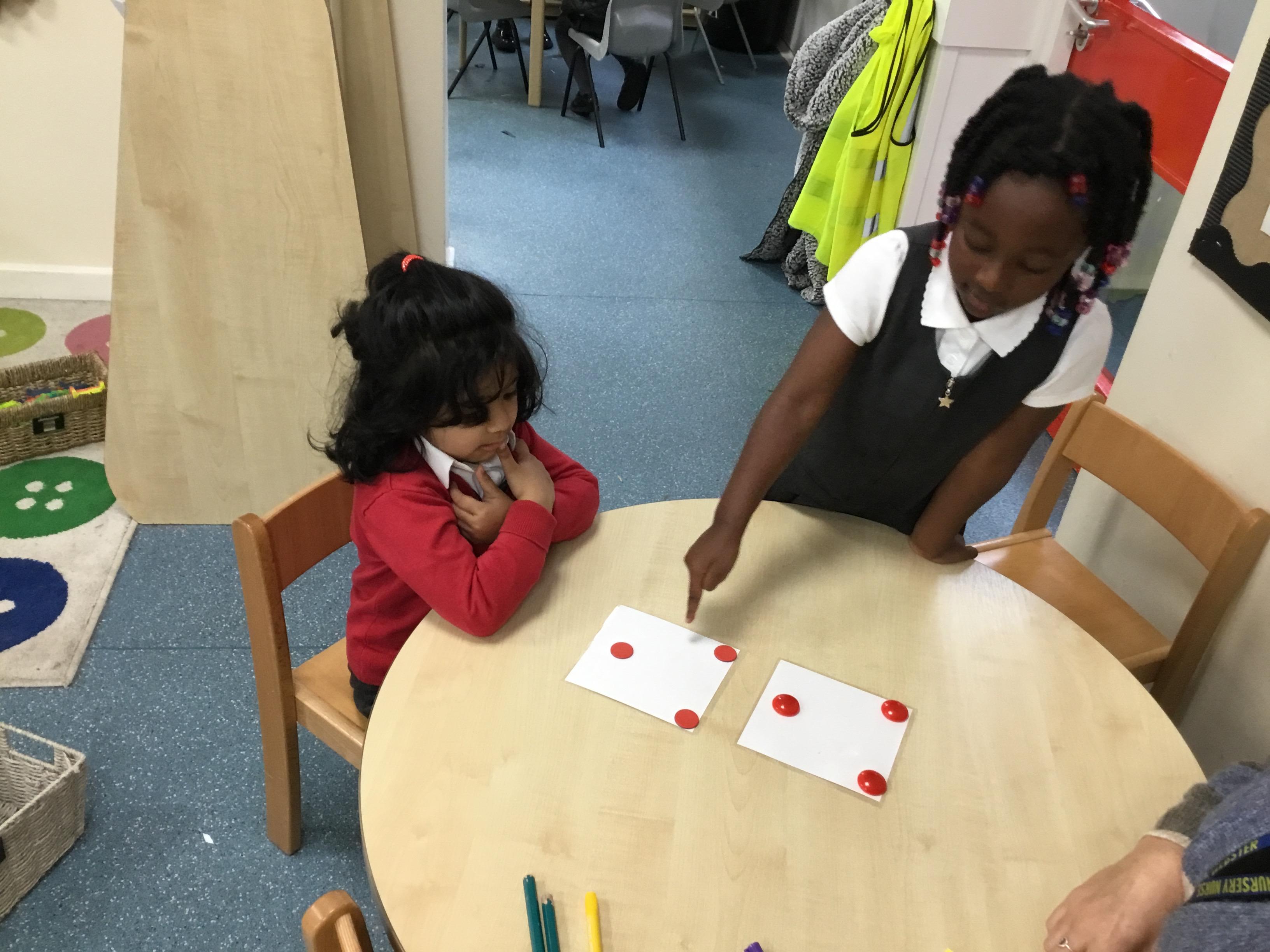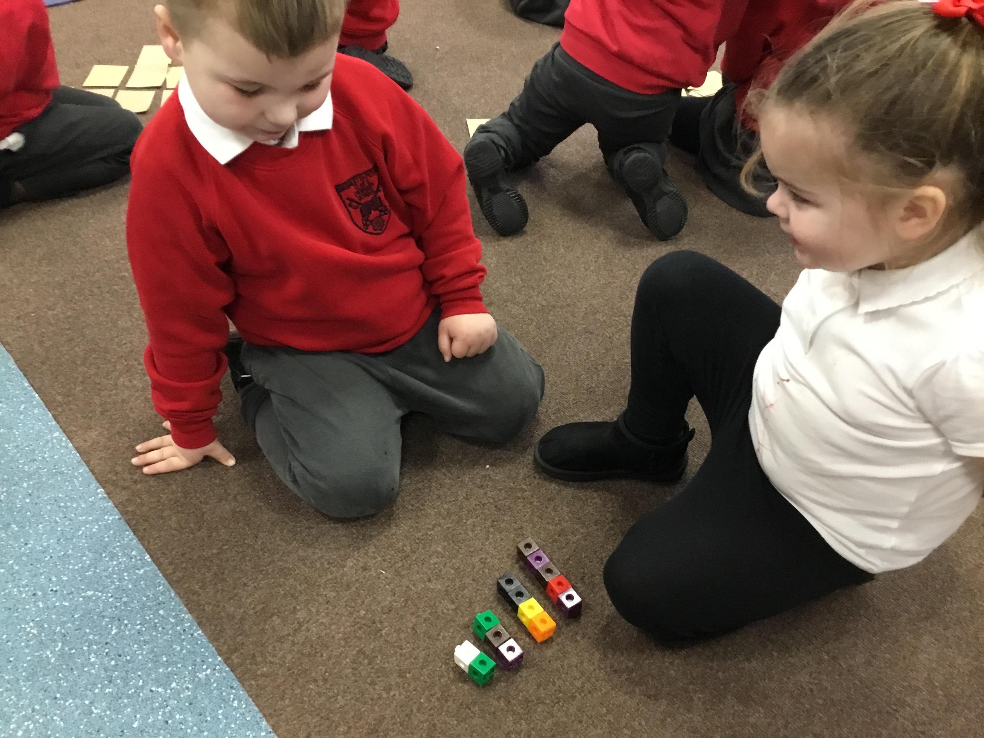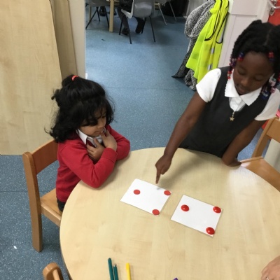 In maths we have been looking at numbers 1-5. We have been subitising (using our fast eyes) and that we can make a number in different ways e.g.