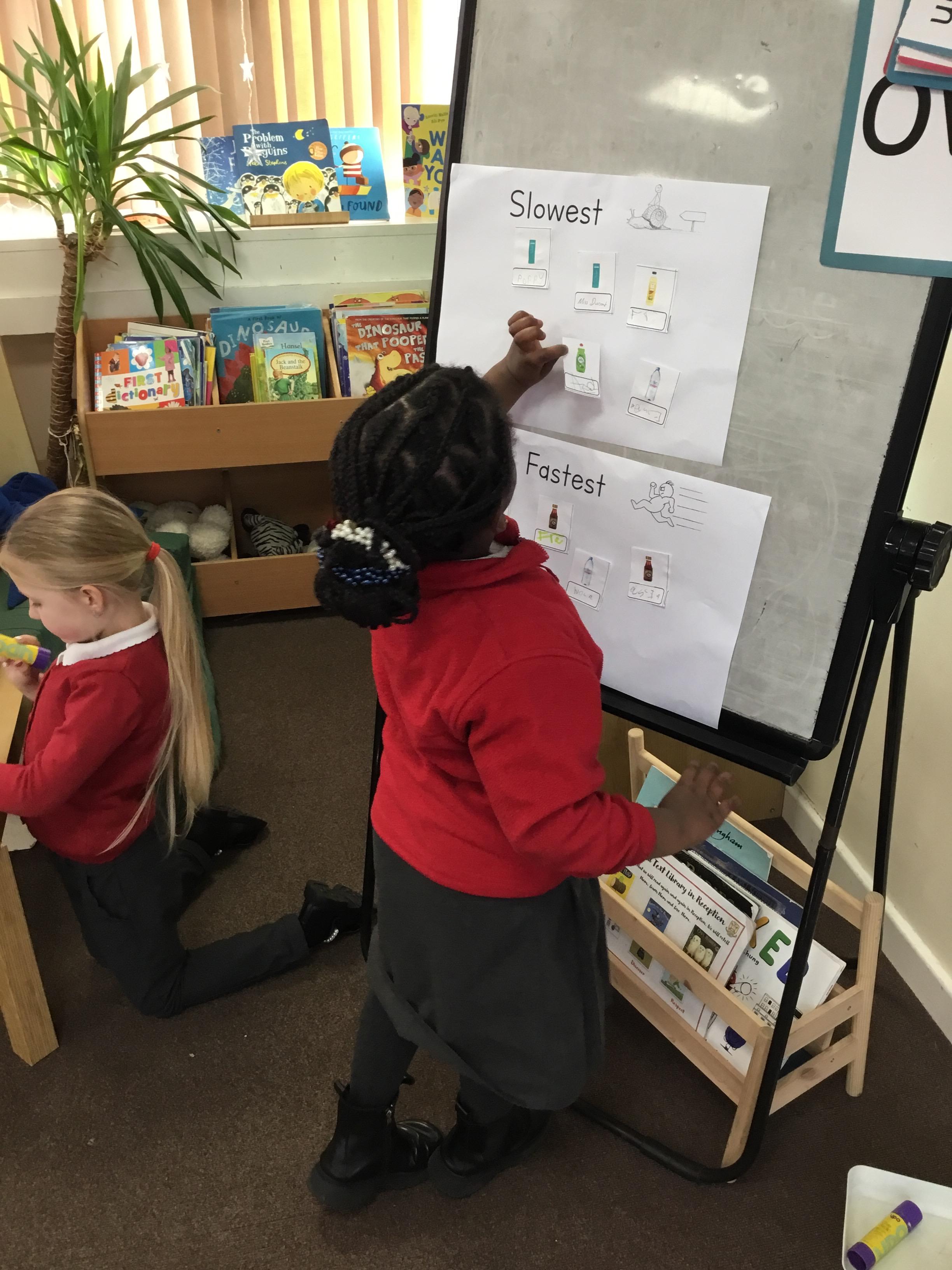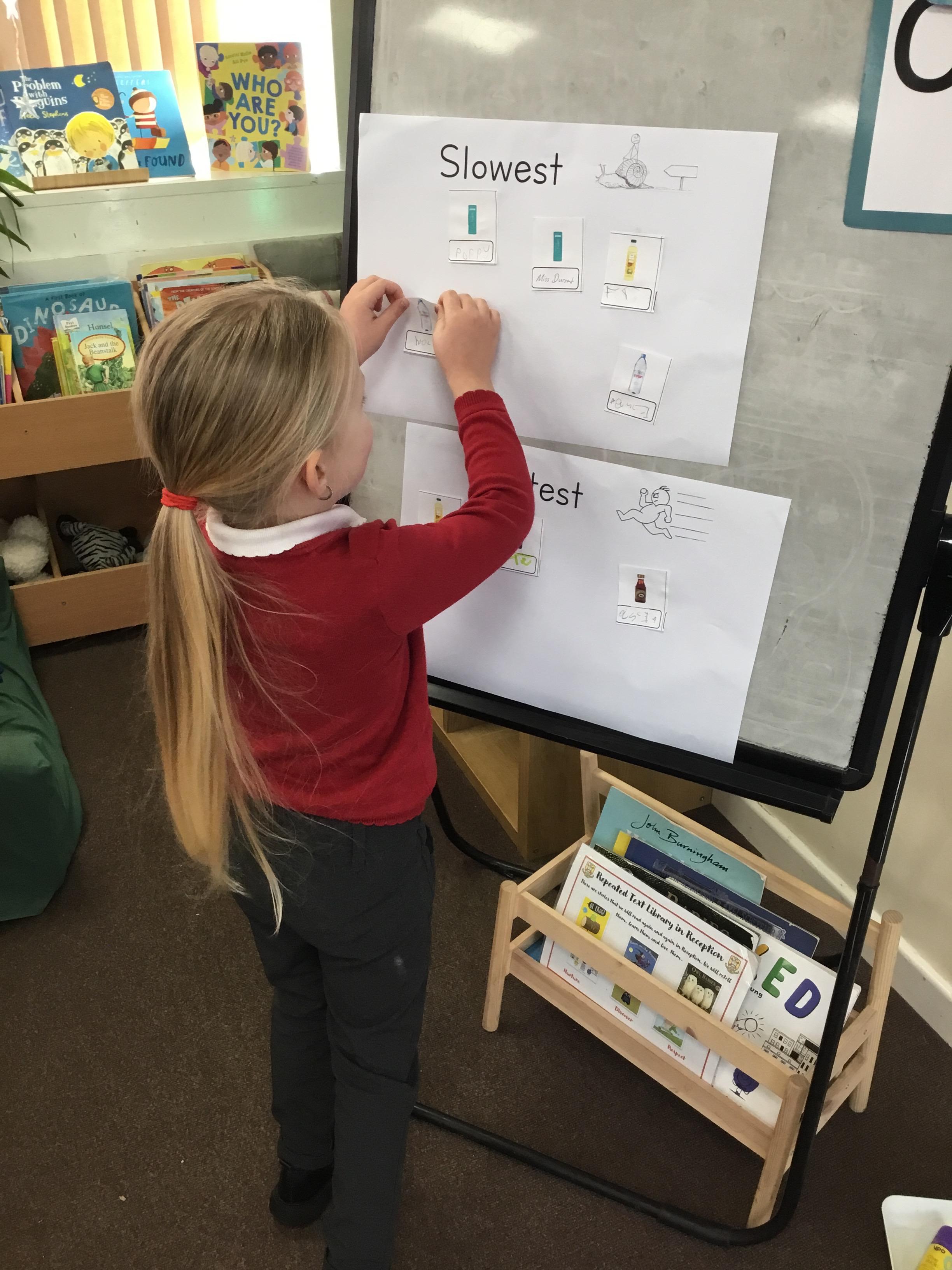 We continued our science day into the afternoon where we did our slippery slope experiment to see which liquid would be best for our penguins to slide down. We discussed our predictions first and then tested out each liquid with some surprising findings.