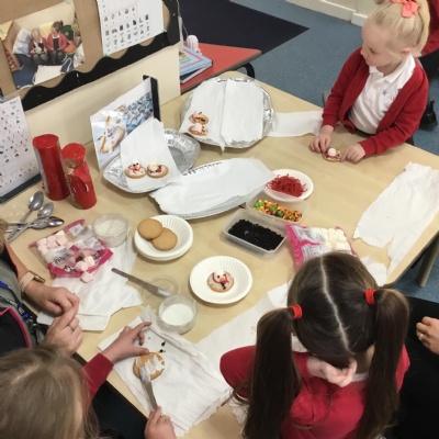 We have had great fun celebrating Christmas. This has included our nativity, carol concert, party, making decorations with our year 6 buddies and lots of in class activities.
