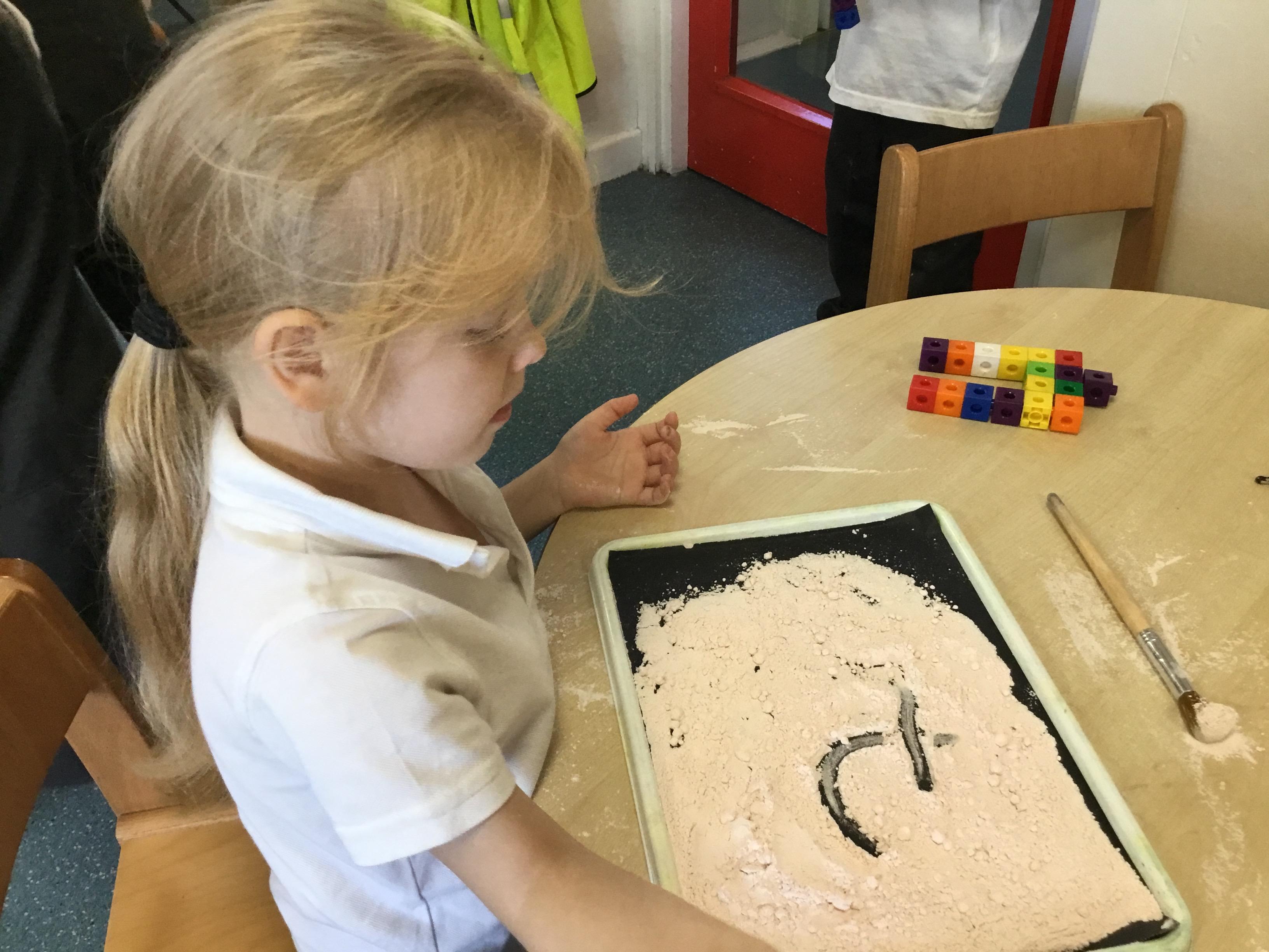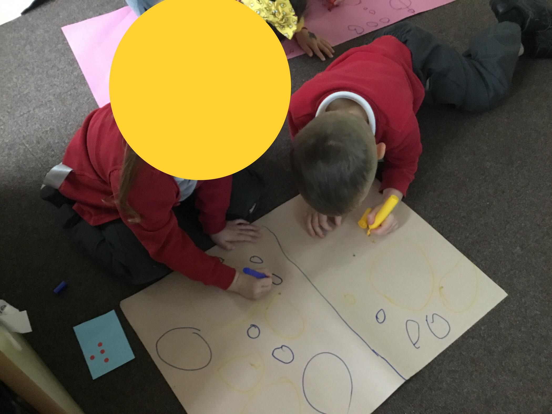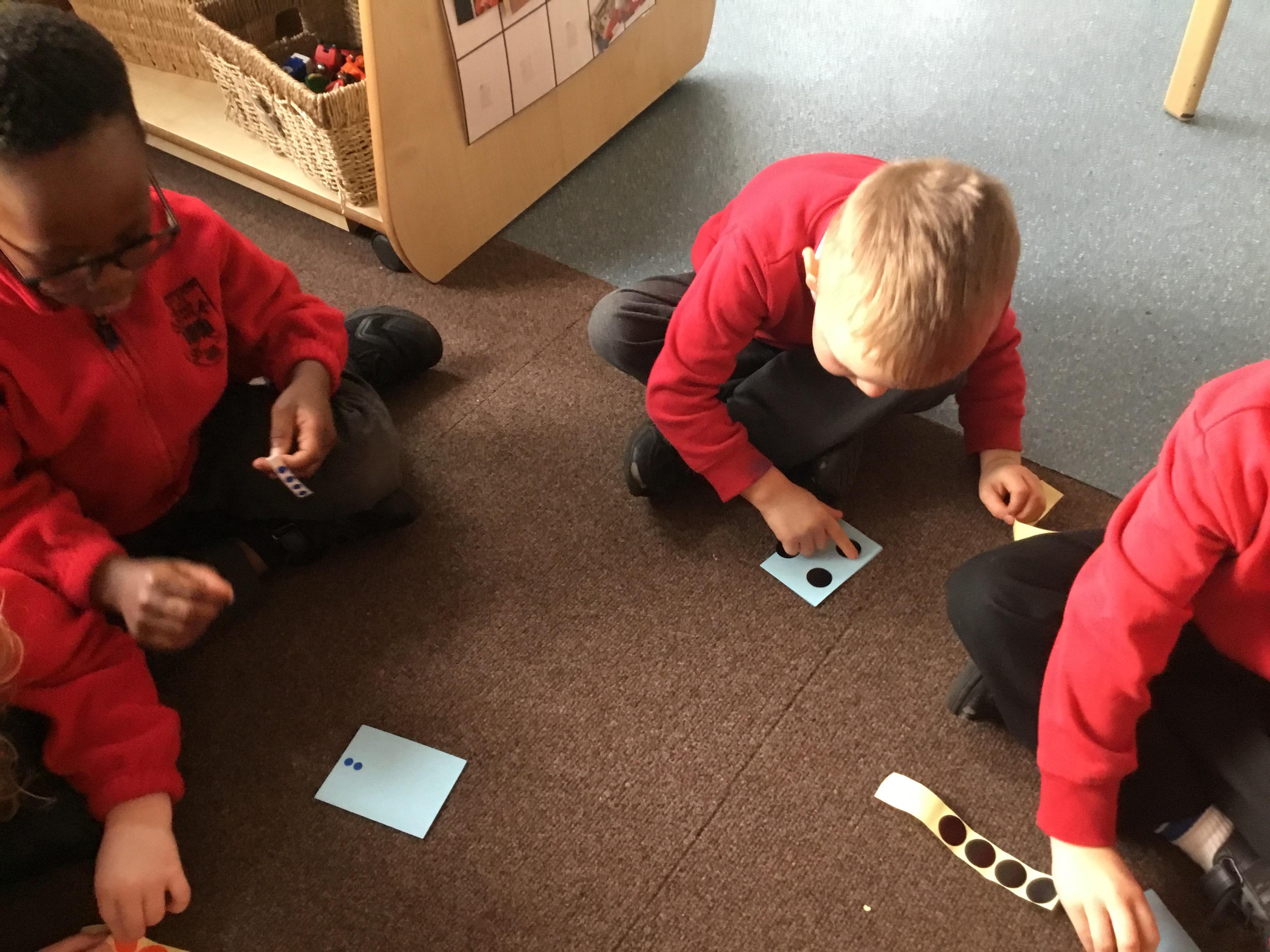In maths we have been looking at numbers 1-5. We have been subitising (using our fast eyes) and that we can make a number in different ways e.g.