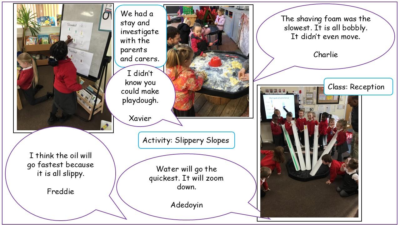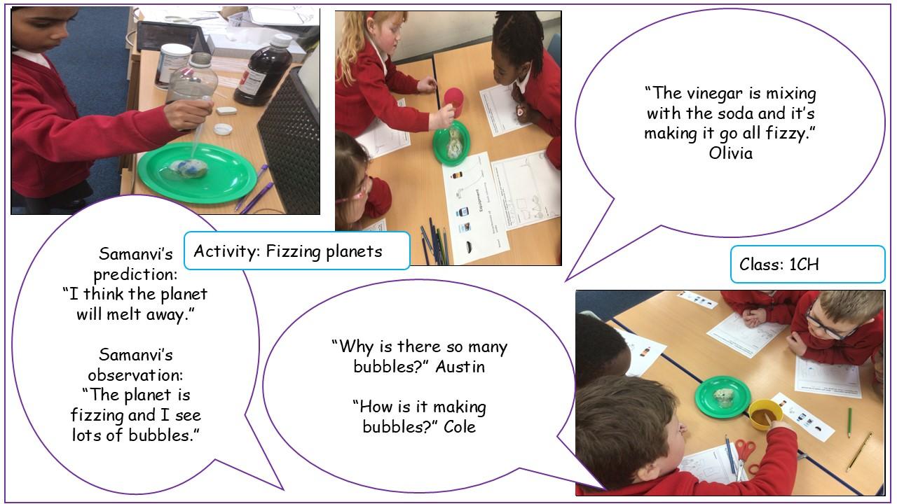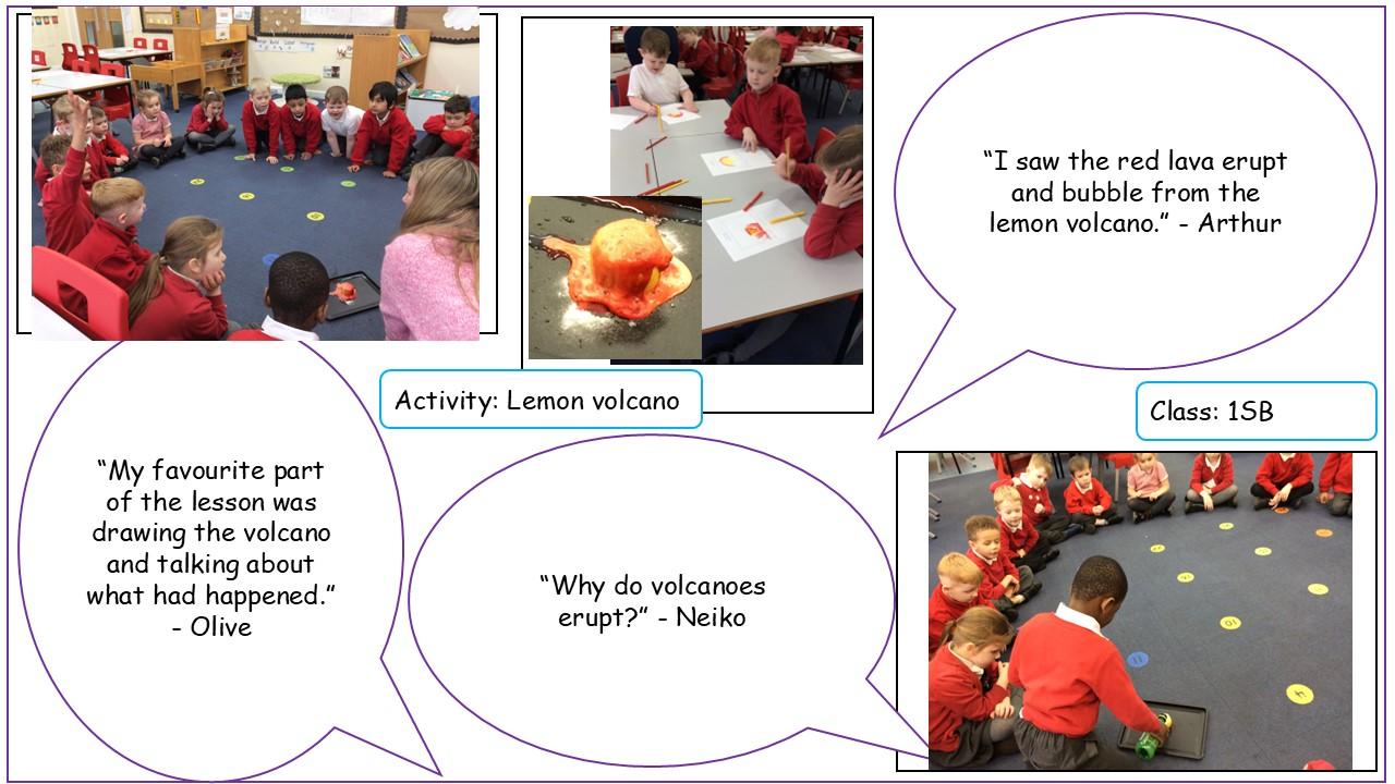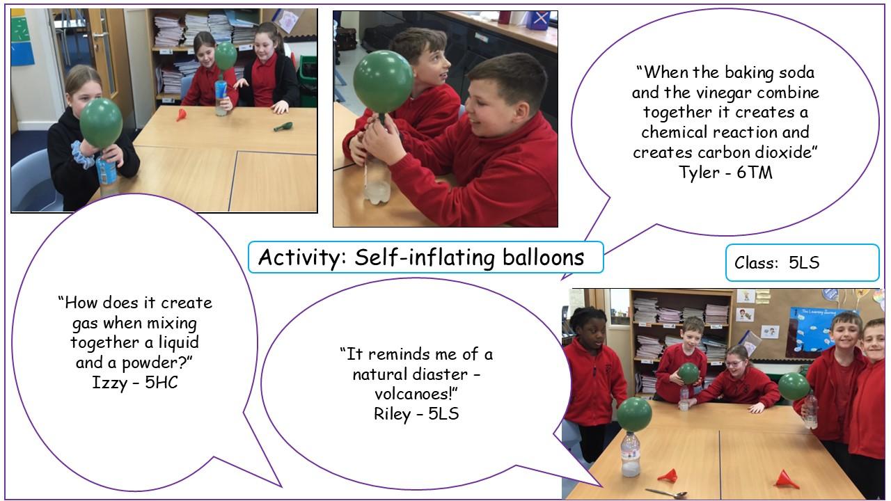 The children had a great day during 'Science Day' at the end of January. The children moved around school in class groups and got to take part in some exciting and engaging investigations such as soap bubble printing, self inflating balloons, lemon volcanoes and making rain clouds.