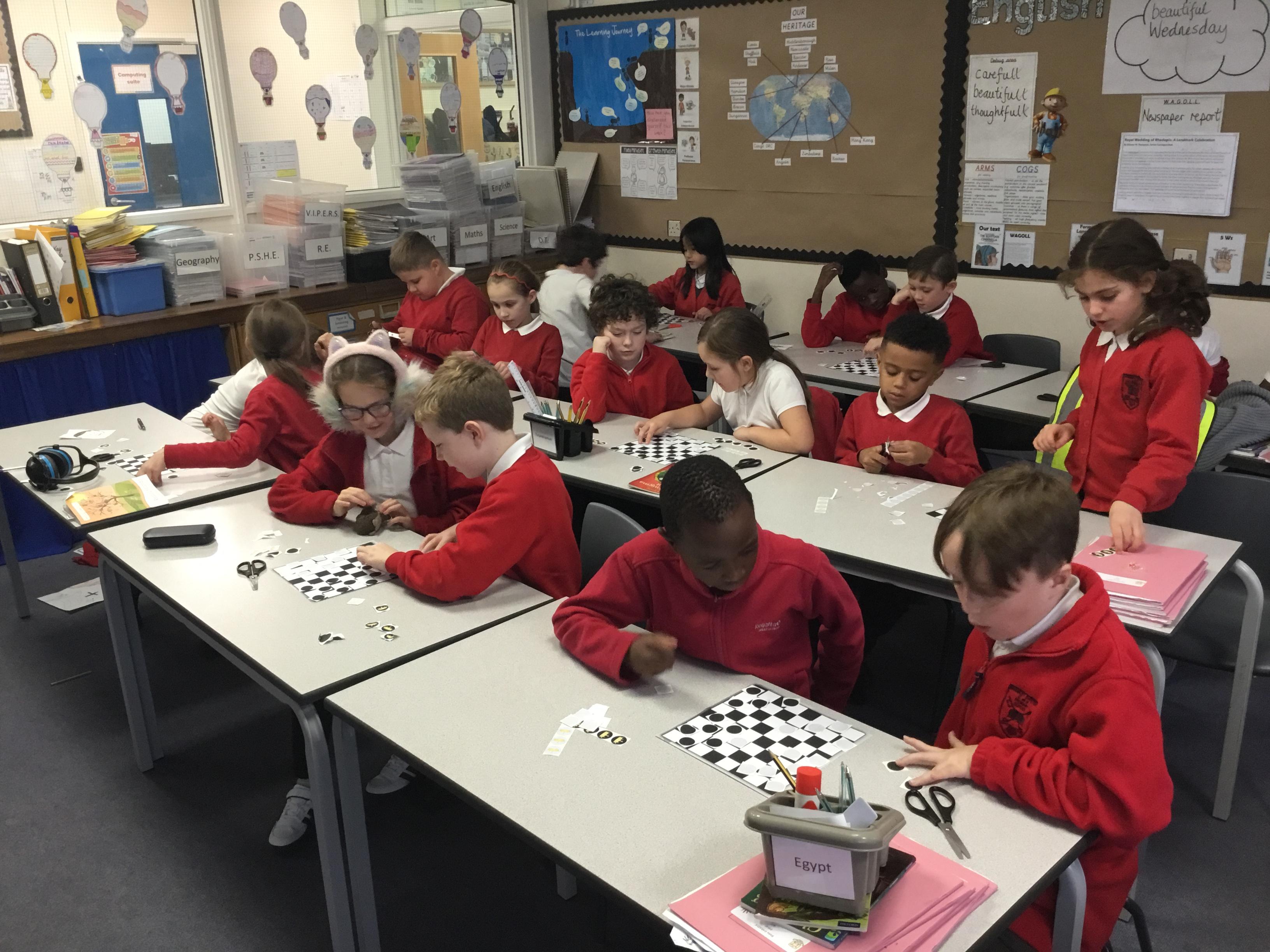 On our first day of the new term, we learnt about the history of board games and then learnt how to play draughts.