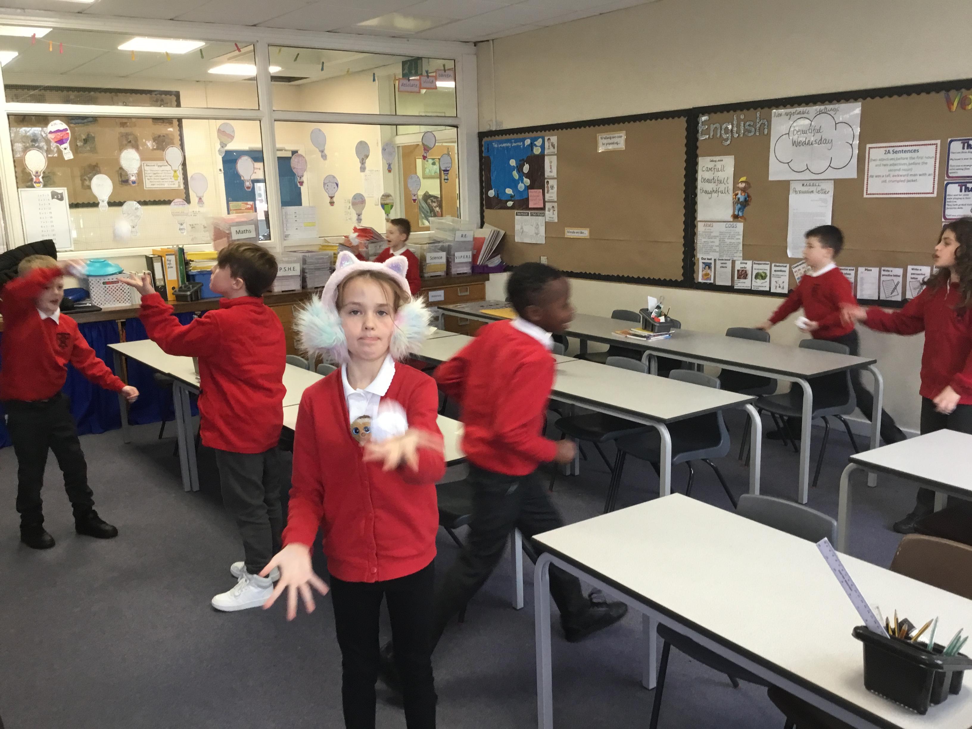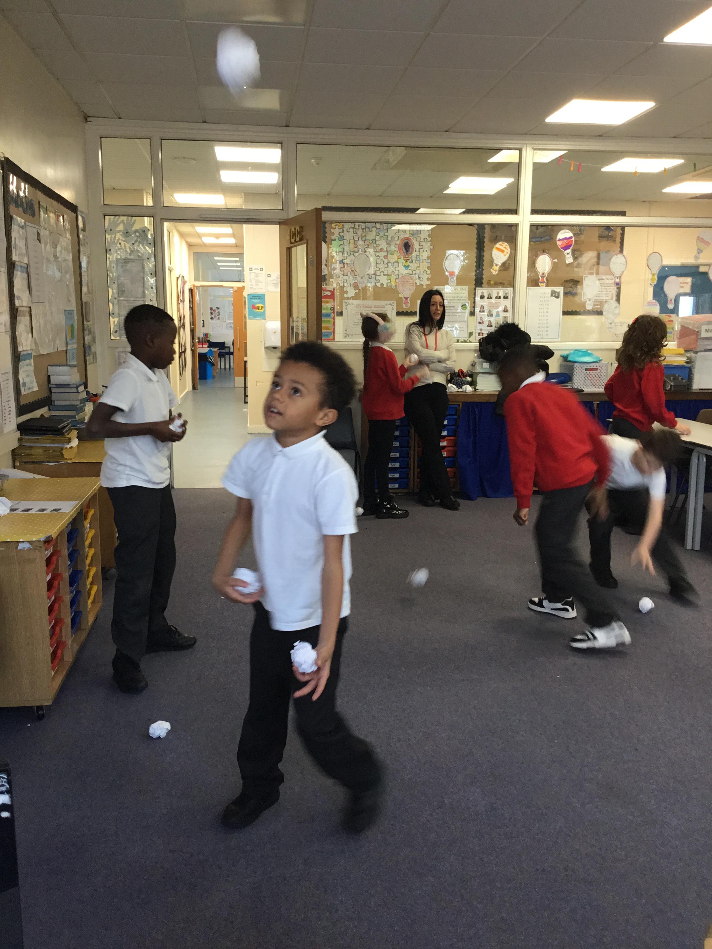On our first day of the new term, we learnt how to juggle, first with 1 ball, then with 2 balls and finally with 3 balls. Lots of practise is needed!