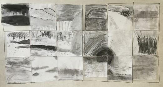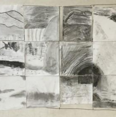The children were each given a small part of the picture on the right to replicate in charcoal. The drawing paper they were given was 10x the size of their small part. The resulting work was put together and shows really well the different strategies and styles used by the children.